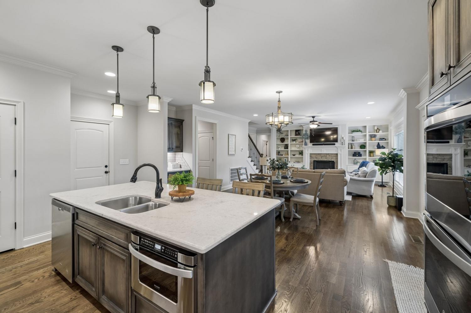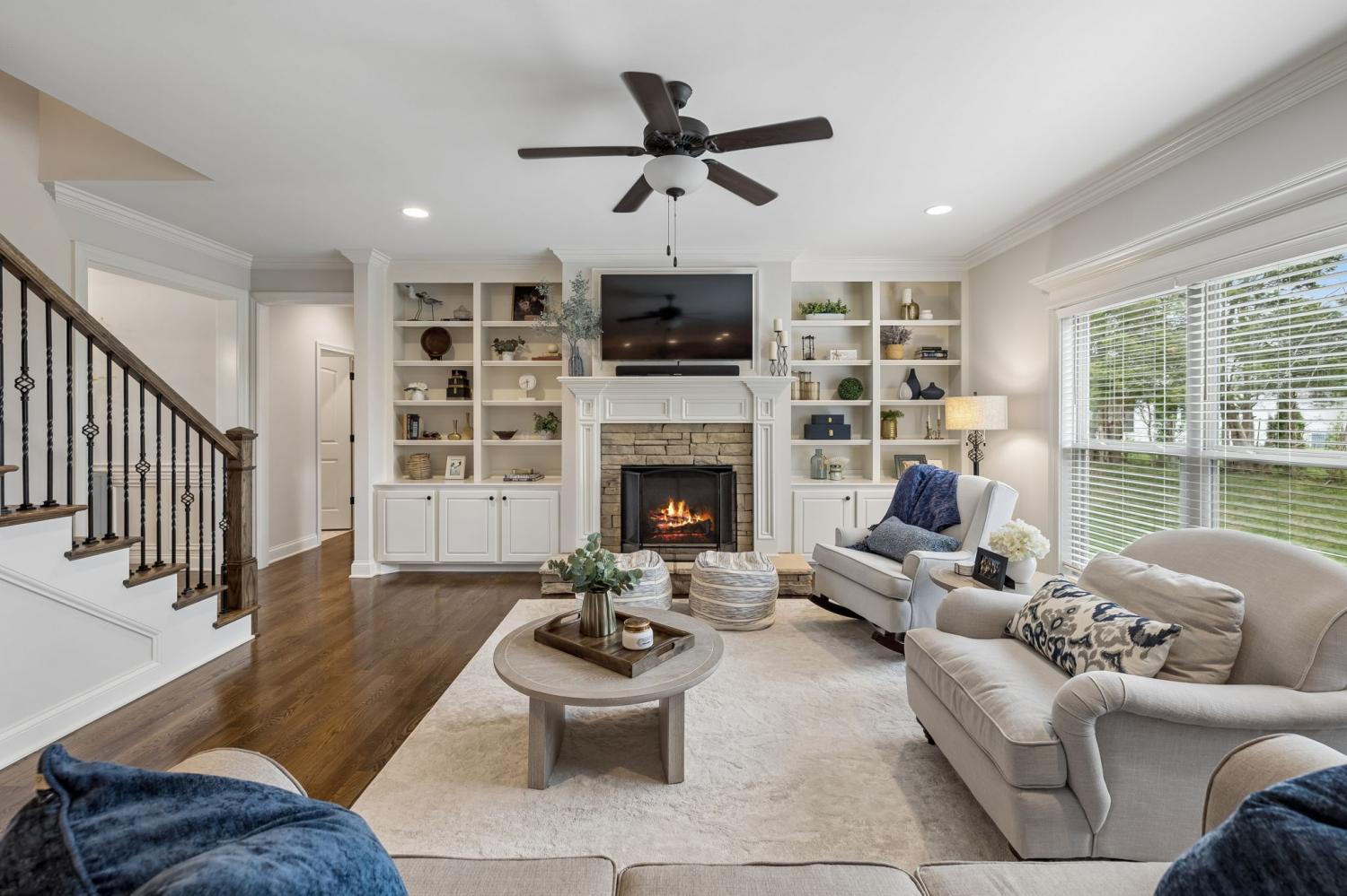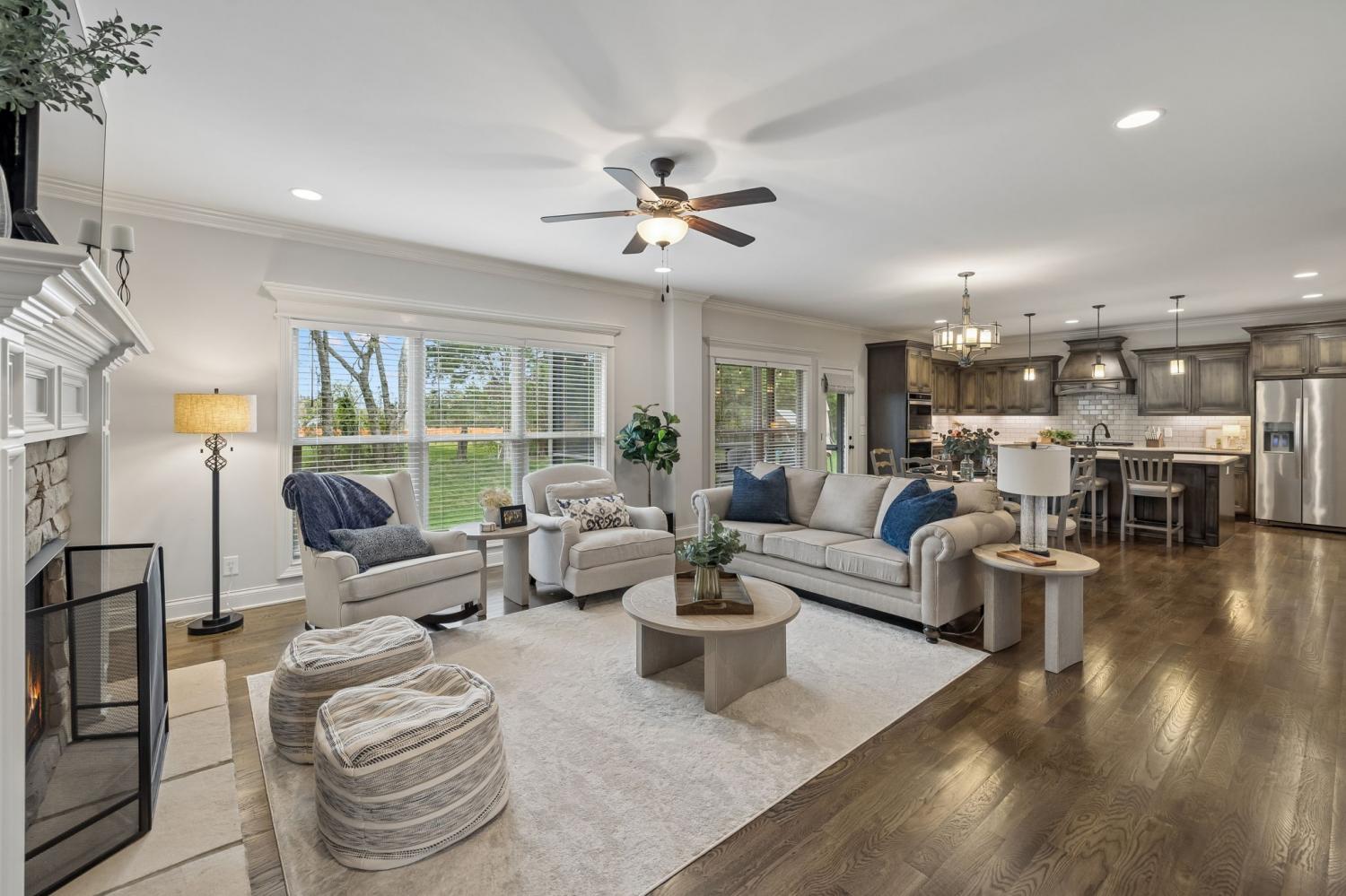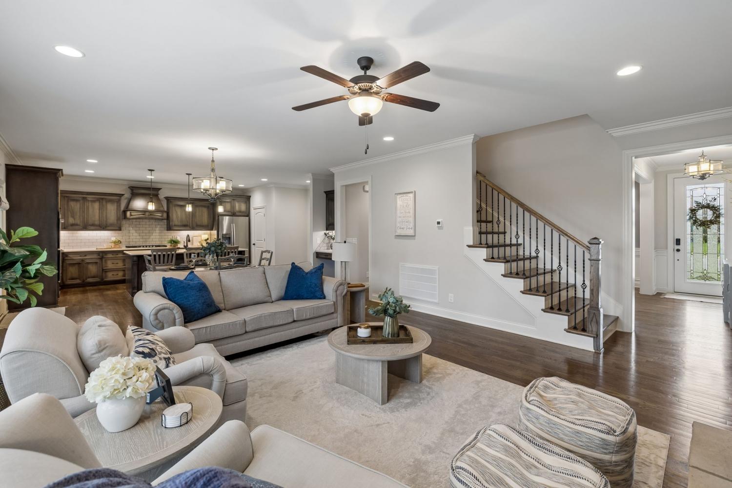 Welcome to an exceptional opportunity in the highly sought-after Farmington Woods community—where thoughtful design meets elevated finishes in this beautifully crafted 5-bedroom, 3.5-bath home offering 3,521 sq ft of refined living space. From the moment you enter, you’re greeted by rich wood flooring, intricate trim details, and a light-filled, open layout that blends elegance with everyday comfort. The heart of the home is a luxury kitchen designed to impress—featuring upscale finishes, abundant cabinetry, and a seamless flow into the main living area, perfect for both entertaining and daily living. The family room offers wide open comfortable space with warm gas fireplace and bookcases on either side to hold cherished collectibles of your home library. The main-level primary suite offers a private retreat with a spa-inspired bath, complete with a soaking tub, walk-in shower, and an expansive walk-in closet designed for both style and function. A formal dining room or dedicated home office provides flexibility to fit your lifestyle—whether hosting gatherings or working from home. Upstairs, you’ll find four oversized bedrooms, two full baths, and a spacious bonus room, offering endless possibilities for a media room, playroom, or additional living space. Step outside to enjoy the screened-in porch, a lower patio for additional outdoor entertaing ideal for relaxing evenings and summertime backyard fun. A three-car garage adds convenience and storage and all of these amenities in a cul-de-sac location offering low car traffic. Located in one of Lebanon’s most desirable neighborhoods, this home offers the perfect blend of luxury, space, and community living, just minutes from shopping, dining, and easy access to Nashville.