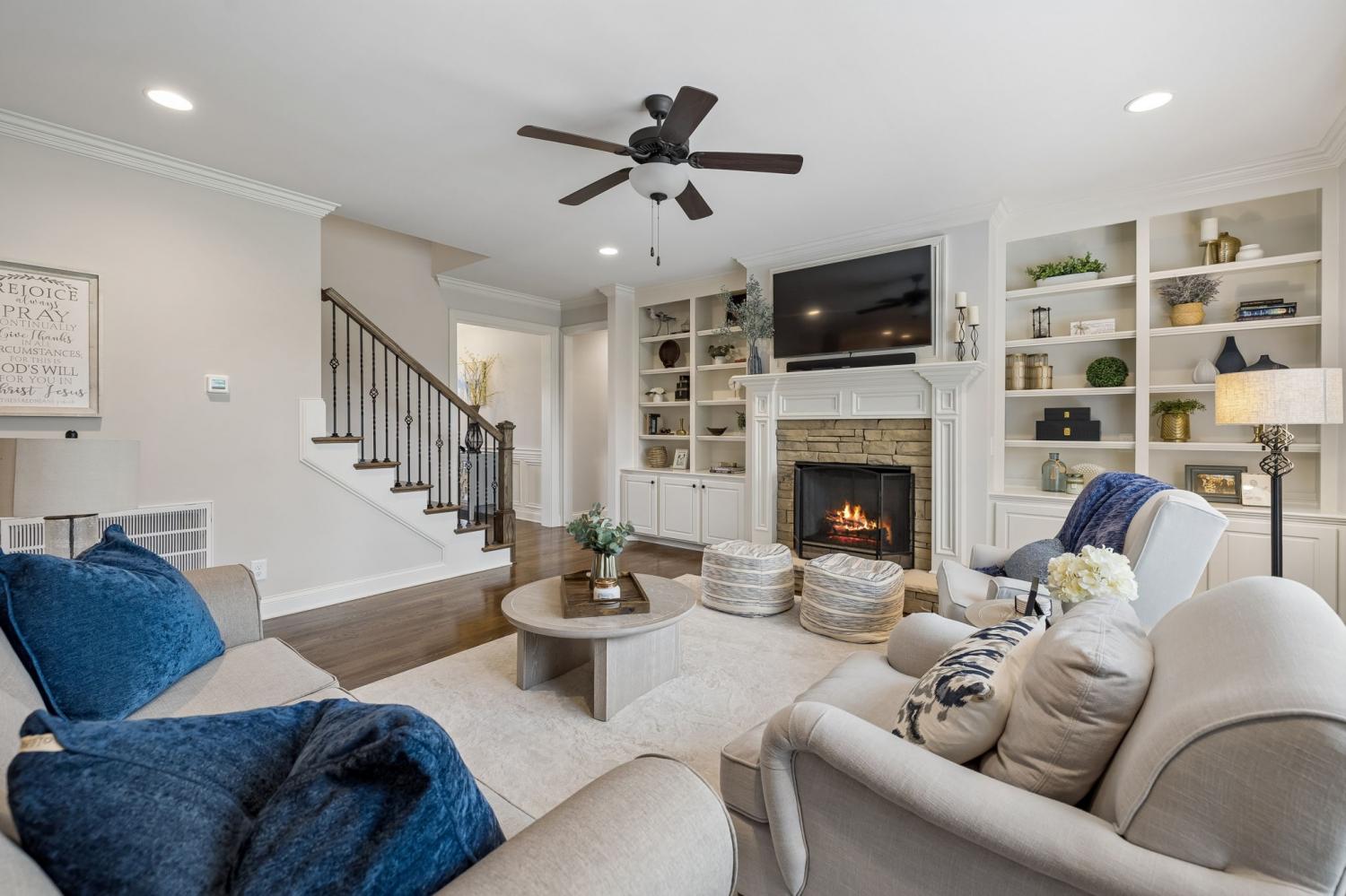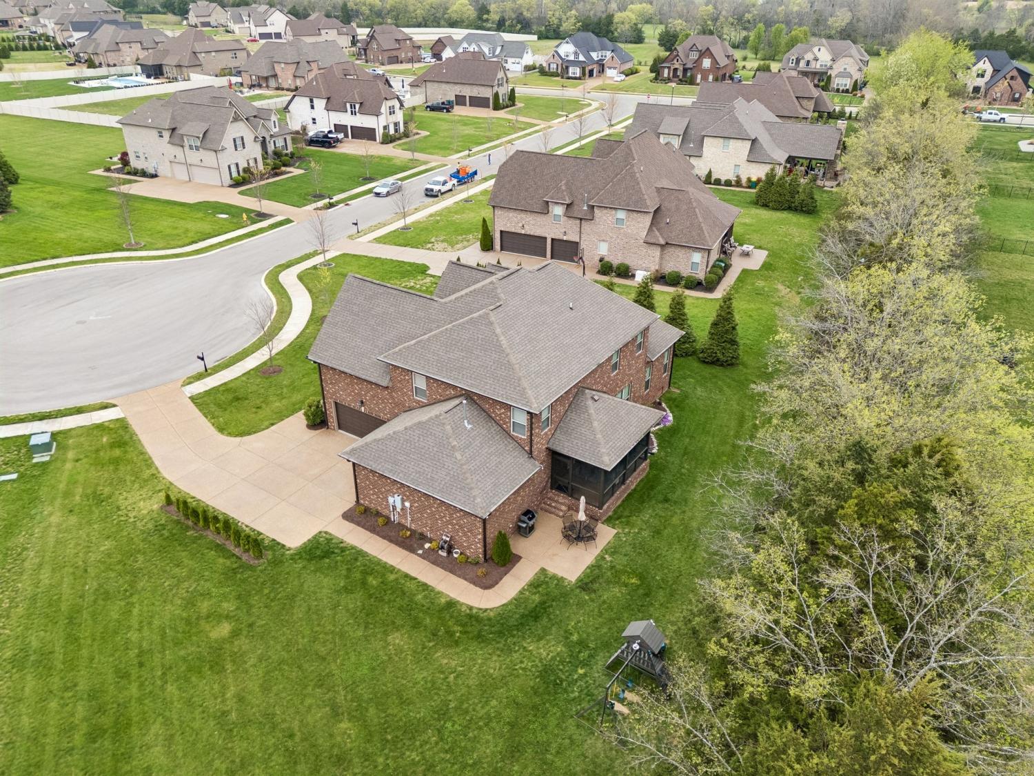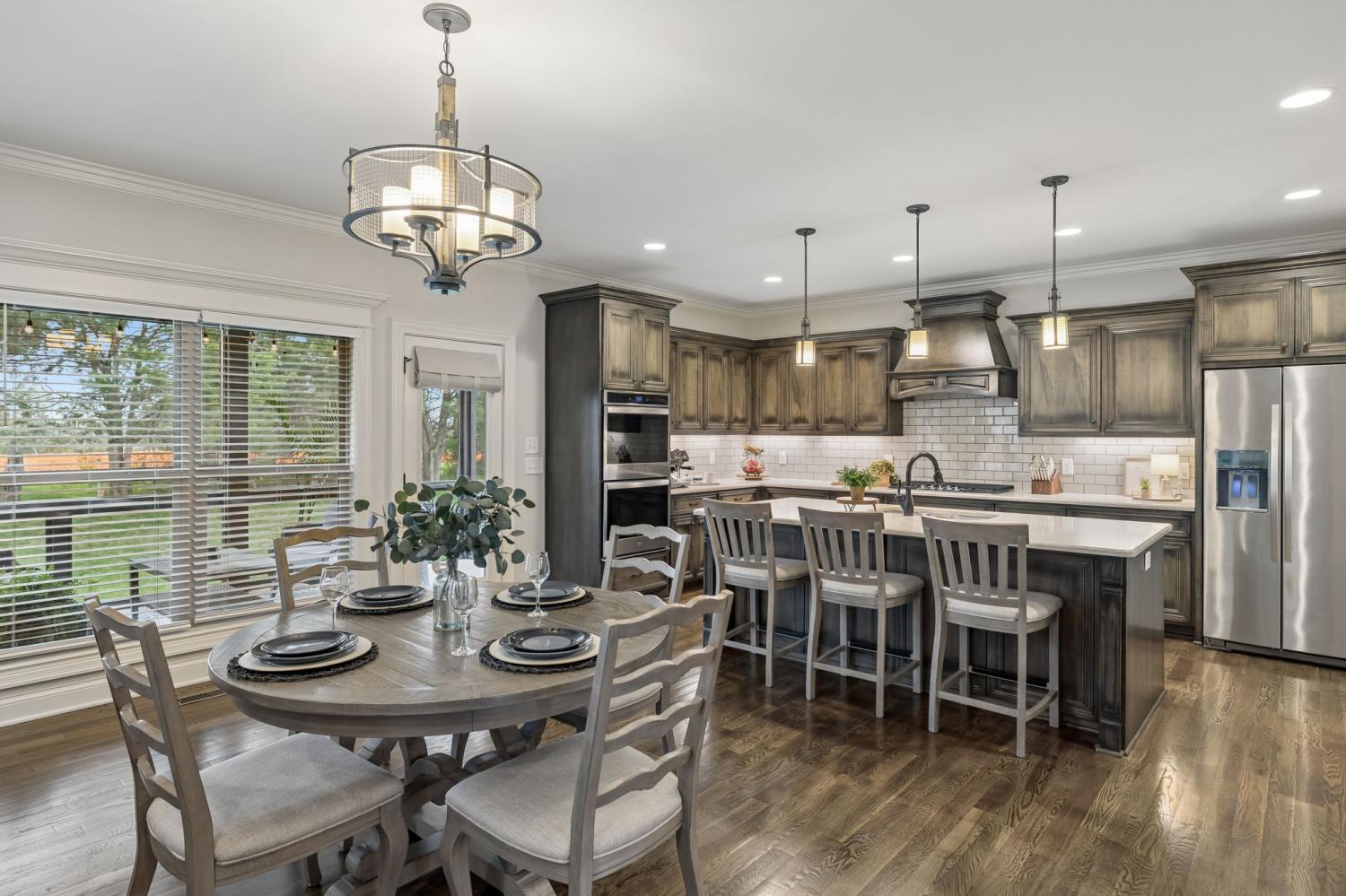 Welcome to an exceptional opportunity in the highly sought-after Farmington Woods community—where thoughtful design meets elevated finishes in this beautifully crafted 5-bedroom, 3.5-bath home offering 3,521 sq ft of refined living space. From the moment you enter, you’re greeted by rich wood flooring, intricate trim details, and a light-filled, open layout that blends elegance with everyday comfort. The heart of the home is a luxury kitchen designed to impress—featuring upscale finishes, abundant cabinetry, and a seamless flow into the main living area, perfect for both entertaining and daily living. The family room offers wide open comfortable space with warm gas fireplace and bookcases on either side to hold cherished collectibles of your home library. The main-level primary suite offers a private retreat with a spa-inspired bath, complete with a soaking tub, walk-in shower, and an expansive walk-in closet designed for both style and function. A formal dining room or dedicated home office provides flexibility to fit your lifestyle—whether hosting gatherings or working from home. Upstairs, you’ll find four oversized bedrooms, two full baths, and a spacious bonus room, offering endless possibilities for a media room, playroom, or additional living space. Step outside to enjoy the screened-in porch, a lower patio for additional outdoor entertaing ideal for relaxing evenings and summertime backyard fun. A three-car garage adds convenience and storage and all of these amenities in a cul-de-sac location offering low car traffic. Located in one of Lebanon’s most desirable neighborhoods, this home offers the perfect blend of luxury, space, and community living, just minutes from shopping, dining, and easy access to Nashville.