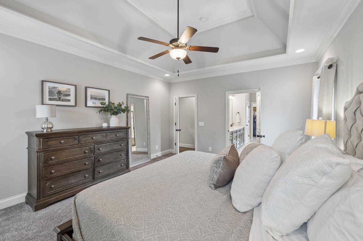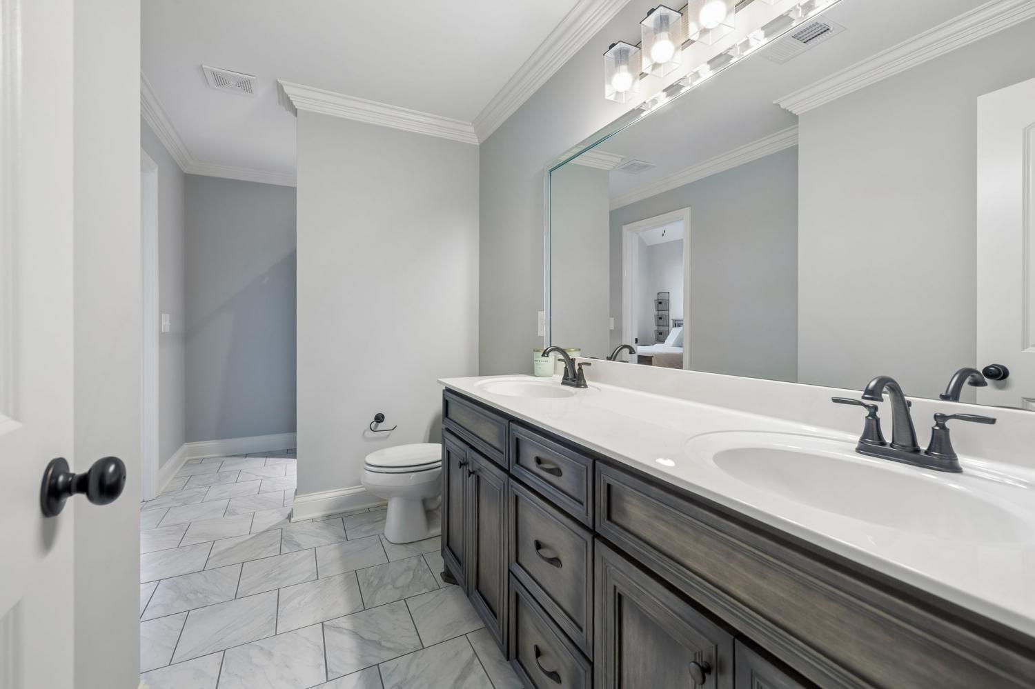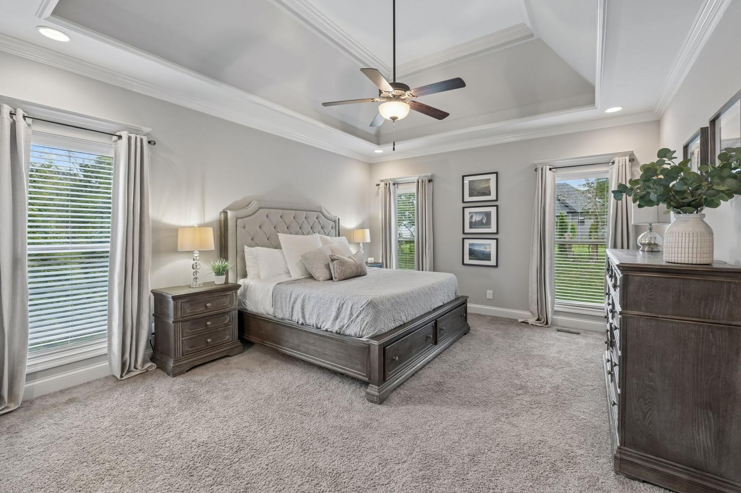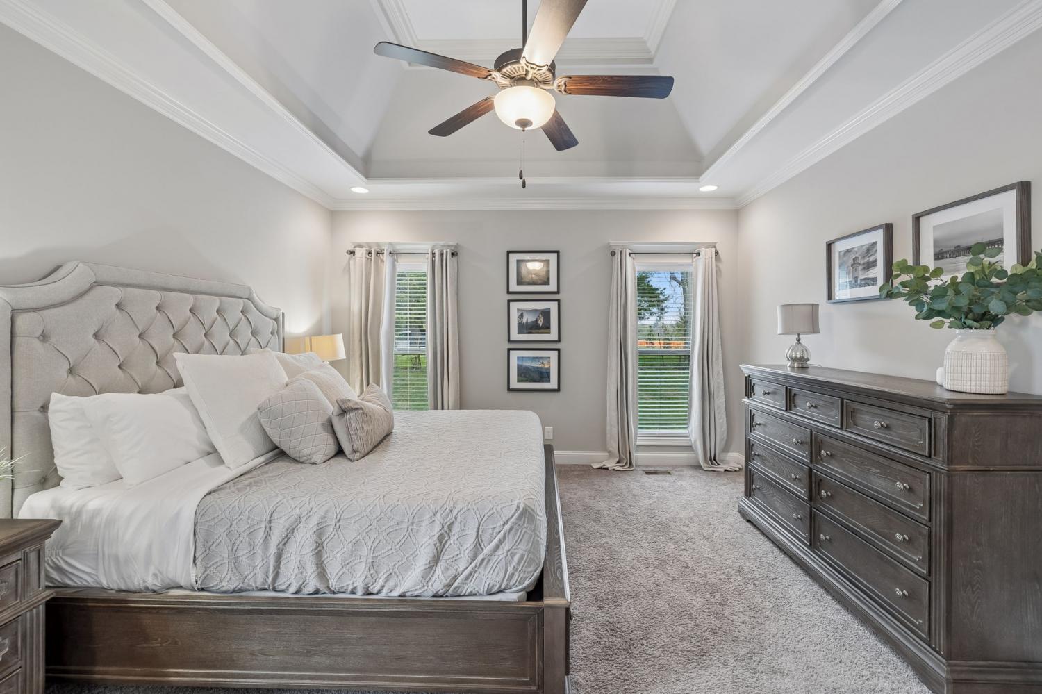 Welcome to an exceptional opportunity in the highly sought-after Farmington Woods community—where thoughtful design meets elevated finishes in this beautifully crafted 5-bedroom, 3.5-bath home offering 3,521 sq ft of refined living space. From the moment you enter, you’re greeted by rich wood flooring, intricate trim details, and a light-filled, open layout that blends elegance with everyday comfort. The heart of the home is a luxury kitchen designed to impress—featuring upscale finishes, abundant cabinetry, and a seamless flow into the main living area, perfect for both entertaining and daily living. The family room offers wide open comfortable space with warm gas fireplace and bookcases on either side to hold cherished collectibles of your home library. The main-level primary suite offers a private retreat with a spa-inspired bath, complete with a soaking tub, walk-in shower, and an expansive walk-in closet designed for both style and function. A formal dining room or dedicated home office provides flexibility to fit your lifestyle—whether hosting gatherings or working from home. Upstairs, you’ll find four oversized bedrooms, two full baths, and a spacious bonus room, offering endless possibilities for a media room, playroom, or additional living space. Step outside to enjoy the screened-in porch, a lower patio for additional outdoor entertaing ideal for relaxing evenings and summertime backyard fun. A three-car garage adds convenience and storage and all of these amenities in a cul-de-sac location offering low car traffic. Located in one of Lebanon’s most desirable neighborhoods, this home offers the perfect blend of luxury, space, and community living, just minutes from shopping, dining, and easy access to Nashville.