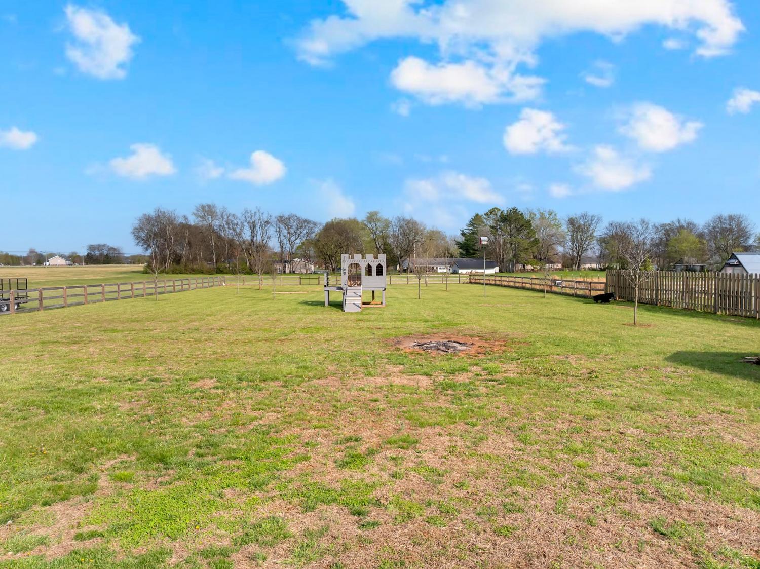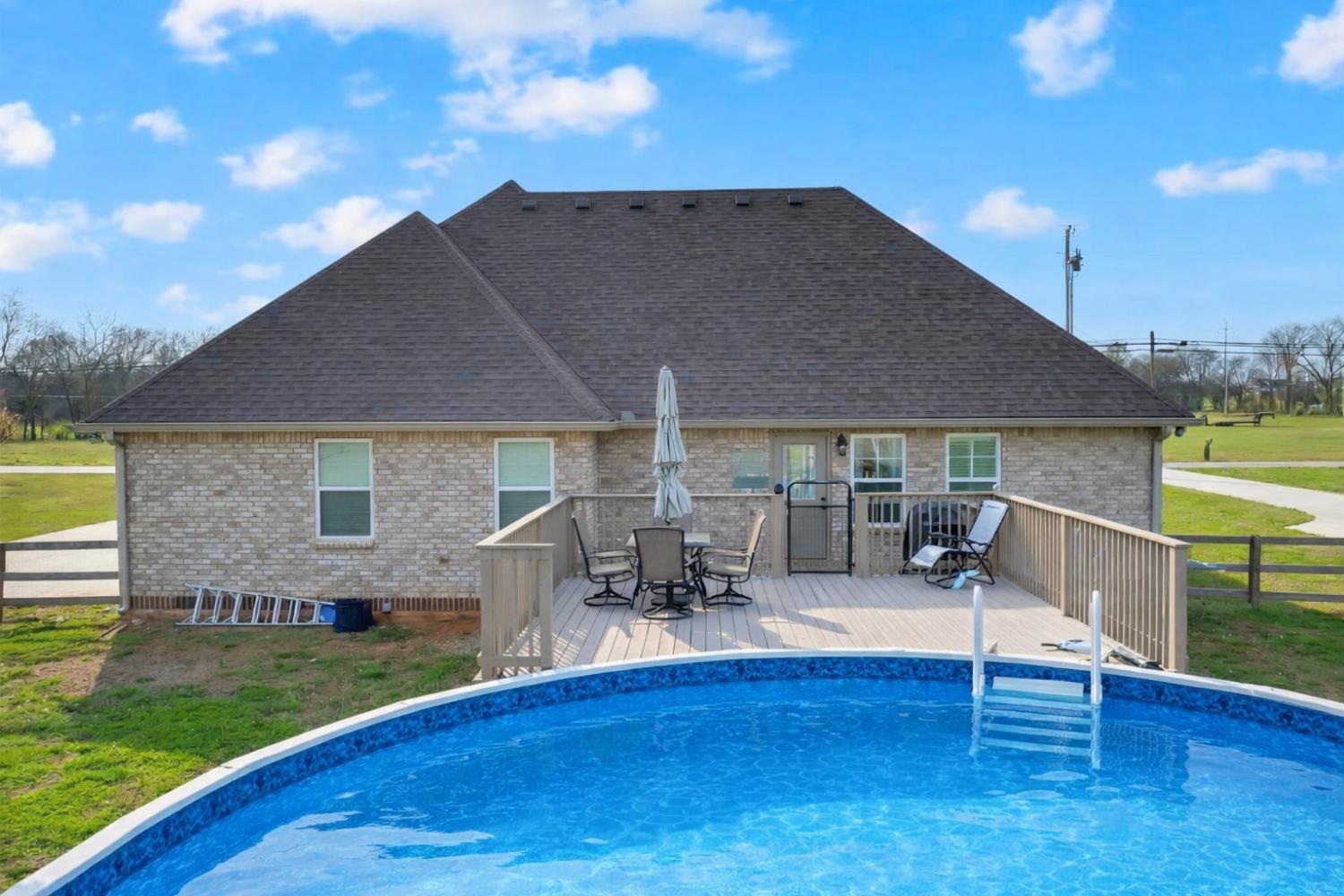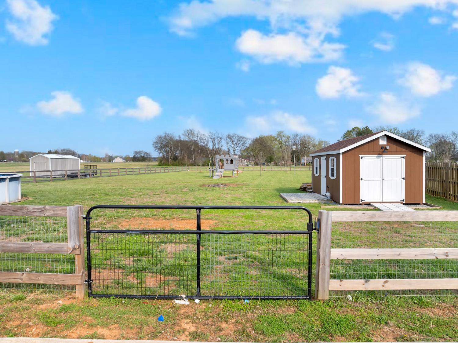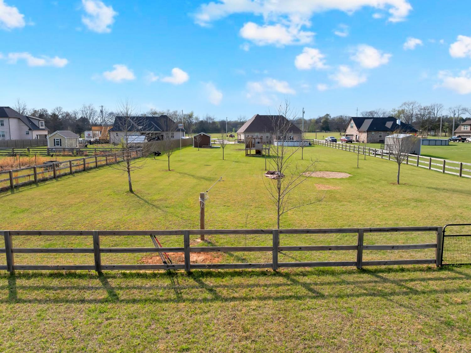 This home features 3 bedrooms and 2 bathrooms on the main floor. The upstairs bonus room is currently arranged as a 4th bedroom. There is a spacious den, and the kitchen and dining area are designed to accommodate a large family. Outdoors, you'll find a generously sized fenced yard with three plank wood and it is reinforced with woven wire that makes it perfect for your beloved pets and children. You will also find an above-ground pool with a gated deck, an Amish-built mini barn, and a play castle for kids.