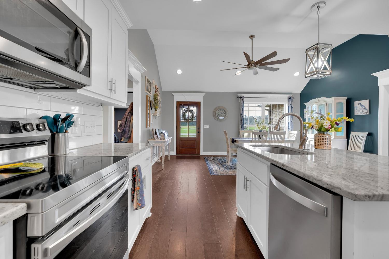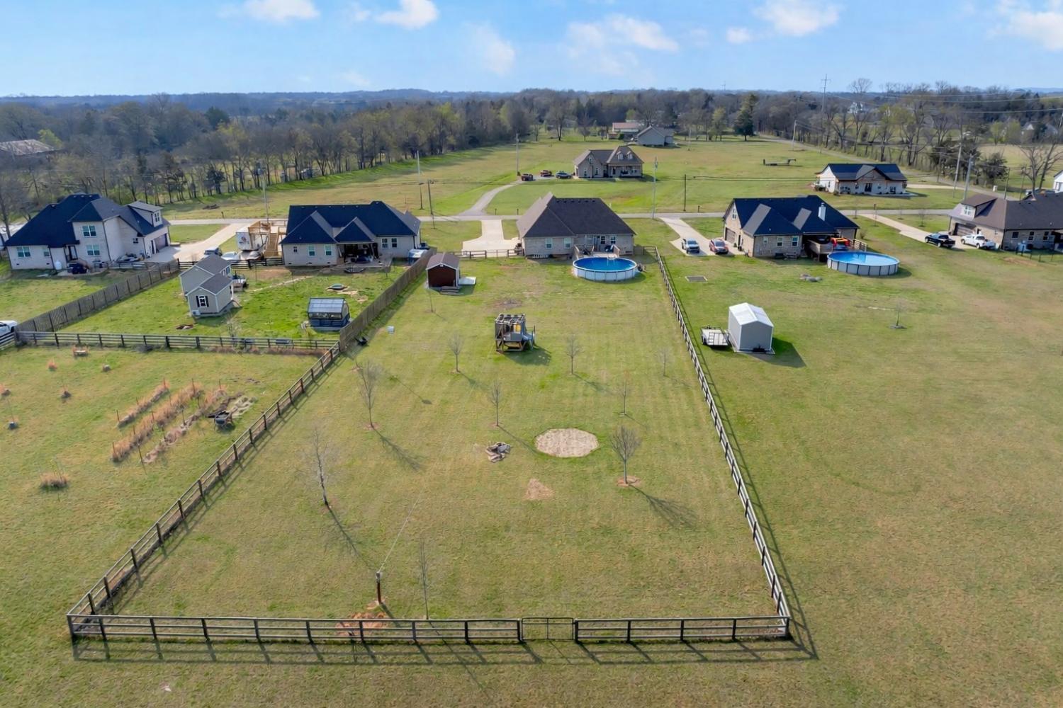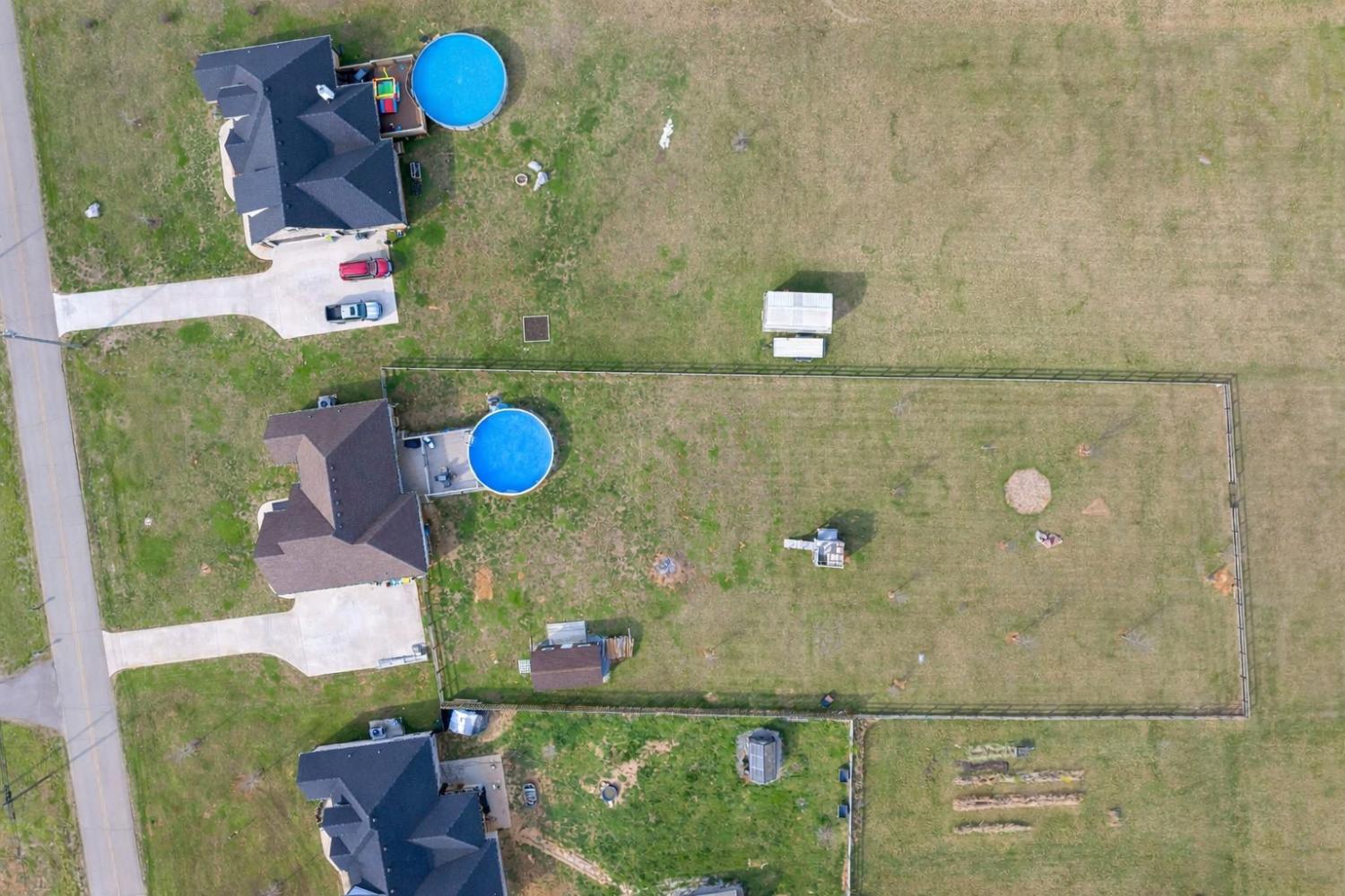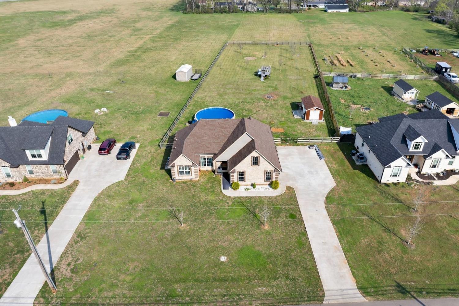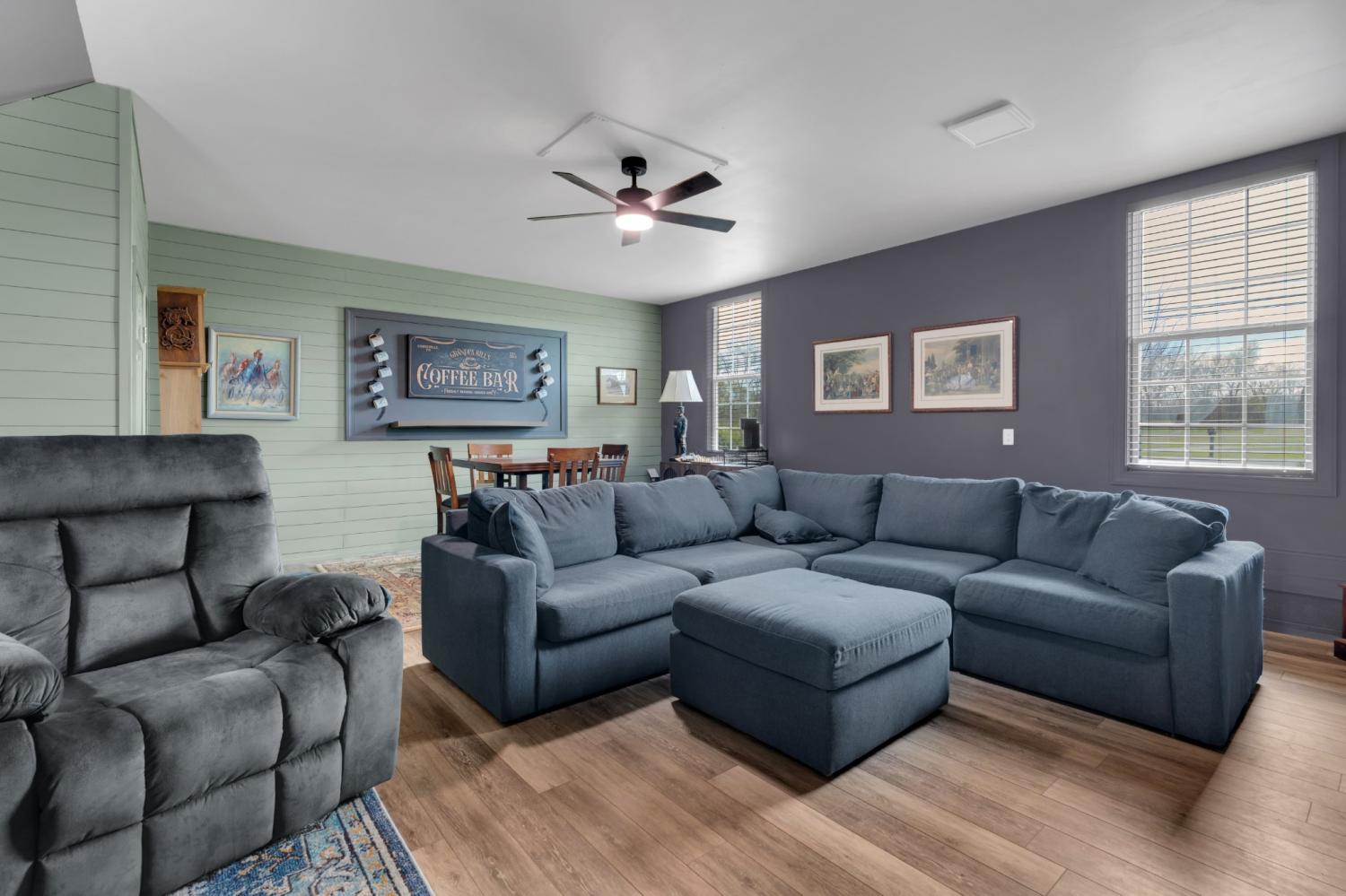 This home features 3 bedrooms and 2 bathrooms on the main floor. The upstairs bonus room is currently arranged as a 4th bedroom. There is a spacious den, and the kitchen and dining area are designed to accommodate a large family. Outdoors, you'll find a generously sized fenced yard with three plank wood and it is reinforced with woven wire that makes it perfect for your beloved pets and children. You will also find an above-ground pool with a gated deck, an Amish-built mini barn, and a play castle for kids.