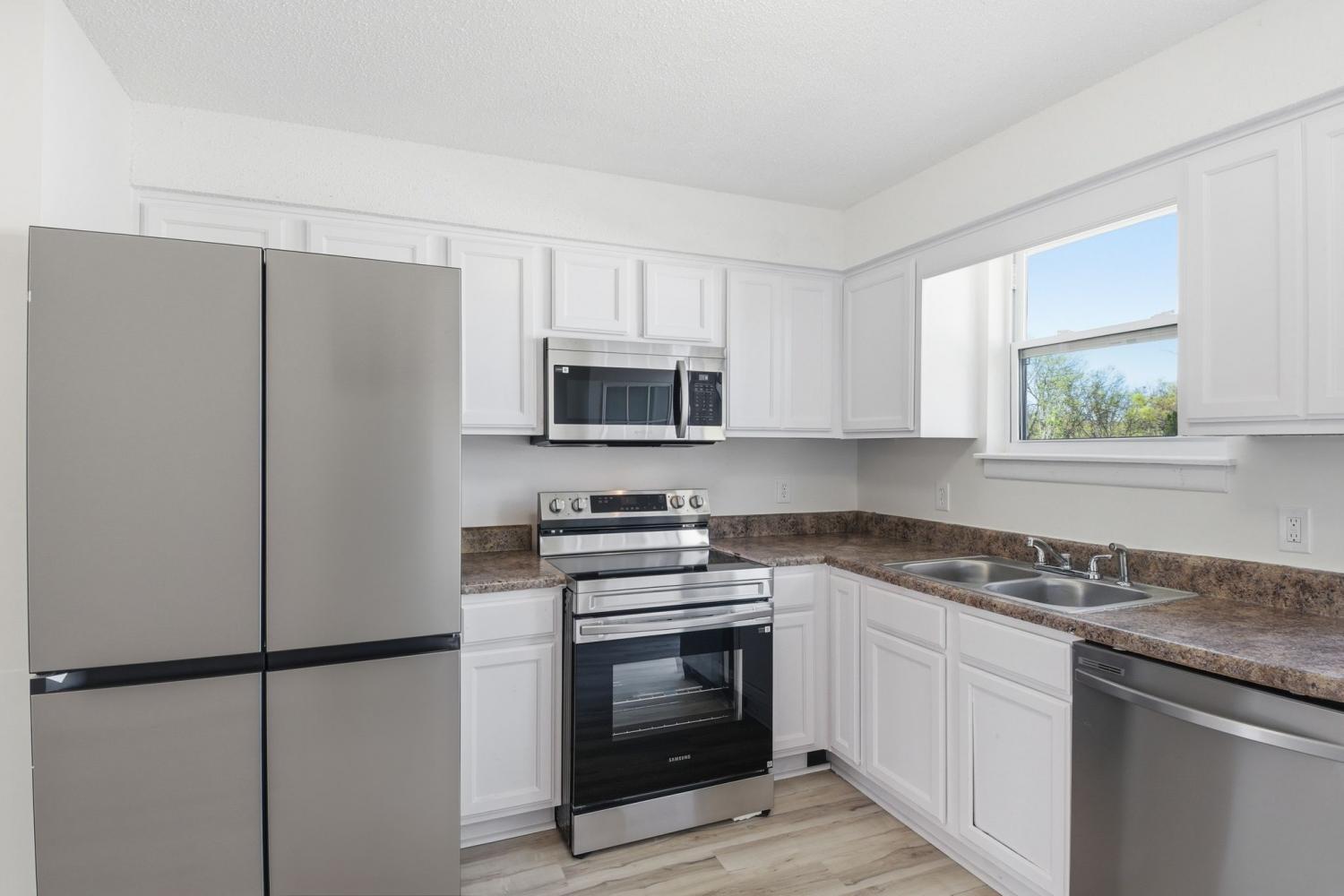 Charming and move-in ready, this beautifully updated 2-bedroom, 1-bath home offers a perfect blend of modern upgrades and spacious outdoor living. Step inside to find brand-new hardwood floors throughout, complemented by fresh interior paint that creates a bright and welcoming feel. The home features a functional layout with comfortable living spaces and two well-sized bedrooms. The kitchen is equipped with new appliances, making it both stylish and practical for everyday living.Enjoy the benefits of a recently replaced roof (just 1 year old), providing added peace of mind. Outside, the property truly shines with both a large front yard and an expansive backyard—perfect for entertaining, gardening, pets, or future possibilities. Whether you're a first-time homebuyer or looking to downsize, this home offers quality updates, great outdoor space, and move-in-ready convenience. Don’t miss this opportunity!