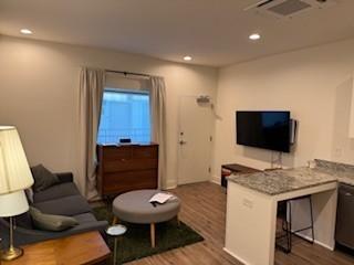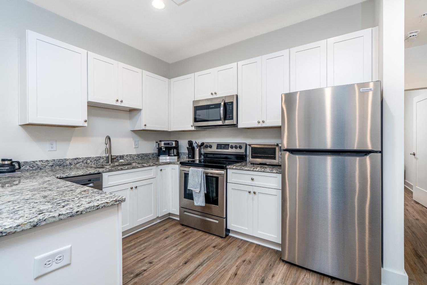 This attractive condo features one bedroom and one bathroom. It is located in the heart of Nashville and is perfect for a single person or couple looking for convenience in an up to date environment. The open concept consist of a spacious living room, full kitchen, and restful bedroom. The unit is on the top floor with amenities of a rooftop lounge area looking at the Nashville skyline and a grill area in the back.
