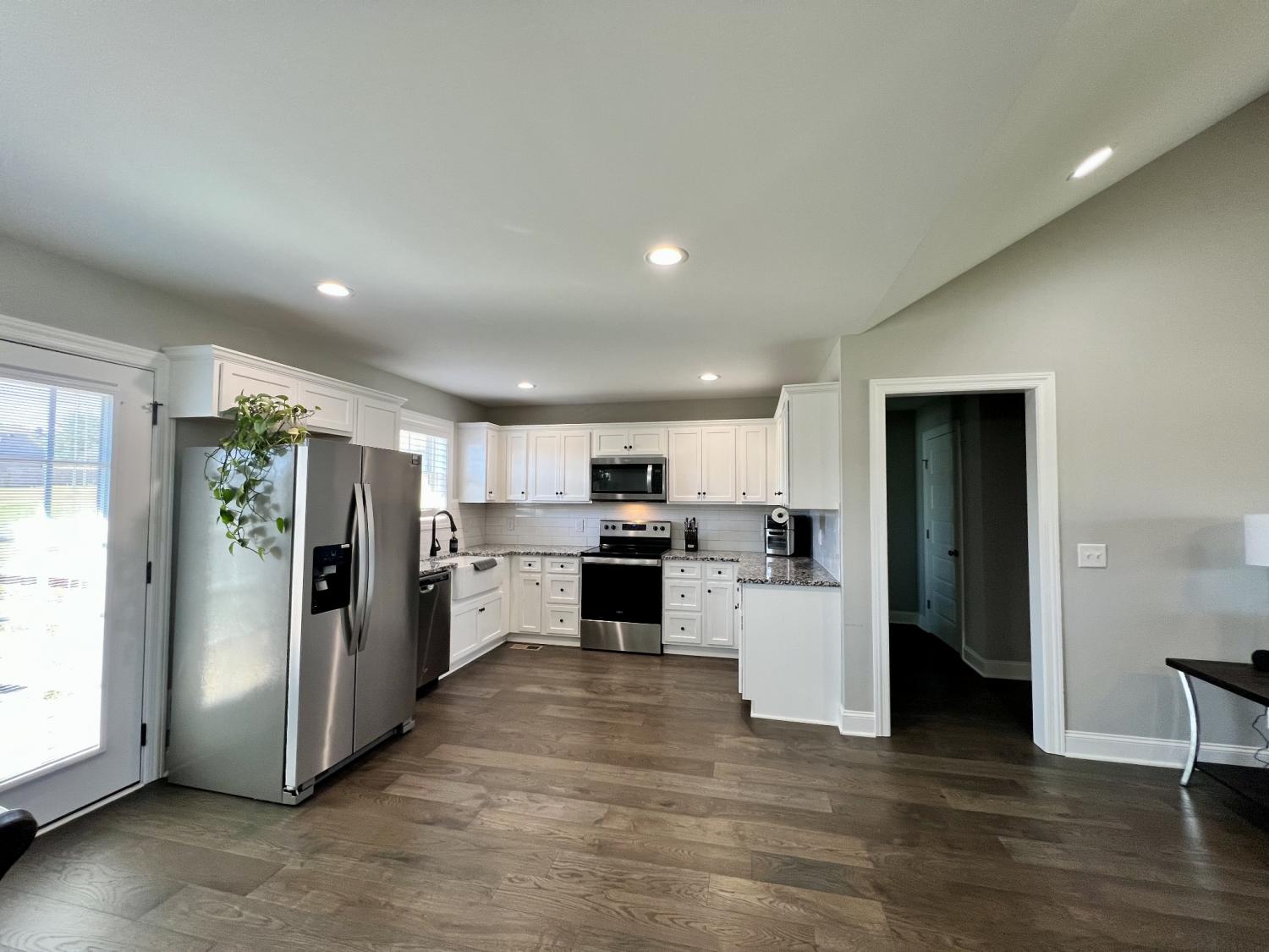 JUST LIKE NEW with one owner, built in 2022 offering 3 bedrooms, 2 full baths, and 1556 sq ft of thoughtfully designed living space. This home features an Open-Concept layout with a spacious living area, modern kitchen with an island, granite, stainless steel appliances, & zoned bedrooms. There is a comfortable dining space and den for entertaining. The primary suite includes a private bath and ample closet space. Enjoy a low-maintenance, move-in-ready home in a convenient Shelbyville location close to shopping, dining, and schools. The backyard is huge with a nice deck and by the owners. There is also a nice size 2 car garage that is spotless.