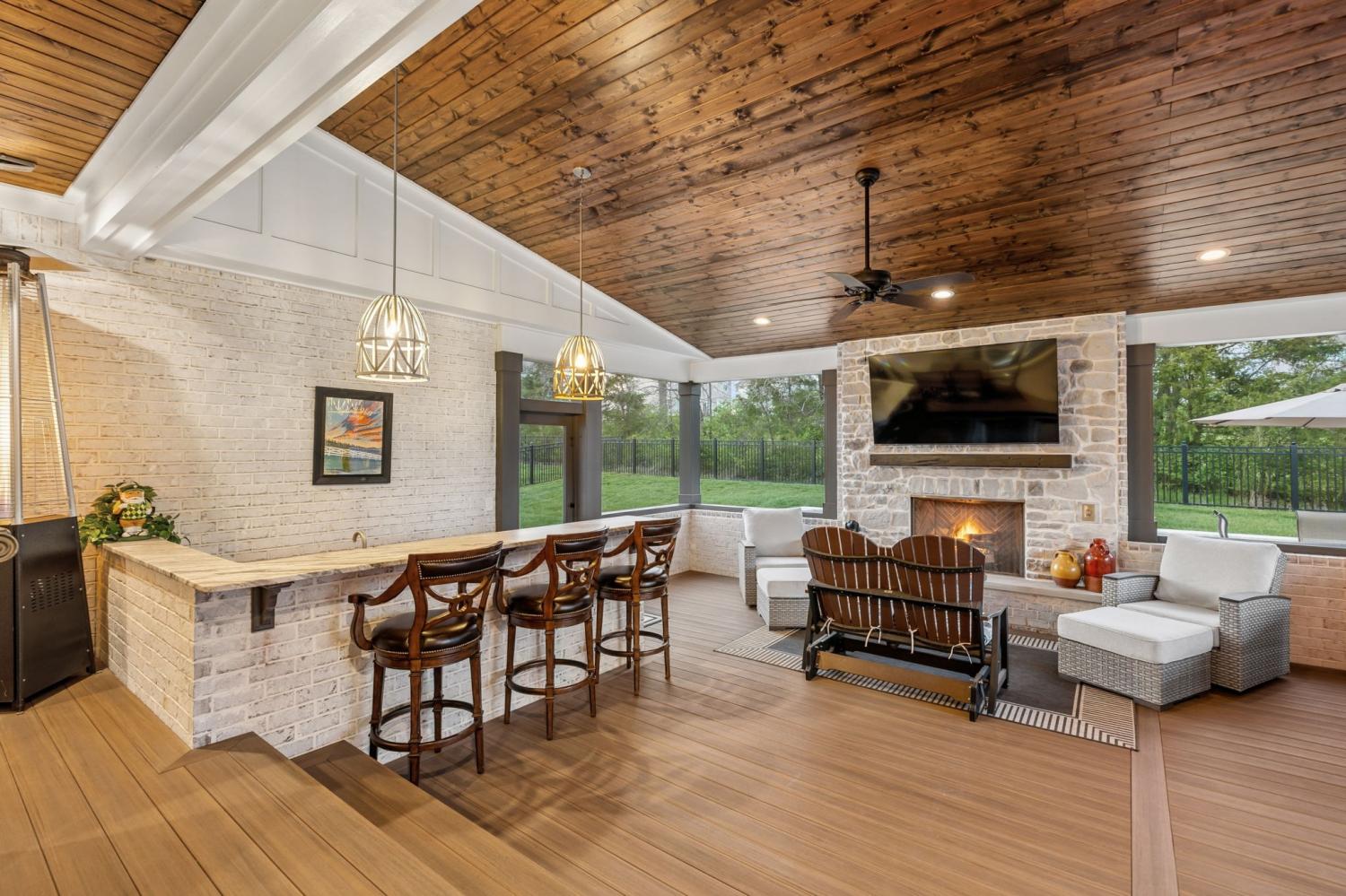 Built in 2023 and meticulously maintained, this home features a well-designed layout and a premium indoor/outdoor living space on a large, flat lot in the Cove at Spring Hill community. The home features an open kitchen, living, and dining area, ideal for both everyday living and entertaining. The kitchen includes custom cabinets, granite countertops, stainless steel appliances, a gas range, and ample storage. A beautiful stone fireplace with gas logs creates an inviting space in the living room. The main level offers three bedrooms, including a spacious primary suite and en suite bath with dual vanities and a large walk-in closet. Upstairs, you’ll find two additional bedrooms and a large bonus room, providing flexible space for a variety of needs. A standout feature of the home is the outdoor living space—a covered and screened-in porch complete with a fireplace, built-in bar for serving food and drinks, hot tub, and dining area. Just beyond this is an outdoor patio and grilling area, surrounded by the fenced backyard. The home includes a three-car garage and is conveniently located off of Saturn Parkway in Spring Hill. Come take a tour today!