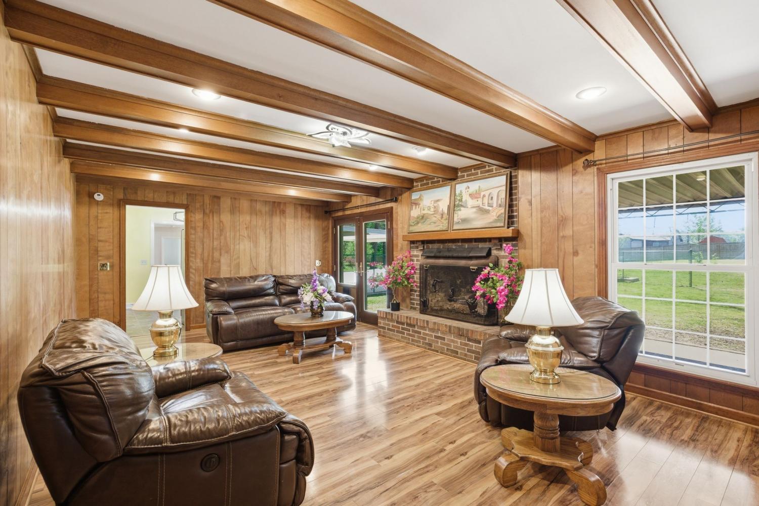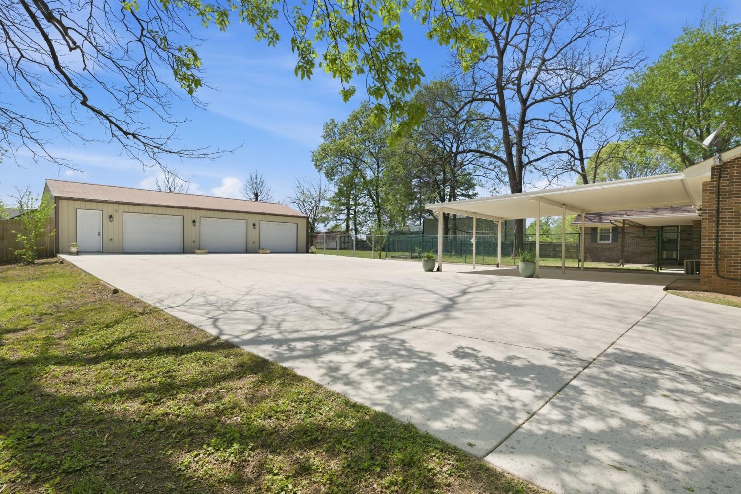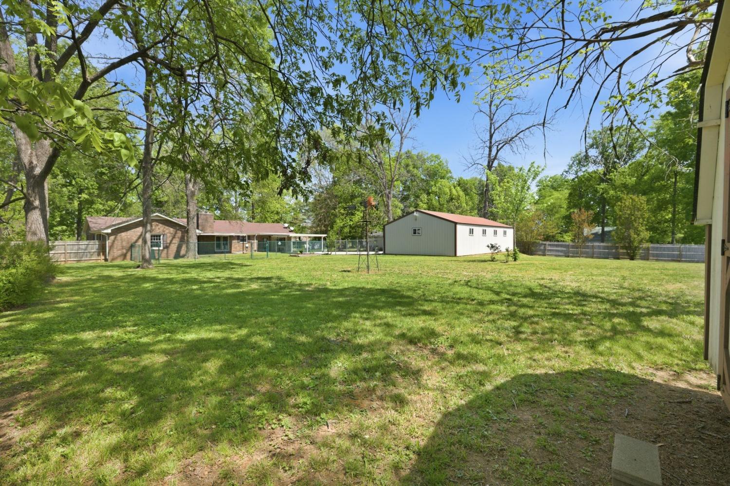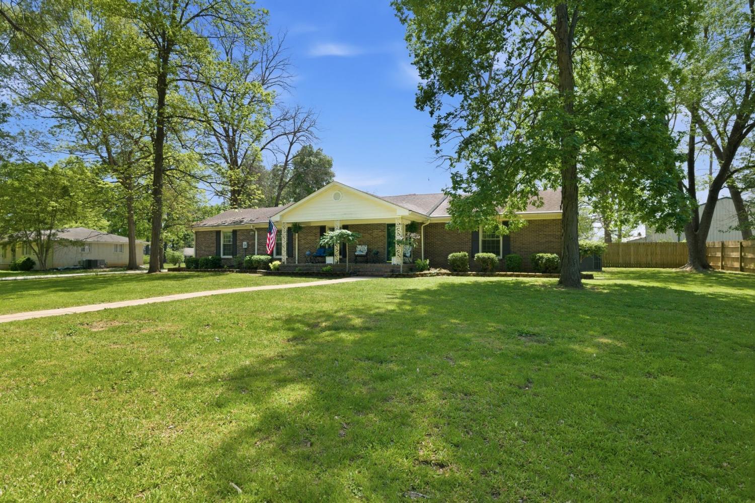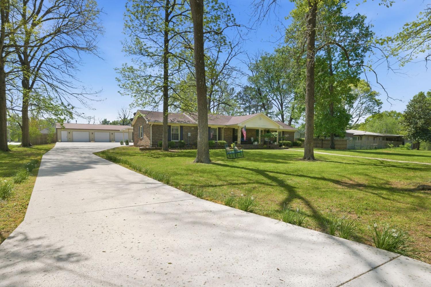 Well-maintained all-brick home positioned on a serene treed lot. An inviting 3 bedroom and 2 bathroom floor plan includes large common area rooms of Den, Dining, Kitchen/Breakfast, and Hobby rooms. The bedrooms are located to the right of the home; and the laundry room is located to the rear of the house. The large level lot includes a fenced backyard and an immediate dog fence; a separate oversized 3-bay garage/shop; mini-barn; carport; front porch; rear patio; abundance of hardscape includes an oversized and deep driveway and parking pad. Owner/Agent selling "as-is" to settle estate. Home inspections are welcome. Please review document links for additional pertinent information including notable maintenance upgrades.