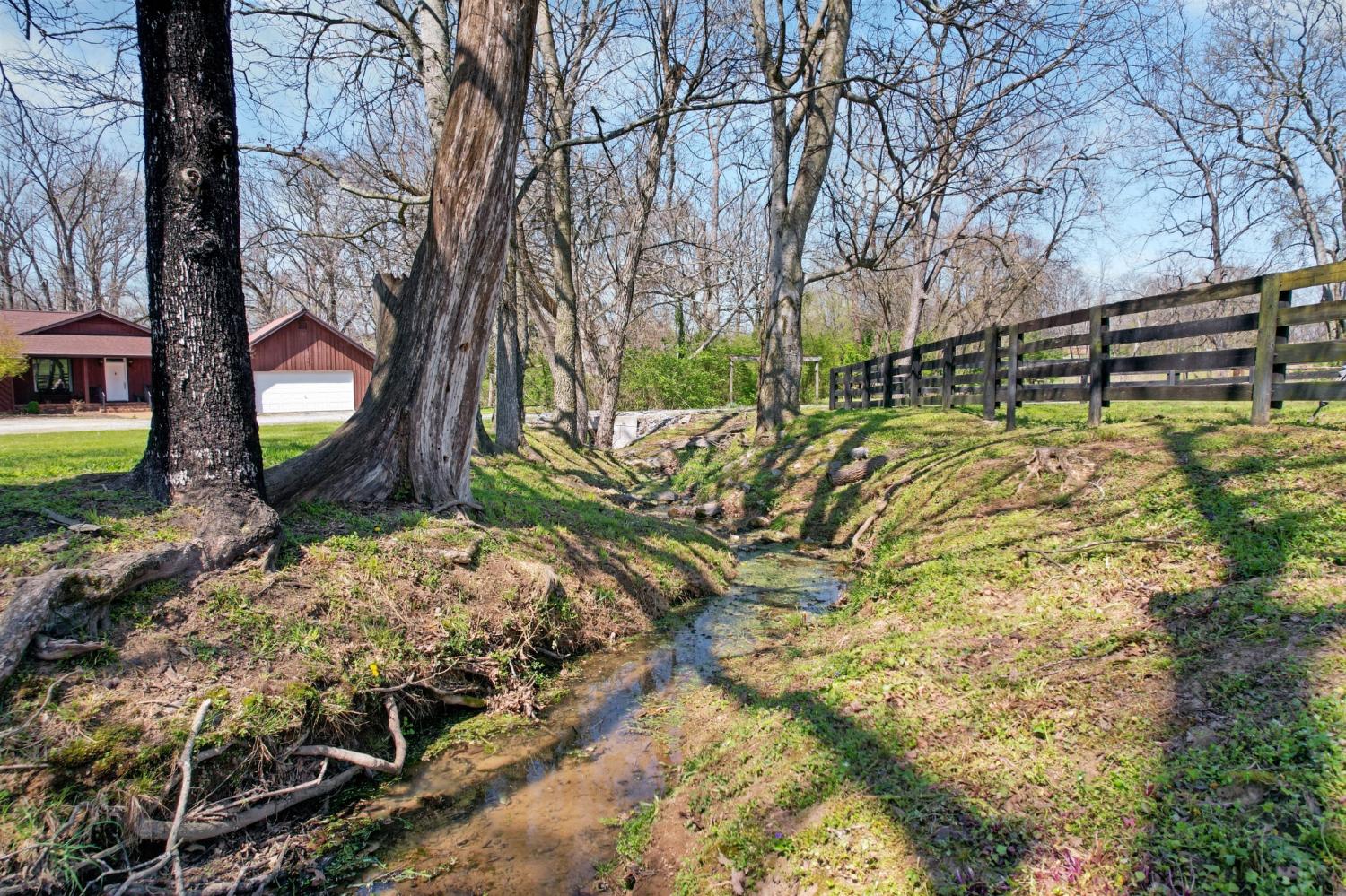 Private 6-acre property in a highly desirable College Grove location, just minutes to Thompson’s Station and convenient to Franklin and Spring Hill. Set back on a long driveway, this property offers privacy and a peaceful setting. The home features 3 bedrooms and 2 bathrooms with hardwood floors, plus a brand new detached finished apartment offering an additional 1 bedroom and 1 bathroom. The apartment includes its own private entrance, full kitchen, washer/dryer, HVAC, and separate living space - ideal for in-laws, guests, or a home office. Recent updates include a newer roof. The land includes fenced pasture, a small creek, space for horses or hobby farm use, and a chicken coop, offering a rural lifestyle close to everyday amenities. A detached garage with a full upstairs area offering ample storage or potential to be finished for additional space. Located in a beautiful area of Williamson County, this property offers space, privacy, and versatility in one of Middle Tennessee’s most sought-after locations.