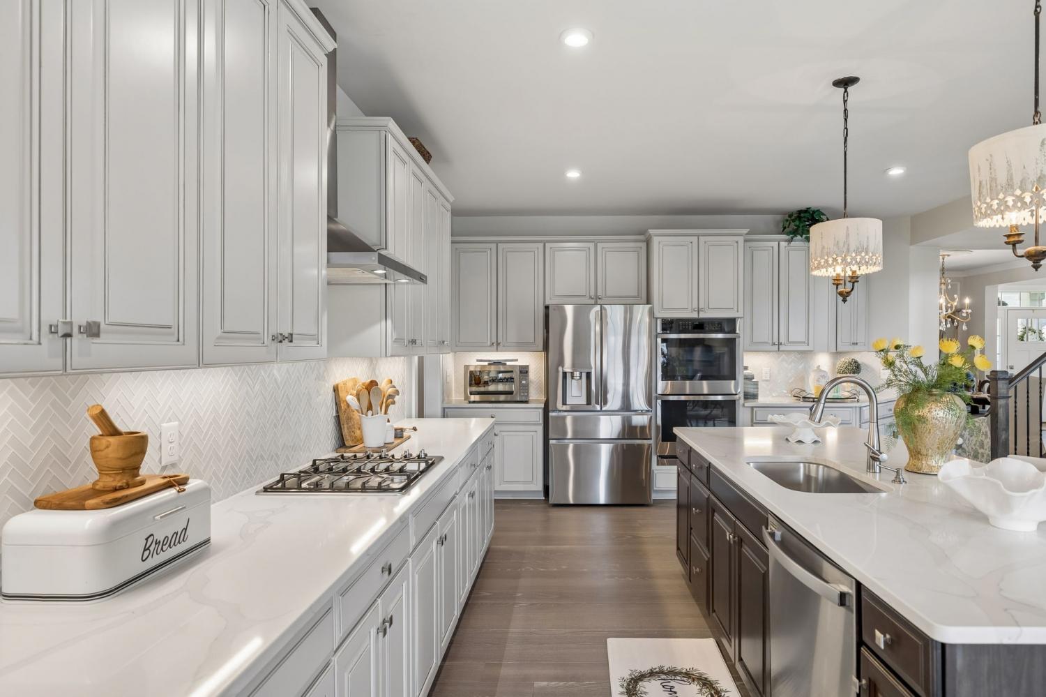 Assumable mortgage at 2.75% - a rare opportunity in today’s market for qualified buyers. Tucked away on a quiet cul-de-sac in College Grove, this is the kind of home you buy for the location and realize the spacious floor plan is even better. Set on just under half an acre, this 5-bedroom, 4.5-bath home provides over 4,300 square feet with an easy, functional layout designed for everyday living and entertaining. The main level is open and filled with natural light, featuring a two-story living room, stacked stone gas fireplace, and floor-to-ceiling windows with custom crown molding. The kitchen has expansive upgraded cabinetry. With a built-in buffet, quartz counter tops, double ovens, large island, custom steel vent fan, and a new dishwasher. Custom sliding doors with transom windows open to extended mudroom with a walk in pantry. Additionally, since purchasing the sellers have thoughtfully enhanced the home with fencing, landscaping, irrigation, custom window treatments including draperies, shades and plantation shutters. Further upgrades include custom light fixtures and fans throughout, wainscoting, hardwood flooring, craftsman doors, and a bonus room wet bar. A main-level guest suite adds flexibility, while upstairs the spacious primary suite includes a sitting area alongside three additional bedrooms, a bonus room, and laundry. Out back, the fenced yard, screened porch, and extended deck create a great setup for relaxing, entertaining and even enjoying 4th of July fireworks from the raised Timbertech deck. The three-car finished garage offers beautiful woodland views across the front of this fantastic property. Located in Falls Grove with resort-style amenities including pools, clubhouse, gym, tennis, basketball courts, putting greens, and playgrounds just minutes to The Grove, Franklin, and Brentwood. Between the assumable mortgage and new upgrades, this home is a standout opportunity in College Grove.