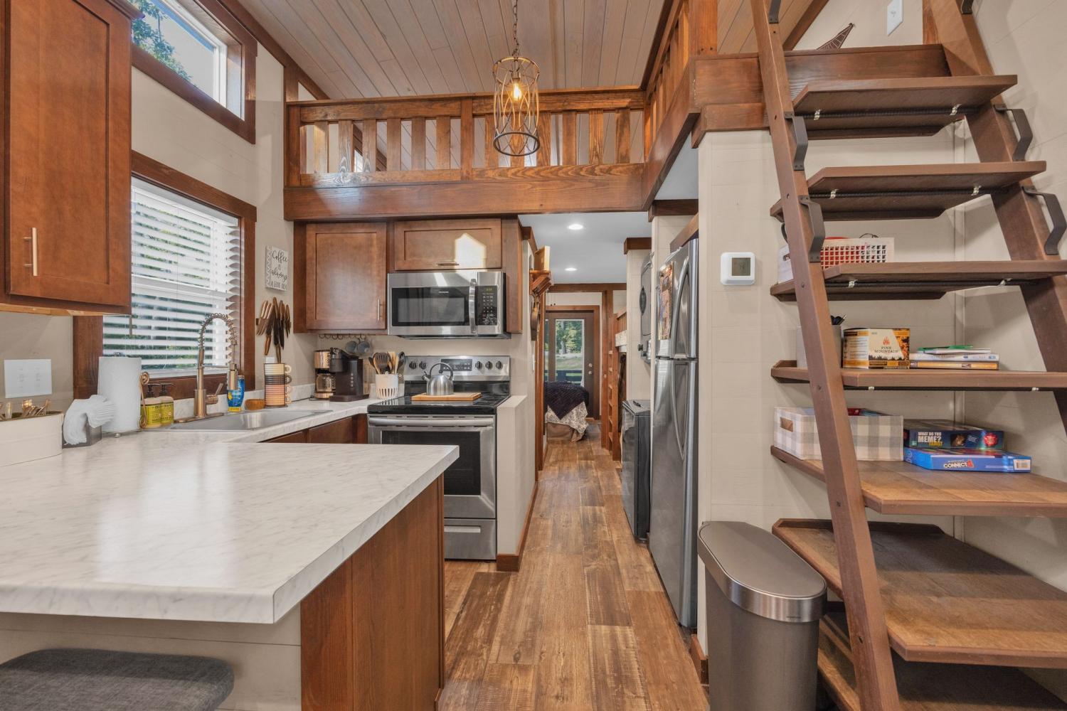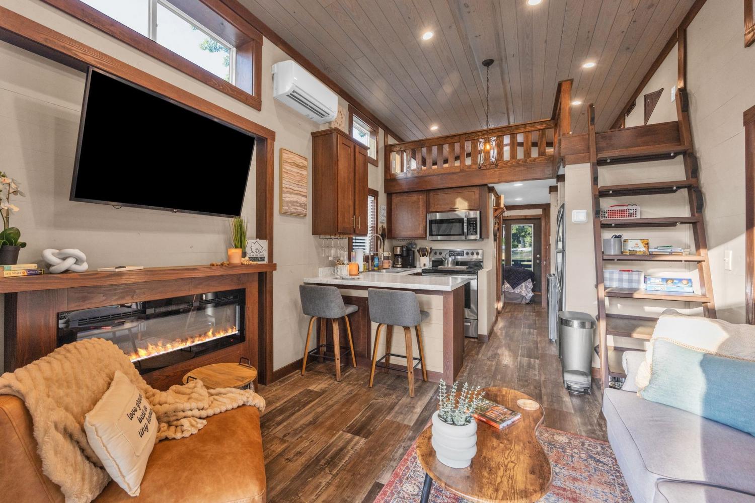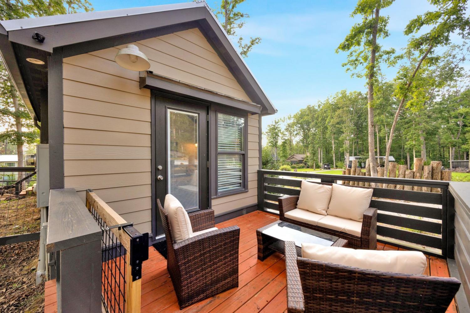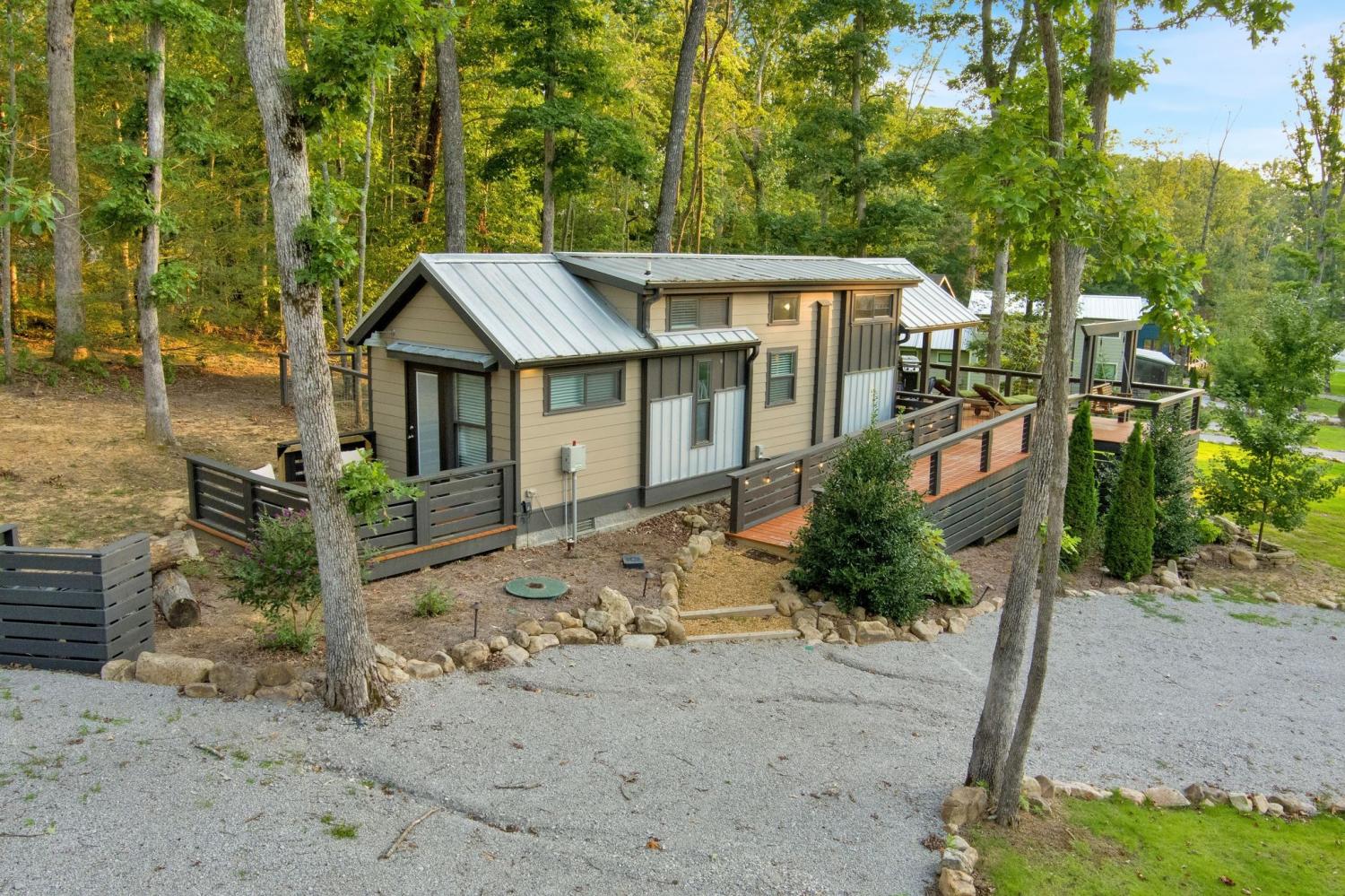 Welcome to Moonlit Cottage at 255 Water’s Edge Way — a charming, fully furnished tiny home nestled inside the gated community of The Retreat at Water’s Edge in Tracy City. Whether you're searching for a peaceful personal getaway or a turnkey short-term rental investment, this cozy retreat offers the perfect blend of relaxation, nature, and income potential. Thoughtfully designed to maximize space and comfort, the home comfortably sleeps up to 6 guests and features: • A private bedroom with a queen bed • Twin bunk beds ideal for kids or guests • A lofted sleeping area with two twin beds (accessible by ladder; low ceiling, perfect for adventurous sleepers) • A full bathroom and a well-equipped kitchen Step outside and enjoy your own private outdoor space complete with: • Firepit for evenings under the stars • Gas grill for easy entertaining • Fenced-in yard — perfect for pet-friendly stays Located just a short walk to lake access, this home invites you to spend your days kayaking, fishing, or simply soaking in the peaceful surroundings. The community also offers shared fire pits, a playground, scenic dock, and a welcoming atmosphere that guests return to again and again. Conveniently situated only 11 miles from The Caverns, a world-renowned underground music venue, this property is ideally positioned for vacationers seeking a unique experience — making it a strong candidate for short-term rental income. As the sun sets, enjoy the glow of string lights, the sparkle of fireflies, and the occasional visit from local wildlife — all part of the magic that makes Moonlit Cottage so special. Sold furnished and ready to enjoy or rent immediately, this is your opportunity to own a slice of Tennessee’s most charming tiny home community.