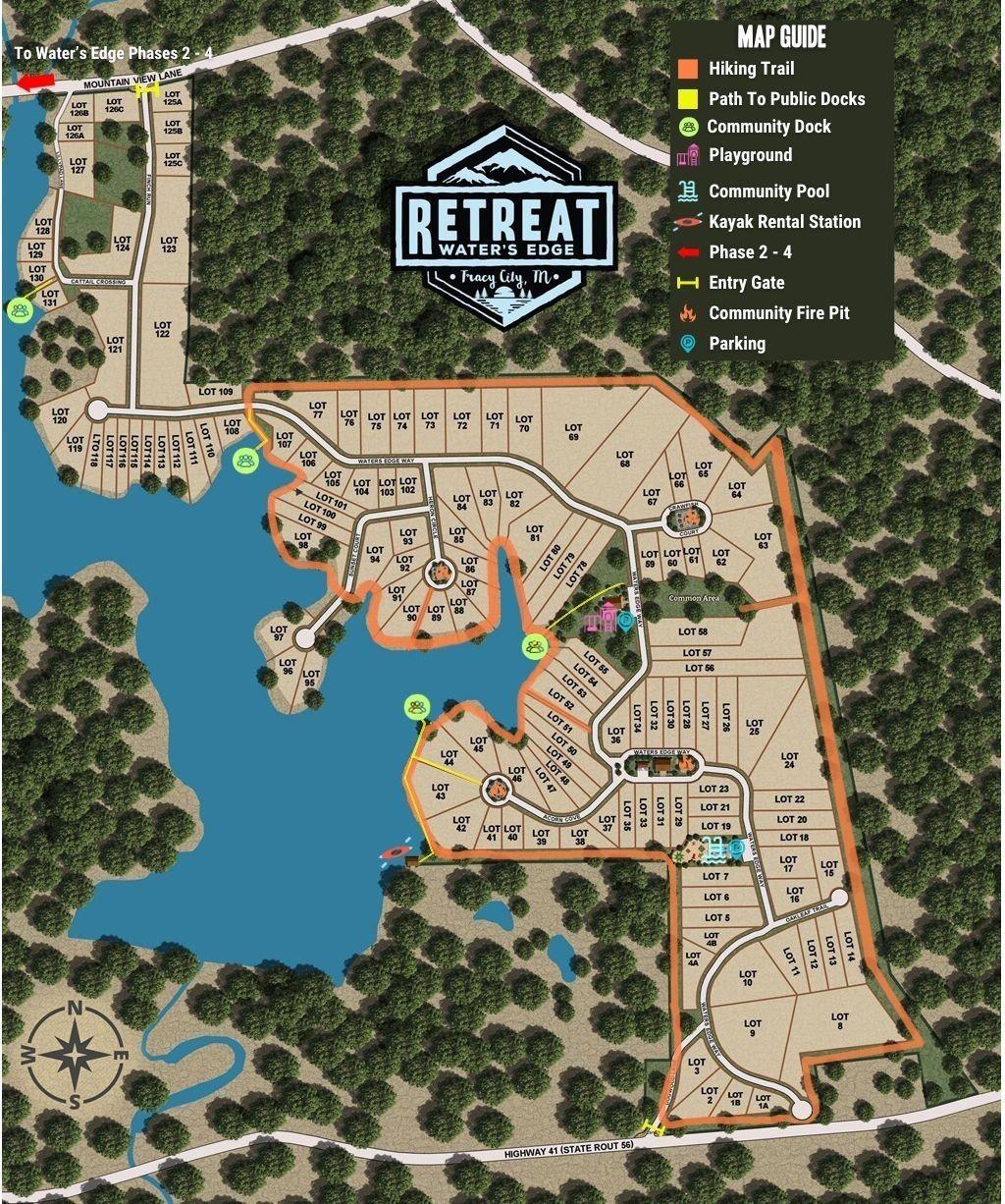 From Nashville, I-24 E towards Chattanooga, Exit 134, Monteagle Exit, R US 41A, L US 41 towards Tracy City, L at Waters Edge Entrance, Take Waters Edge Way