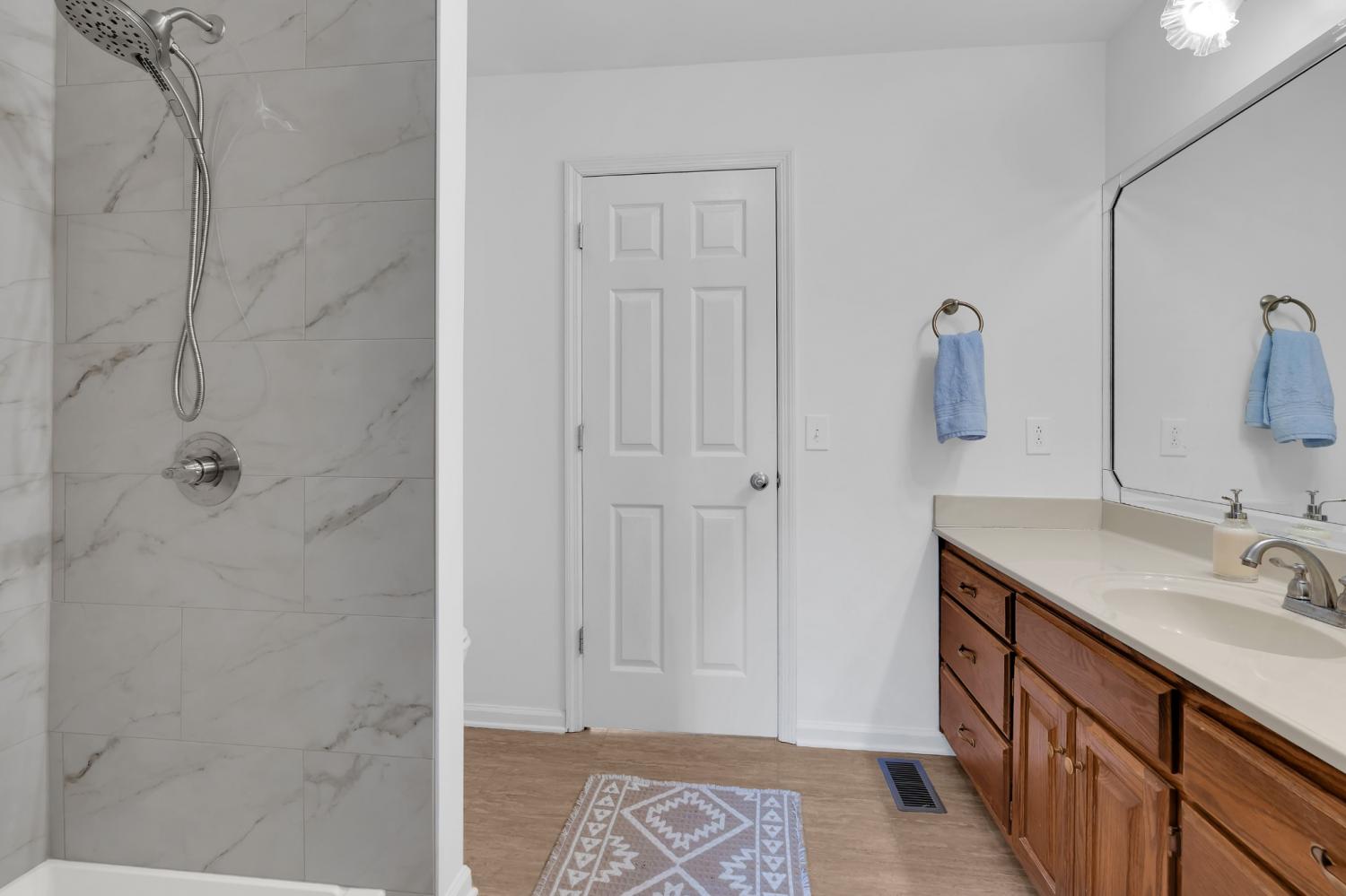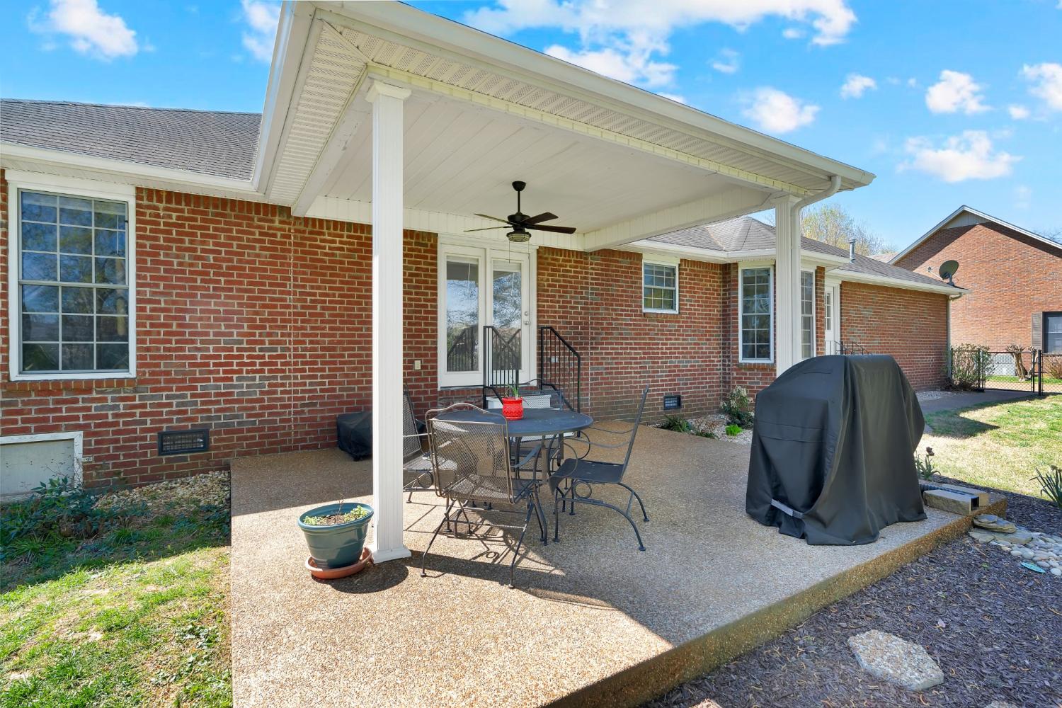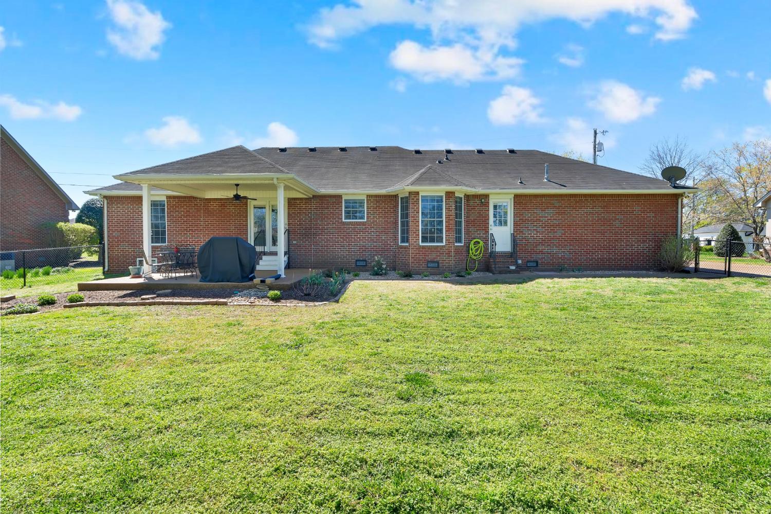 Beautiful full brick home. Established neighborhood. NO home owners association! 3BR & 2 Full BA, 1666 sqft all on 1 level! Attic storage over garage. Fenced back yard, covered patio. Could easily be converted to handicap accessible. 2 car garage. Nice custom cabinets with built in desk in kitchen. Entry foyer with a big closet for storage. All BRs have big closets. Separate laundry room. Central vacuum system. Brand New LVT in Bathrooms, kitchen and Laundry room. New tile shower in master bath.