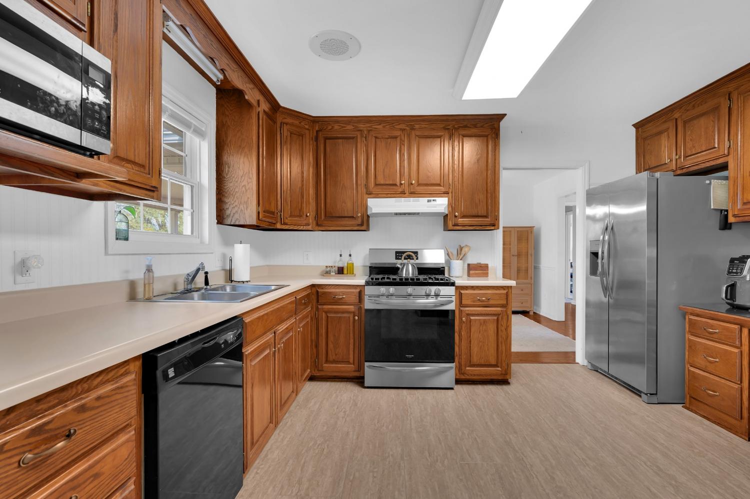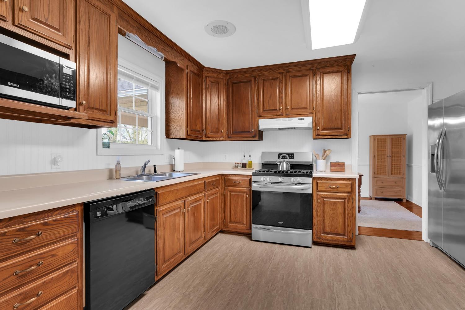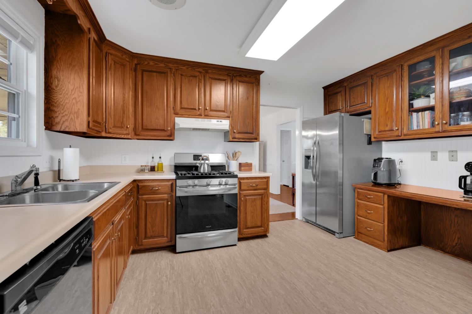 Beautiful full brick home. Established neighborhood. NO home owners association! 3BR & 2 Full BA, 1666 sqft all on 1 level! Attic storage over garage. Fenced back yard, covered patio. Could easily be converted to handicap accessible. 2 car garage. Nice custom cabinets with built in desk in kitchen. Entry foyer with a big closet for storage. All BRs have big closets. Separate laundry room. Central vacuum system. Brand New LVT in Bathrooms, kitchen and Laundry room. New tile shower in master bath.