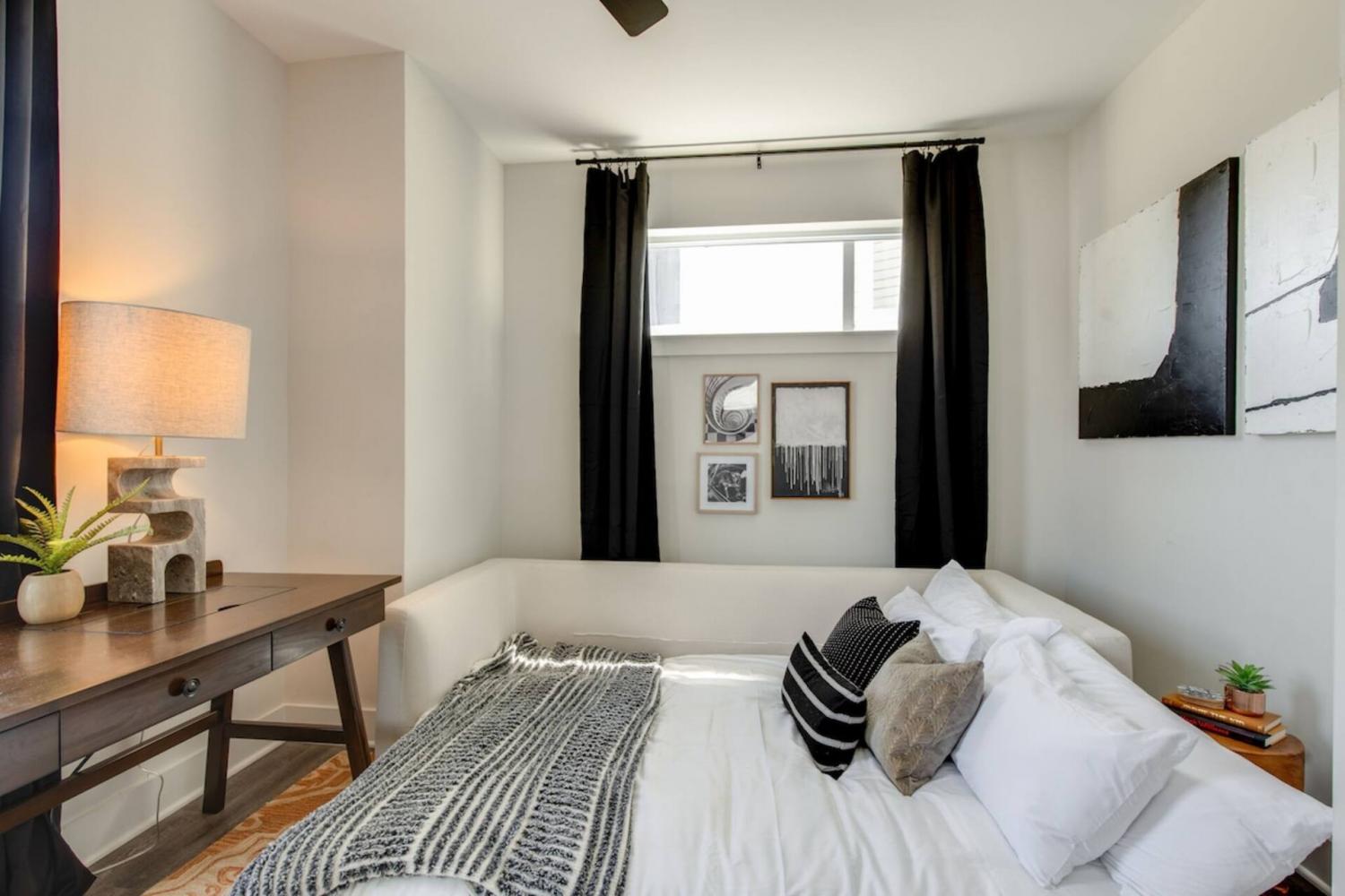 A modern retreat in the heart of Nashville. This unit offers 3 bed, 2.5 bath and 1,544 sqft of living space. An open-concept layout blends style, comfort and comes fully furnished. Fantastic price - substantial reduction from previously listing. The chef’s kitchen features state-of-the-art appliances, while sleek laminate flooring and central heating and cooling enhance everyday living. Additional highlights include a 2- car attached garage and washer and dryer. Conveniently located less than 15 minutes from downtown, and adjacent to Sylvan Park and The Nations, the home provides easy access to premier dining, shopping, and entertainment. Rare STR NOO (Short Term Rental, Non-Owner Occupant) in this location! Perfectly balances urban convenience and modern comfort: move-in ready. 14 units total; can be purchased as an entire entity or in groups. See commercial listing. We need notice to show, due to rental occupancy.