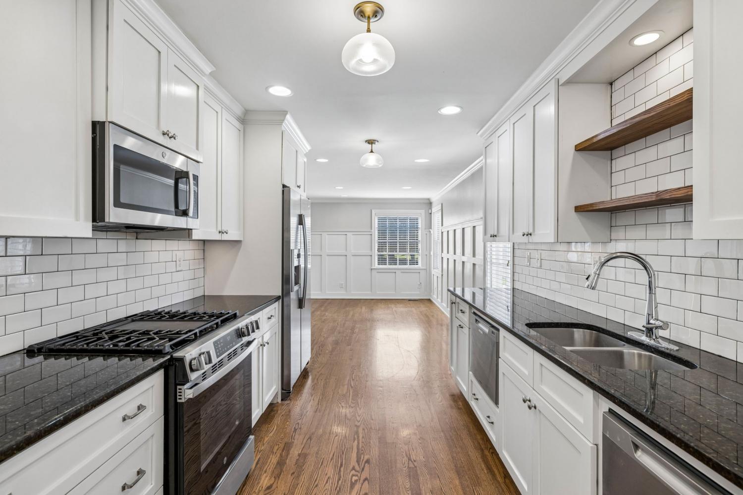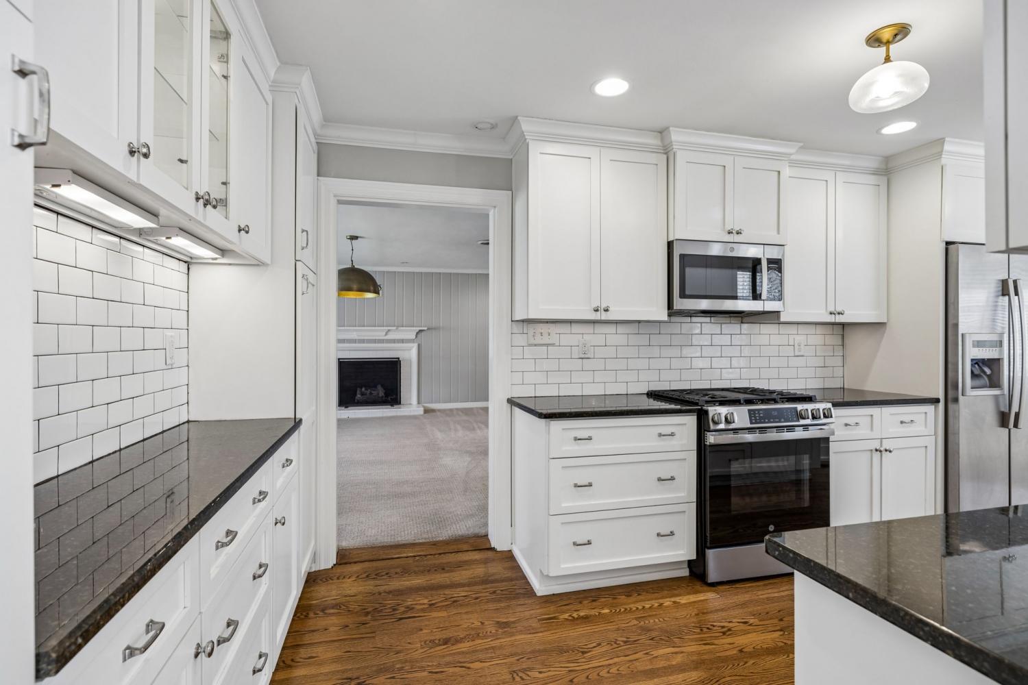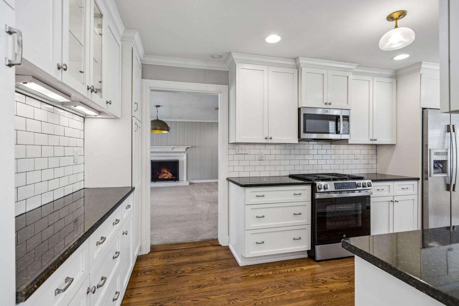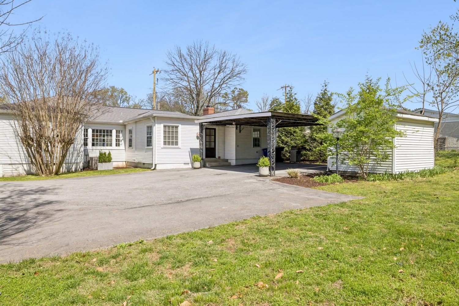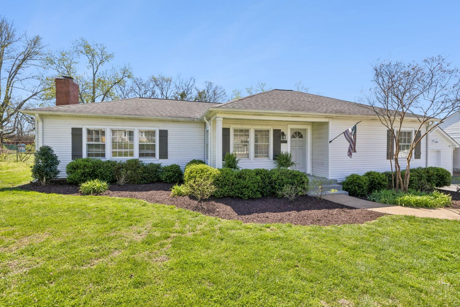 Charming 3 bed, 2 full bath white cottage w/ front porch & 2 car carport ~ Cozy ~ Timeless ~ Fenced Yard ~ Storage sheds ~ Updated ~ Spacious Kitchen w/ gas cooktop, dishwasher drawers, Granite counters, Tile backsplash ~ Wood floors ~ Breakfast Room ~ Dining Room ~ Family Room w/ wood paneling ~ Living Room ~ 2 fireplace ~ Tiled baths ~ Generous closet space ~ Built in bookshelves ~ Outdoor firepit ~ Around the corner from Hanks' coffee, school, Franklin library, historic sites, restaurants & more ~ Nestled in Downtown Franklin ~ Level backyard ~ Great Investment opportunity ~ Deep Lot ~ Sidewalks ~ All Appliances remain