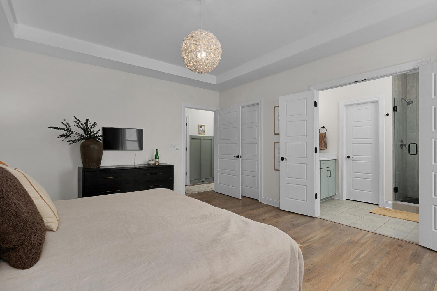 Welcome to 1548 Bourbon Way in the desirable Heritage Walk neighborhood in the heart of East Brainerd super convenient to schools, parks, medical facilities and the shopping and restaurants in the Hamilton Place area. This 5 bedroom, 3.5 bath home is positioned on a corner lot overlooking one of the many community greenspaces and boasts so many desirable features including a versatile floor plan with an open layout, the primary suite on the main, a single and double bay garage, great outdoor living spaces, LVP flooring, recessed and decorative lighting, a bonus room and more! Entry to the home is via the covered front porch to the living room which has a gas fireplace and is open to the kitchen and dining rooms. The kitchen has a center island, quartz countertops, tile backsplash, stainless appliances and a walk-in pantry. The dining area has access to the side patio area which is partially covered and enclosed by a privacy fence and has secondary access from the garage which provides a great flow for indoor to outdoor entertaining and everyday living. A hallway from the kitchen leads to the primary suite and has access to the powder room, laundry room, garage and a set of steps to one of the two upper levels. The primary bedroom has a trey ceiling, walk-in closet and private bath with a dual vanity, garden tub, separate tiled shower and a water closet. Head upstairs where you will find 3 additional bedrooms, one with a covered balcony, a full hall bath, and walk-out attic storage. The upper level over the garage has a 5th bedroom with a private bath and a walk-through closet to a bonus room with a bar that makes a great media or TV room - perfect for teens or extended guests. All of this, and it's in a great neighborhood for walking with sidewalks and trails, and it also has multiple common greenspaces, a community pool and a pond, so please call for more information and to schedule your private showing today. Information is deemed reliable but not guaranteed.