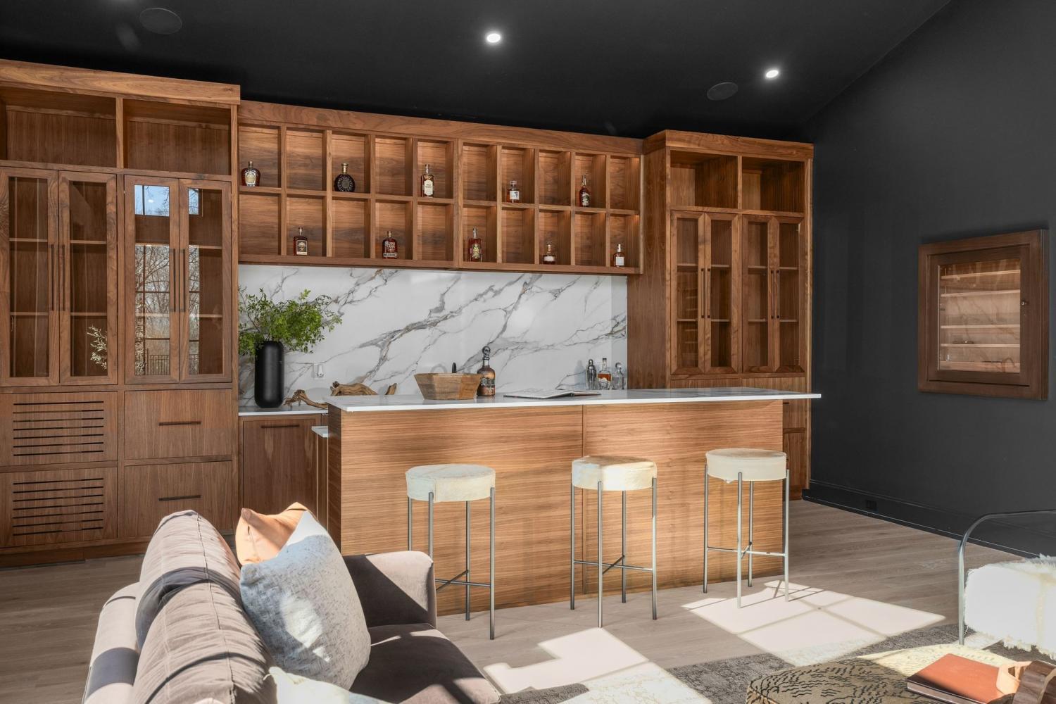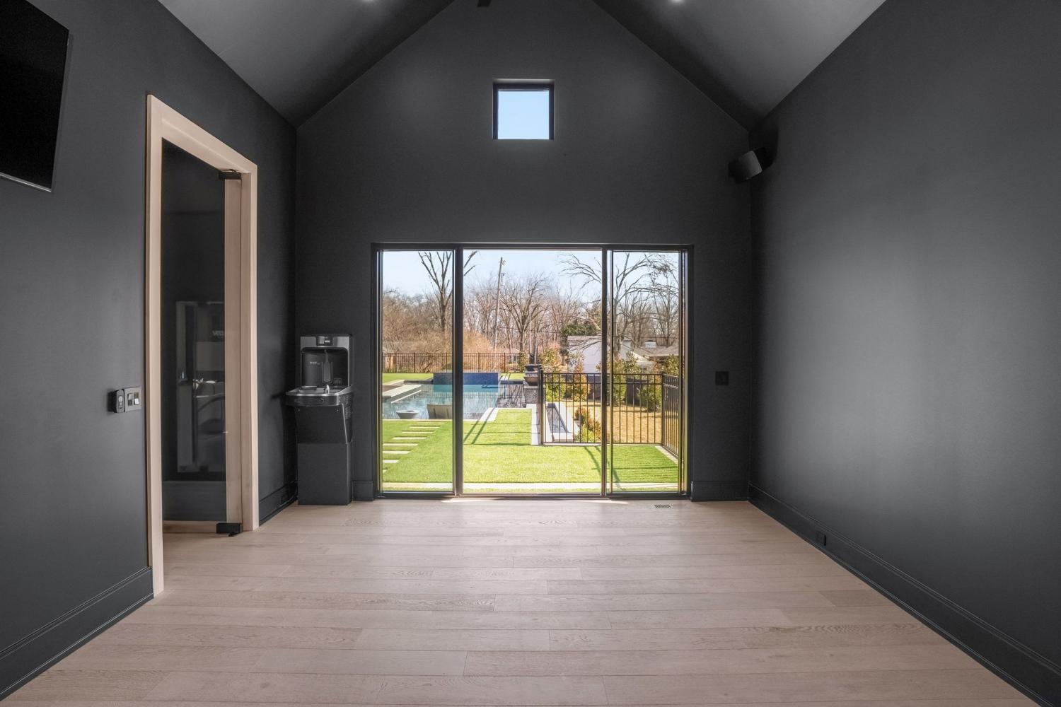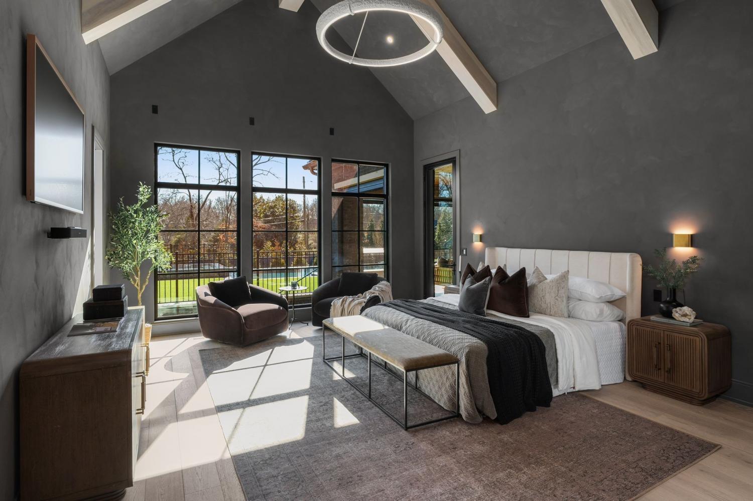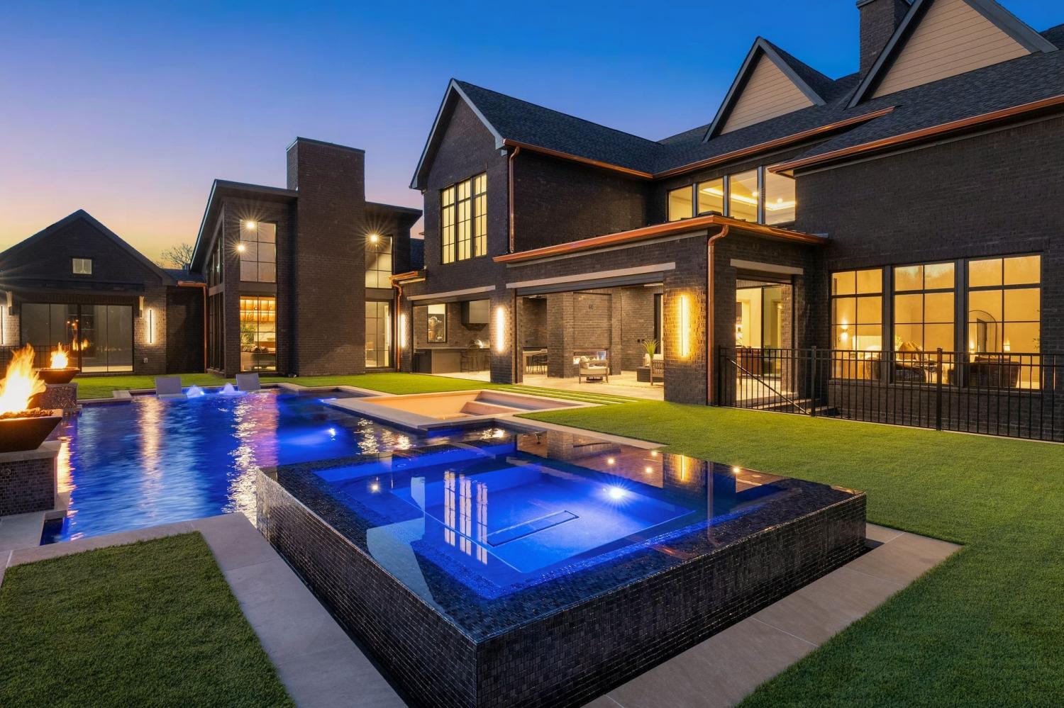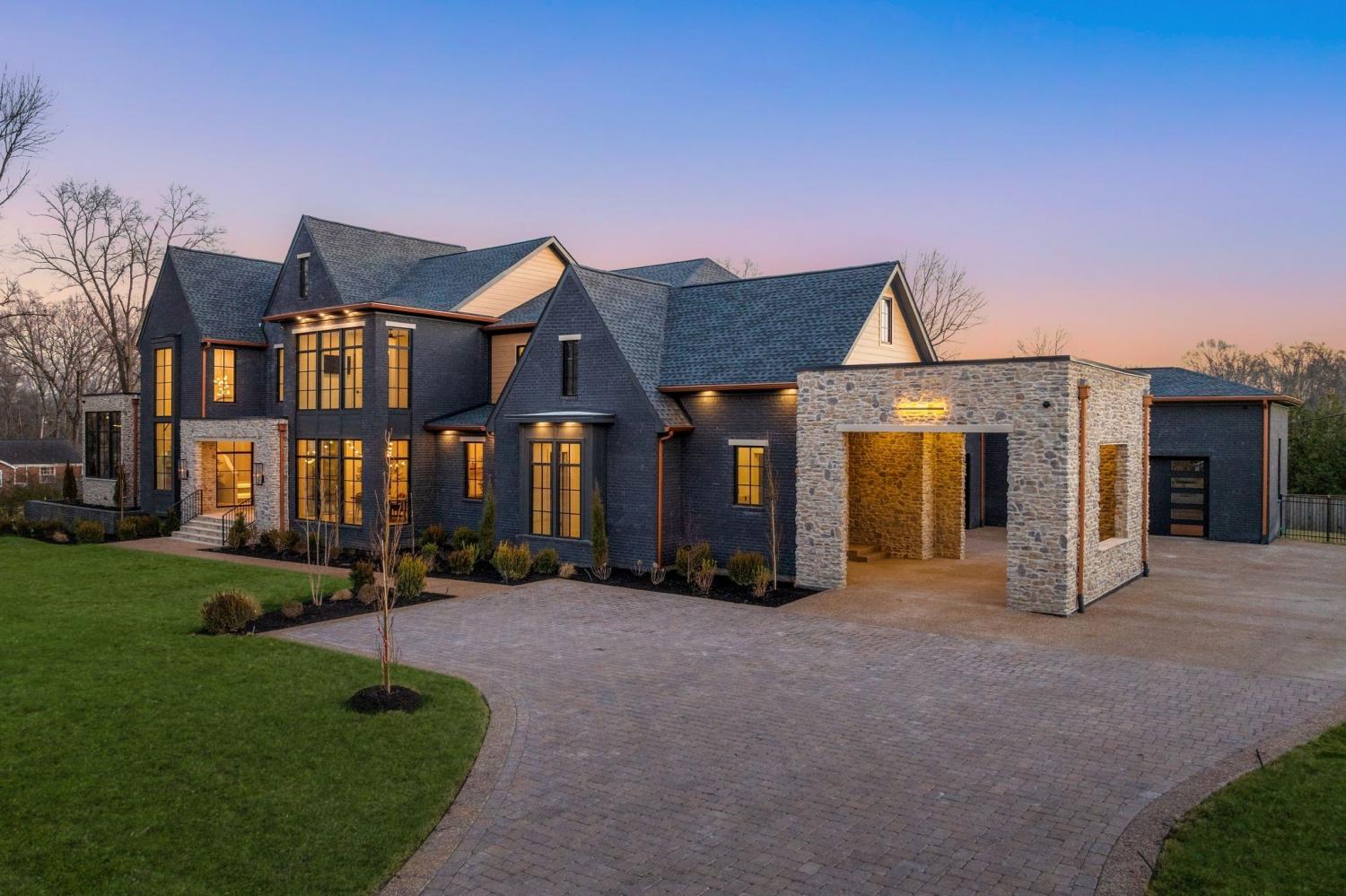 Welcome to Blackberry Estate, a truly one-of-a-kind luxury residence on Gun Club Rd, the most prestigious street in West Meade. This grand estate is clad in a rich blend of stone, wood, and metal, creating a commanding yet warm architectural presence. Set on nearly an acre, the home spans approximately 8,608 square feet and offers 5 bedrooms, 5 full bathrooms, and 2 half bathrooms. A striking metal pivot front door with biometric entry opens to dramatic interiors anchored by a sculptural curved arcustone staircase, full aluminum windows and doors, and carefully curated finishes throughout. Designed for both refined living and elevated entertaining, the home features a chef’s kitchen with Thermador appliances, double islands, scullery, and wine refrigeration, along with a club room showcasing a built-in humidor and illuminated liquor display. The layout includes two private home offices, a bunk room, bonus room, gym with water fountain, infrared sauna, and a dedicated theater/media room. The primary suite offers spa-level luxury with heated marble floors, steam shower with body jets, and separate his-and-hers closets. Outdoor living rivals a private resort, featuring limestone porches, motorized screens, multiple fireplaces, a sunken fire pit, and a stunning gunite infinity pool with fire bowls, bar seating, and integrated sound. A five-car garage, Control4 security, and thoughtful details throughout complete this extraordinary offering—an estate unlike anything else in Nashville.