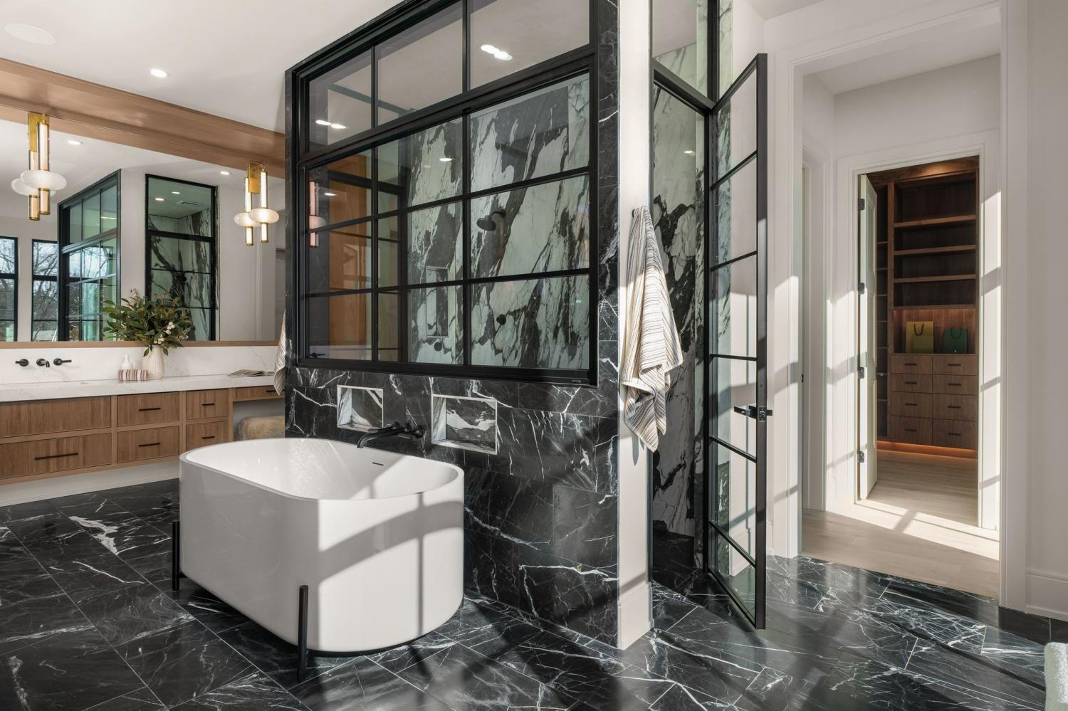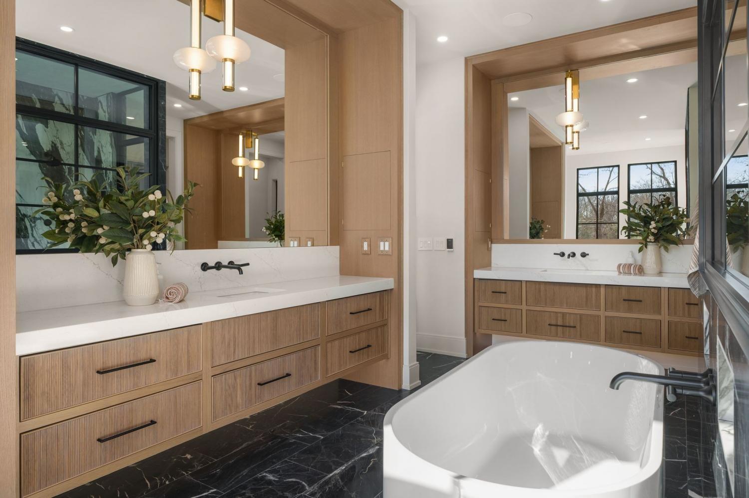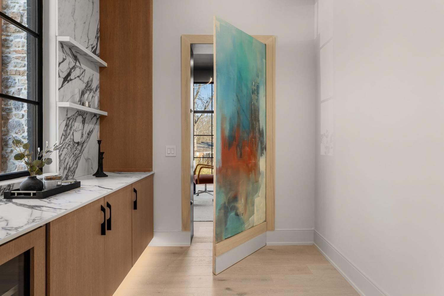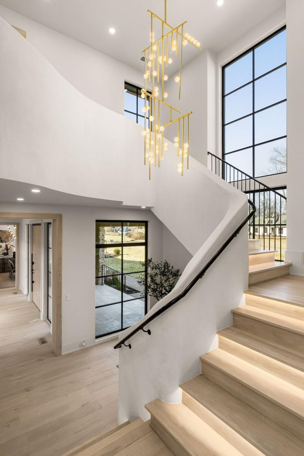 Welcome to Blackberry Estate, a truly one-of-a-kind luxury residence on Gun Club Rd, the most prestigious street in West Meade. This grand estate is clad in a rich blend of stone, wood, and metal, creating a commanding yet warm architectural presence. Set on nearly an acre, the home spans approximately 8,608 square feet and offers 5 bedrooms, 5 full bathrooms, and 2 half bathrooms. A striking metal pivot front door with biometric entry opens to dramatic interiors anchored by a sculptural curved arcustone staircase, full aluminum windows and doors, and carefully curated finishes throughout. Designed for both refined living and elevated entertaining, the home features a chef’s kitchen with Thermador appliances, double islands, scullery, and wine refrigeration, along with a club room showcasing a built-in humidor and illuminated liquor display. The layout includes two private home offices, a bunk room, bonus room, gym with water fountain, infrared sauna, and a dedicated theater/media room. The primary suite offers spa-level luxury with heated marble floors, steam shower with body jets, and separate his-and-hers closets. Outdoor living rivals a private resort, featuring limestone porches, motorized screens, multiple fireplaces, a sunken fire pit, and a stunning gunite infinity pool with fire bowls, bar seating, and integrated sound. A five-car garage, Control4 security, and thoughtful details throughout complete this extraordinary offering—an estate unlike anything else in Nashville.