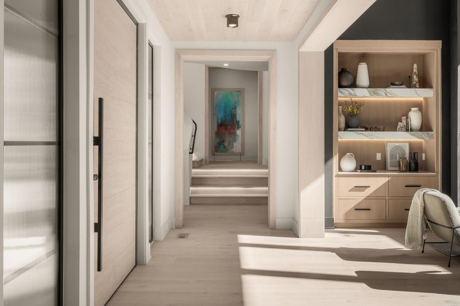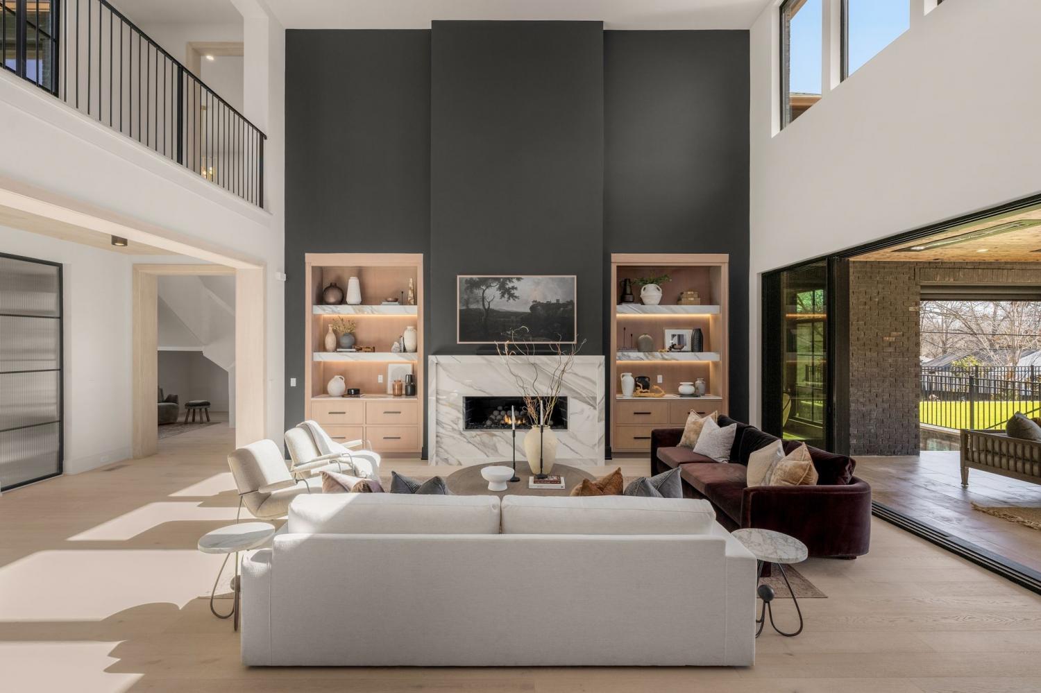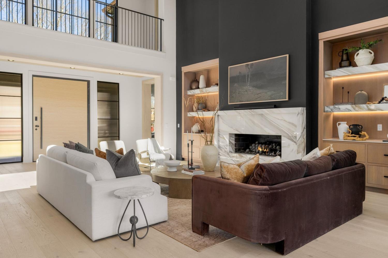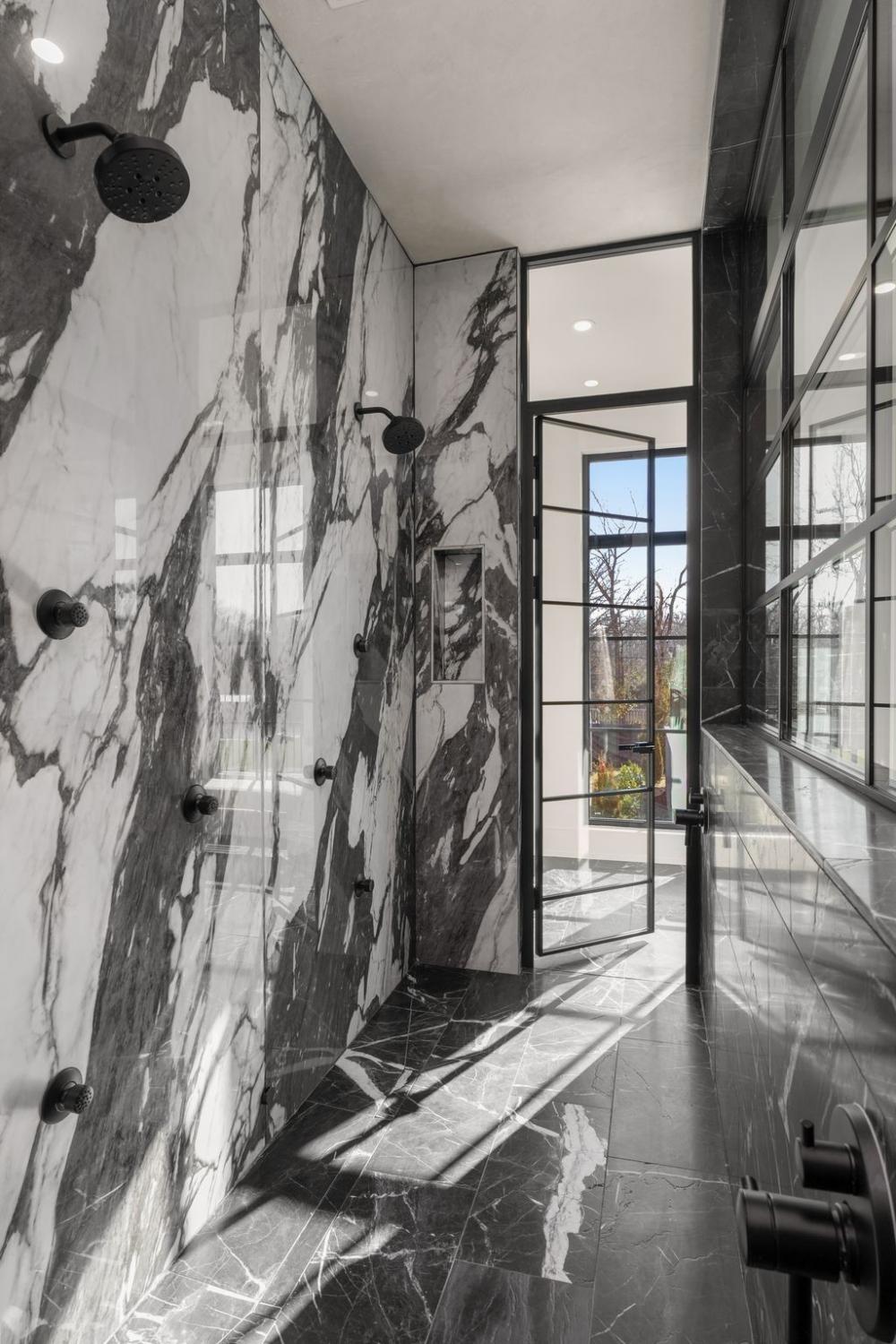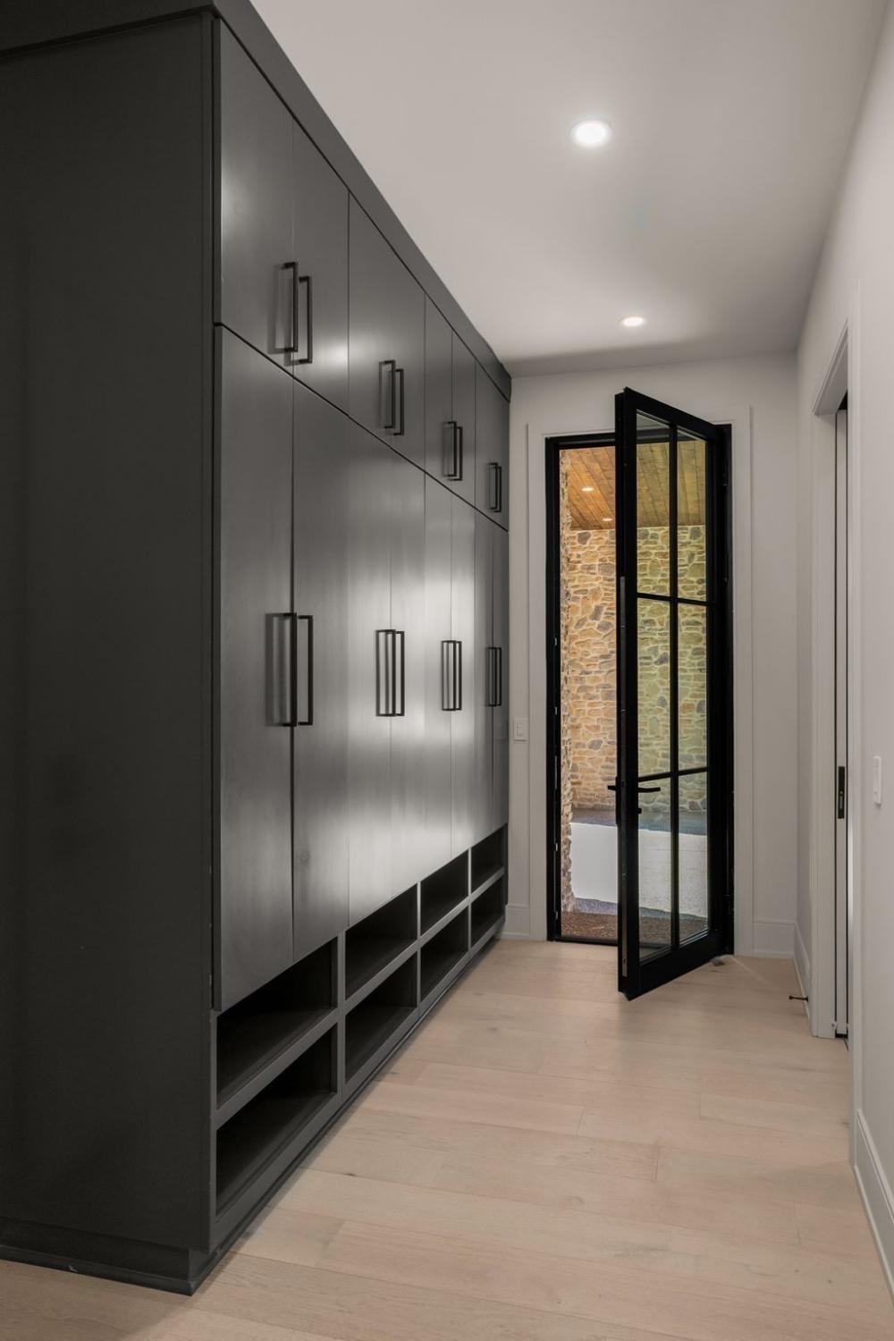 Welcome to Blackberry Estate, a truly one-of-a-kind luxury residence on Gun Club Rd, the most prestigious street in West Meade. This grand estate is clad in a rich blend of stone, wood, and metal, creating a commanding yet warm architectural presence. Set on nearly an acre, the home spans approximately 8,608 square feet and offers 5 bedrooms, 5 full bathrooms, and 2 half bathrooms. A striking metal pivot front door with biometric entry opens to dramatic interiors anchored by a sculptural curved arcustone staircase, full aluminum windows and doors, and carefully curated finishes throughout. Designed for both refined living and elevated entertaining, the home features a chef’s kitchen with Thermador appliances, double islands, scullery, and wine refrigeration, along with a club room showcasing a built-in humidor and illuminated liquor display. The layout includes two private home offices, a bunk room, bonus room, gym with water fountain, infrared sauna, and a dedicated theater/media room. The primary suite offers spa-level luxury with heated marble floors, steam shower with body jets, and separate his-and-hers closets. Outdoor living rivals a private resort, featuring limestone porches, motorized screens, multiple fireplaces, a sunken fire pit, and a stunning gunite infinity pool with fire bowls, bar seating, and integrated sound. A five-car garage, Control4 security, and thoughtful details throughout complete this extraordinary offering—an estate unlike anything else in Nashville.