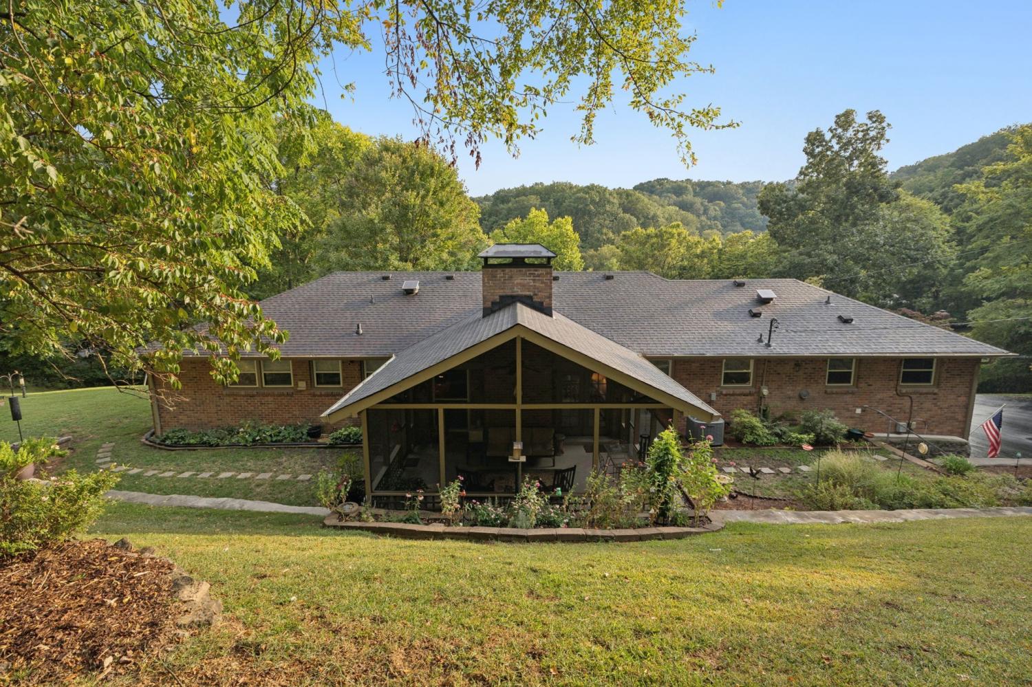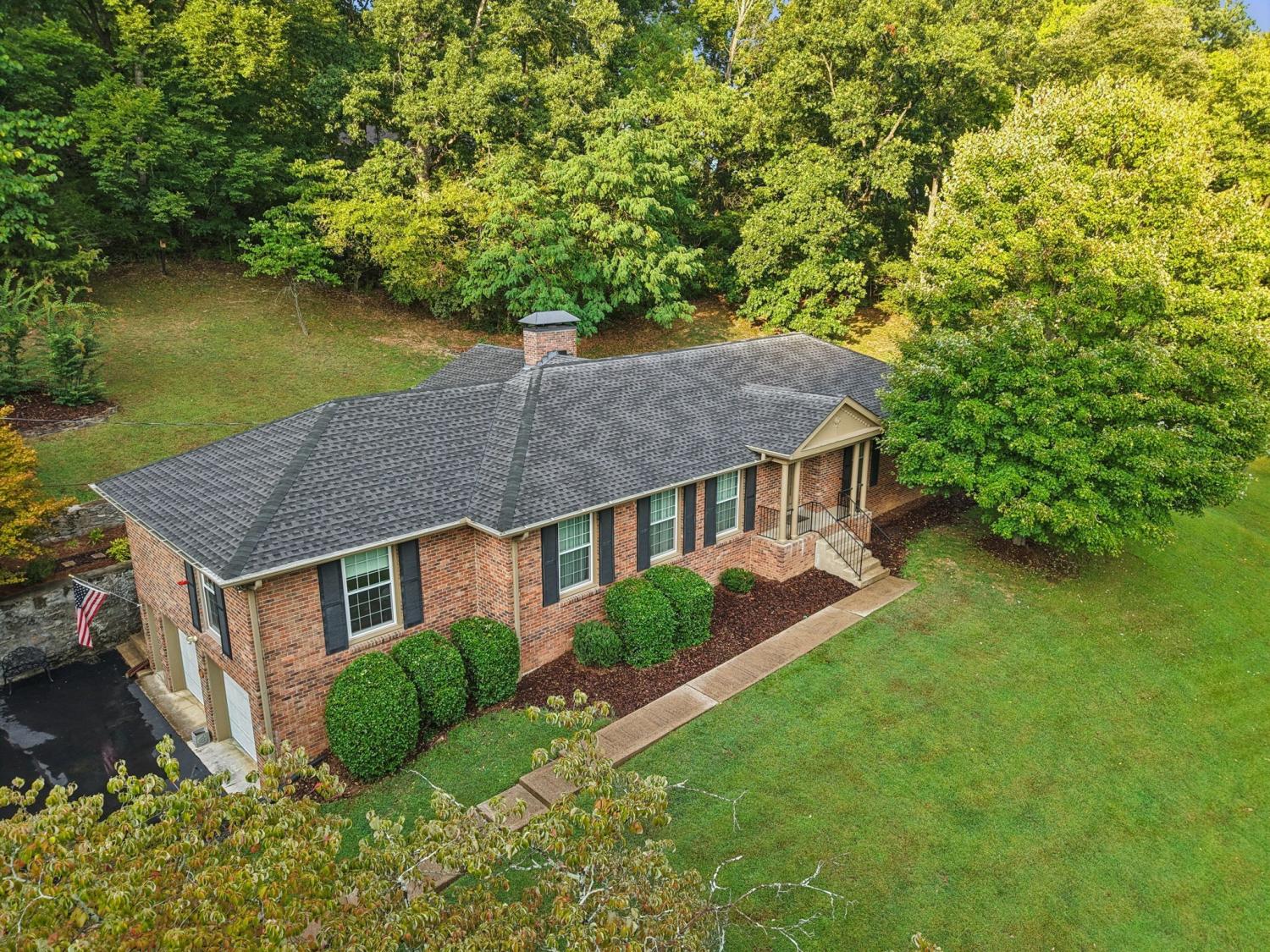 Welcome to this stunning one-level brick ranch home, perfectly situated at the end of a quiet cul-de-sac on nearly 2 acres of natural beauty. Offering 2,373 square feet of living space, this home combines timeless charm with functional design, making it an ideal retreat for today’s lifestyle. Inside, you’ll find an excellent floor plan with 3–4 bedrooms, 2 full baths, and 1 half bath, providing flexibility for your needs. The home features hardwood floors throughout the main living areas, a marble foyer and a handsome fireplace that anchors the den, creating warmth and elegance. The generous utility room and office/ hobby room add everyday convenience, while the screened porch invites you to relax and enjoy beautiful views of the lush, landscaped lot from almost every window. Outdoors, this property truly shines. Set on 1.97 acres, it’s a nature lover’s paradise with plenty of room to explore, garden, or simply take in the peaceful surroundings. The 2-car basement garage provides ample parking and storage space, while the home’s setting in a great neighborhood ensures privacy. With its spacious layout and unbeatable location, this home is a rare find that offers the perfect blend of comfort, style, and natural beauty. Don’t miss the chance to make this quiet cul-de-sac retreat your forever home!