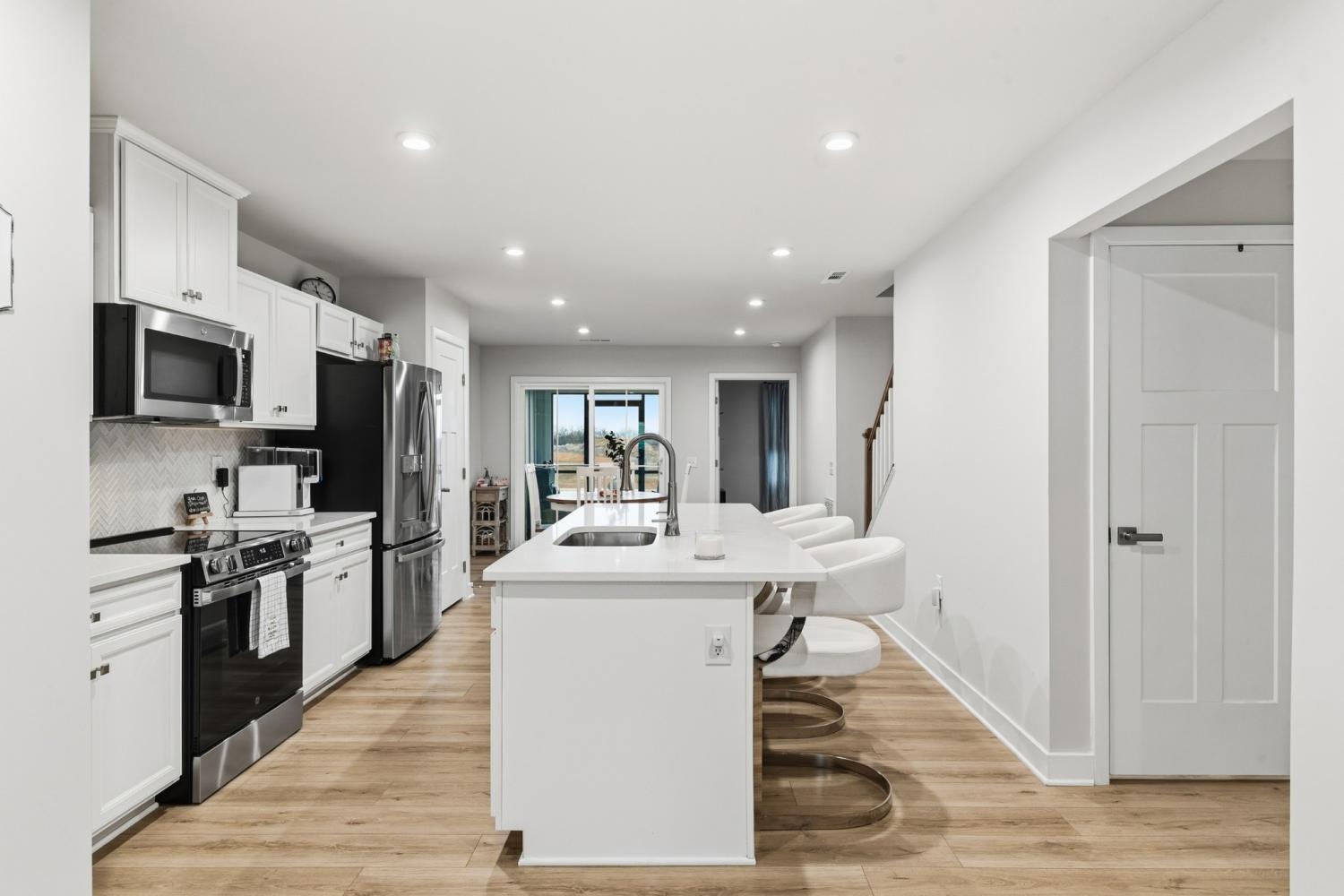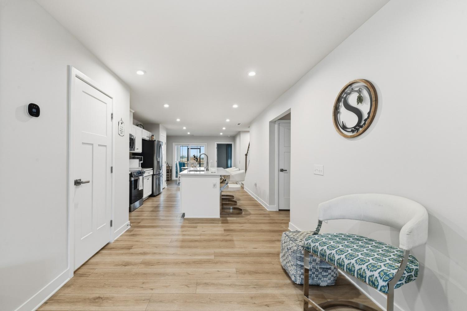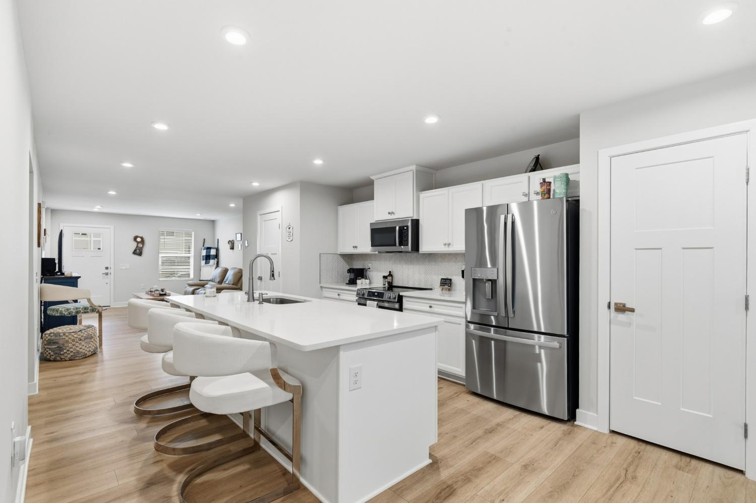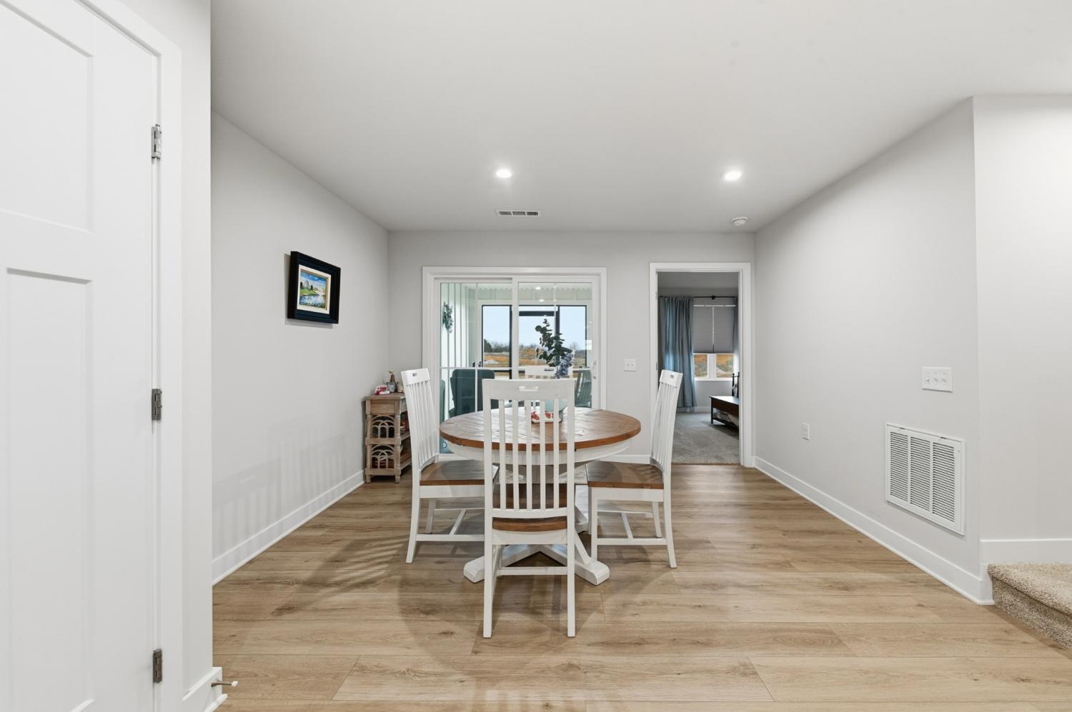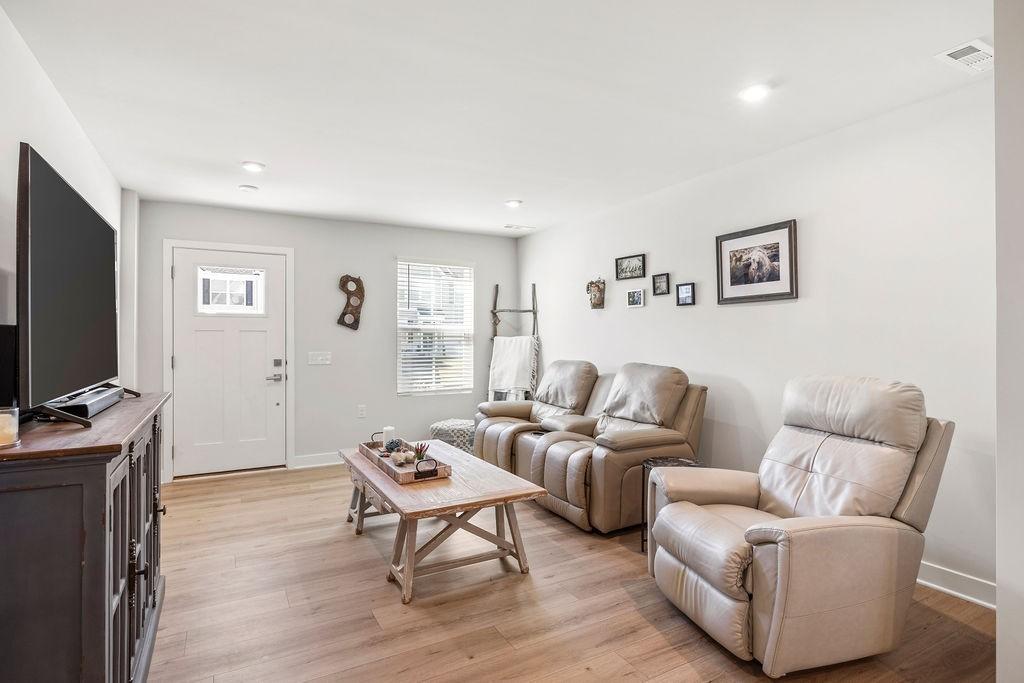 Welcome home to easy living in this beautifully designed townhome featuring a bright, open floor plan that makes everyday life and entertaining effortless. The main living area flows seamlessly into the kitchen, where you’ll find granite countertops, recessed lighting, ample cabinetry, and a pantry for extra storage. The layout feels open yet functional perfect for gathering with family or hosting friends. With your primary bedroom, full bath with double vanity and walk in closet and laundry ALL conveniently located on the main level life is good! Just off the living space, enjoy your covered, screened-in back porch a private spot to relax with your morning coffee or unwind in the evenings.. Also on the main level is a one-car garage, providing both convenience and additional storage. Upstairs, you’ll find two generously sized bedrooms and a full bathroom, offering flexibility for guests, a home office, or additional living space. Luxury vinyl plank flooring adds durability and style. This townhome offers low-maintenance living without sacrificing comfort or functionality — a smart choice for anyone looking for convenience and modern finishes in one beautiful package.