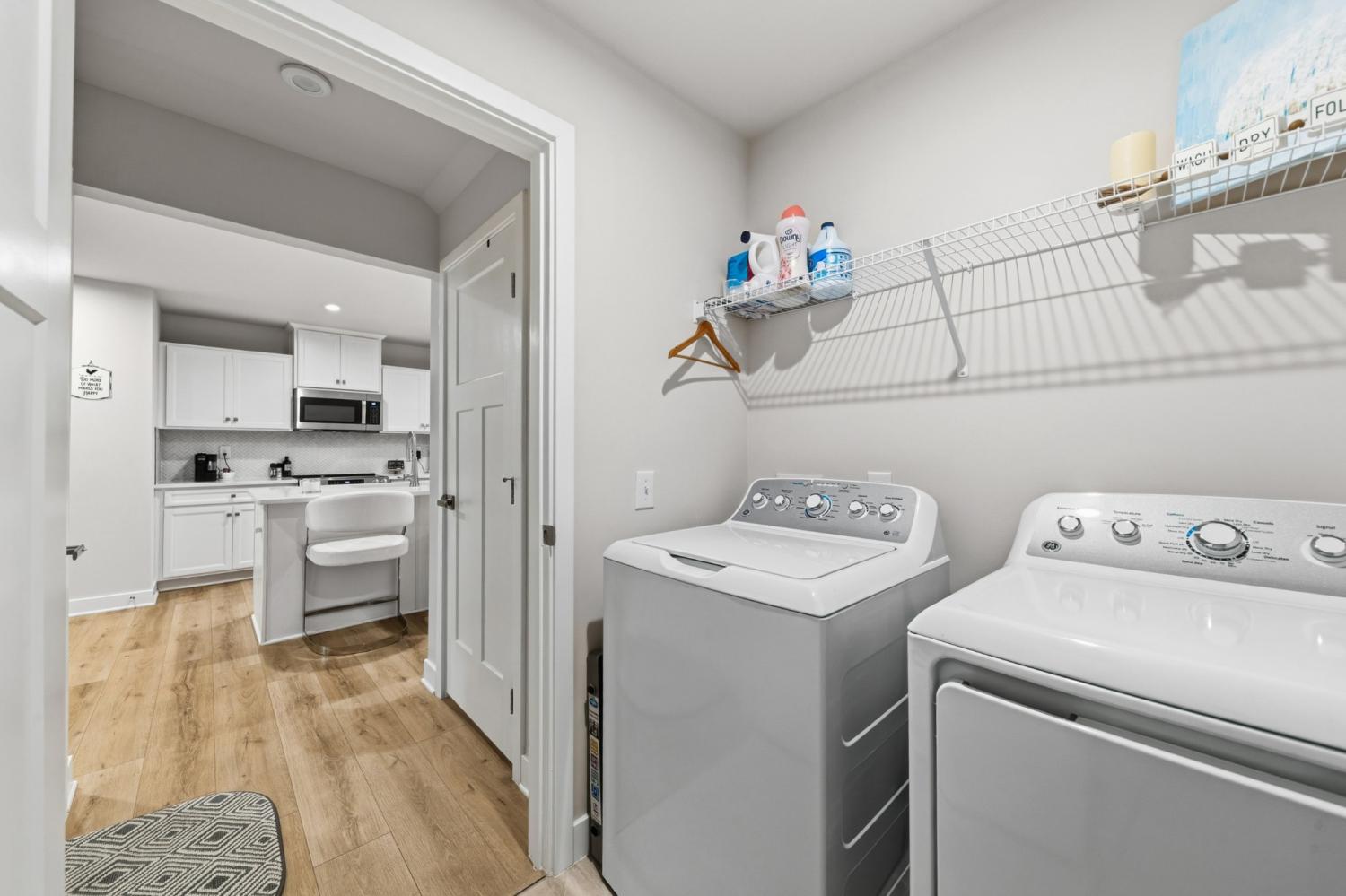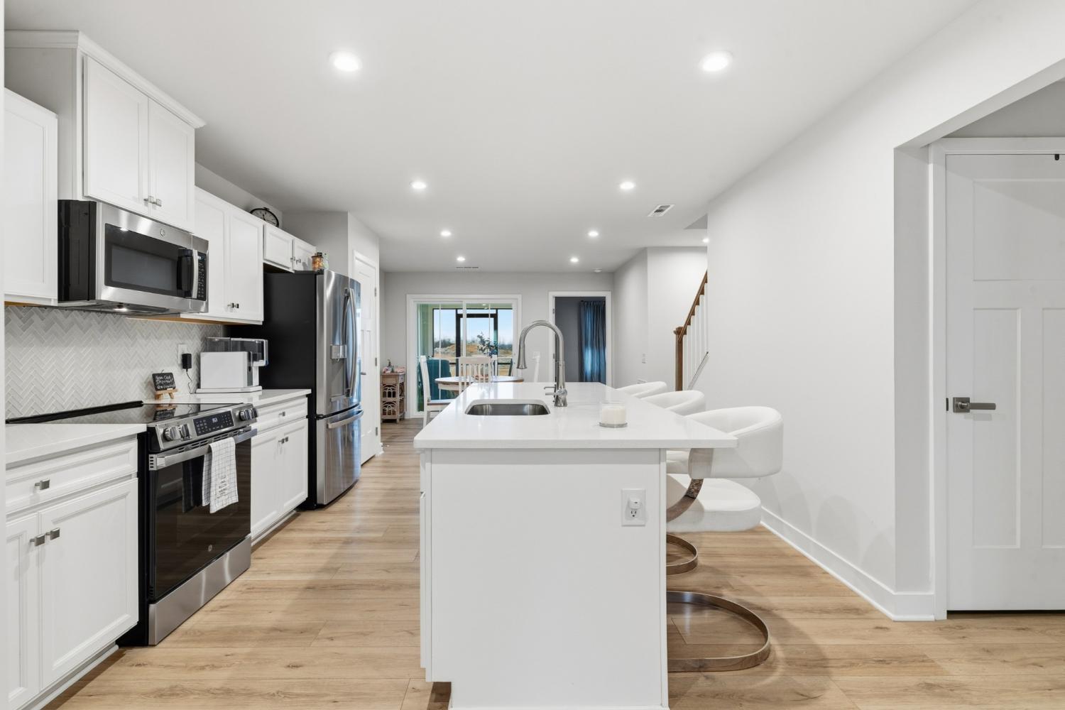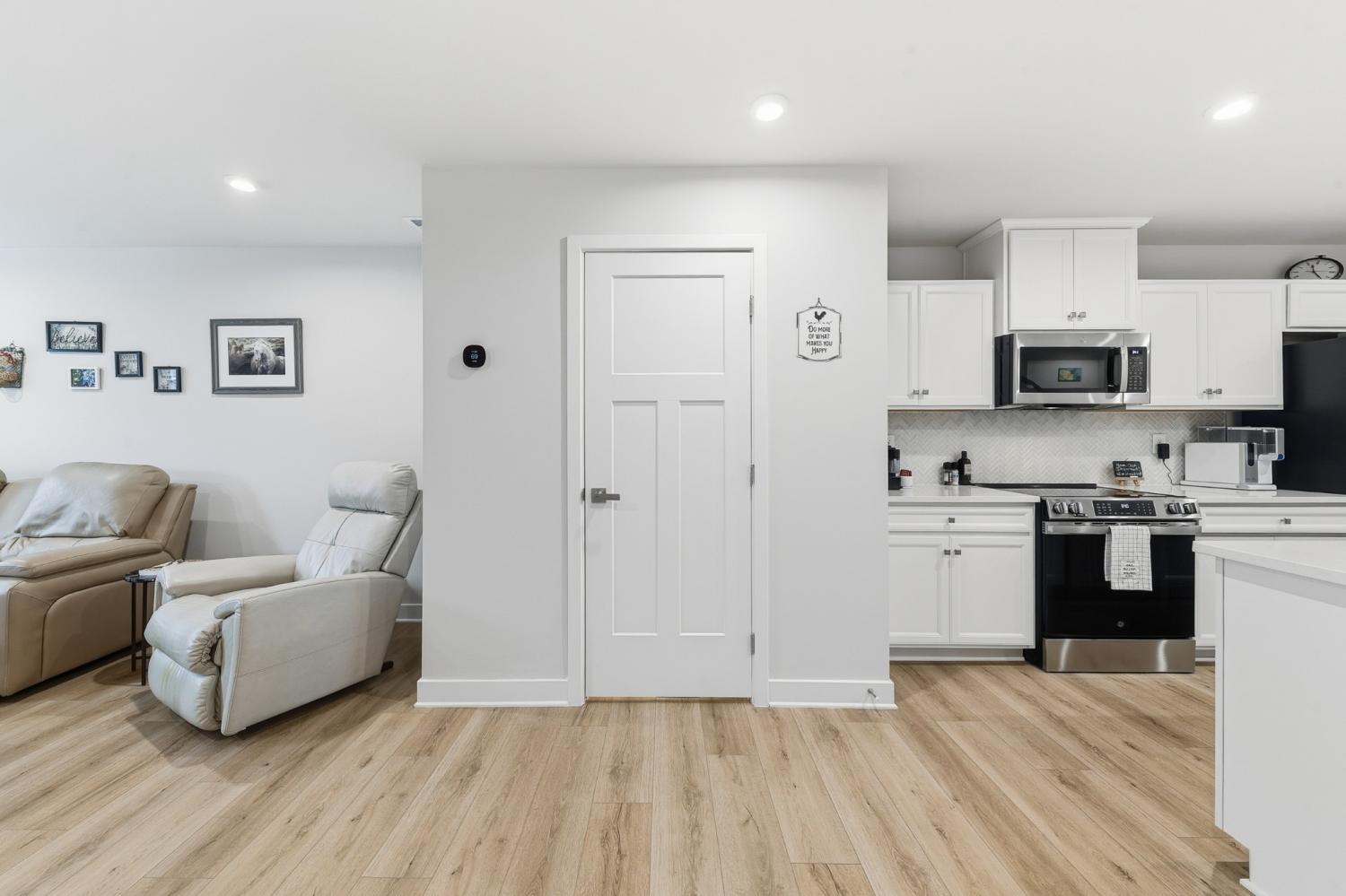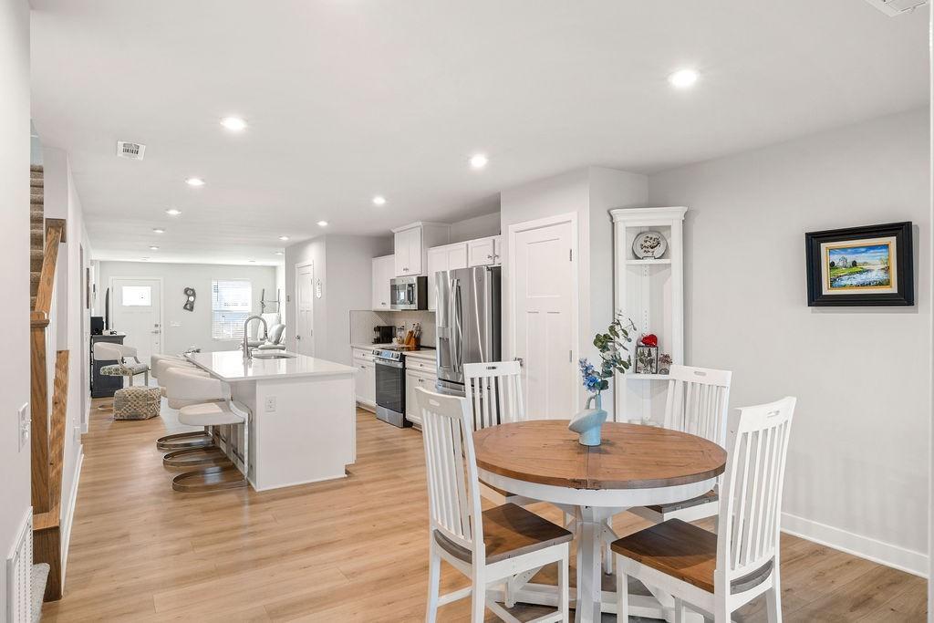 Welcome home to easy living in this beautifully designed townhome featuring a bright, open floor plan that makes everyday life and entertaining effortless. The main living area flows seamlessly into the kitchen, where you’ll find granite countertops, recessed lighting, ample cabinetry, and a pantry for extra storage. The layout feels open yet functional perfect for gathering with family or hosting friends. With your primary bedroom, full bath with double vanity and walk in closet and laundry ALL conveniently located on the main level life is good! Just off the living space, enjoy your covered, screened-in back porch a private spot to relax with your morning coffee or unwind in the evenings.. Also on the main level is a one-car garage, providing both convenience and additional storage. Upstairs, you’ll find two generously sized bedrooms and a full bathroom, offering flexibility for guests, a home office, or additional living space. Luxury vinyl plank flooring adds durability and style. This townhome offers low-maintenance living without sacrificing comfort or functionality — a smart choice for anyone looking for convenience and modern finishes in one beautiful package.
