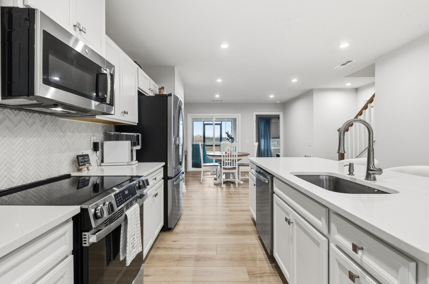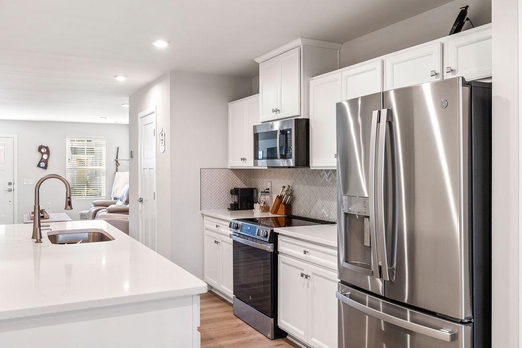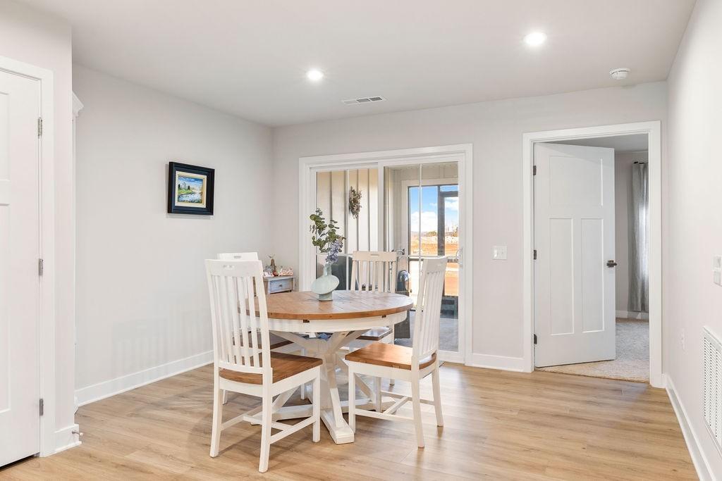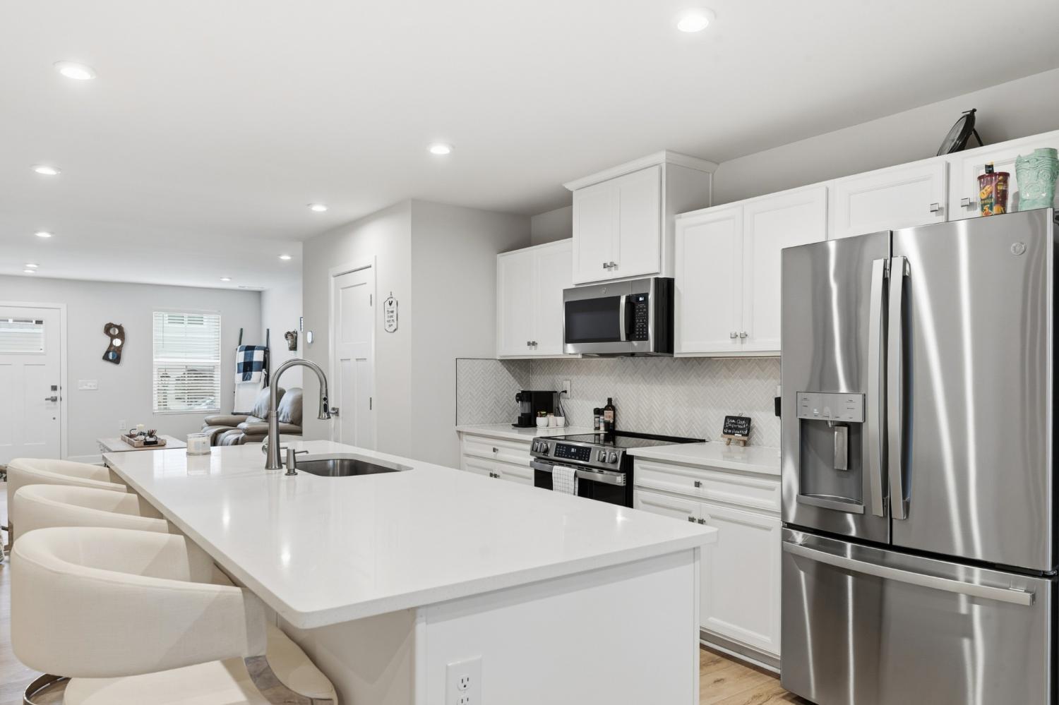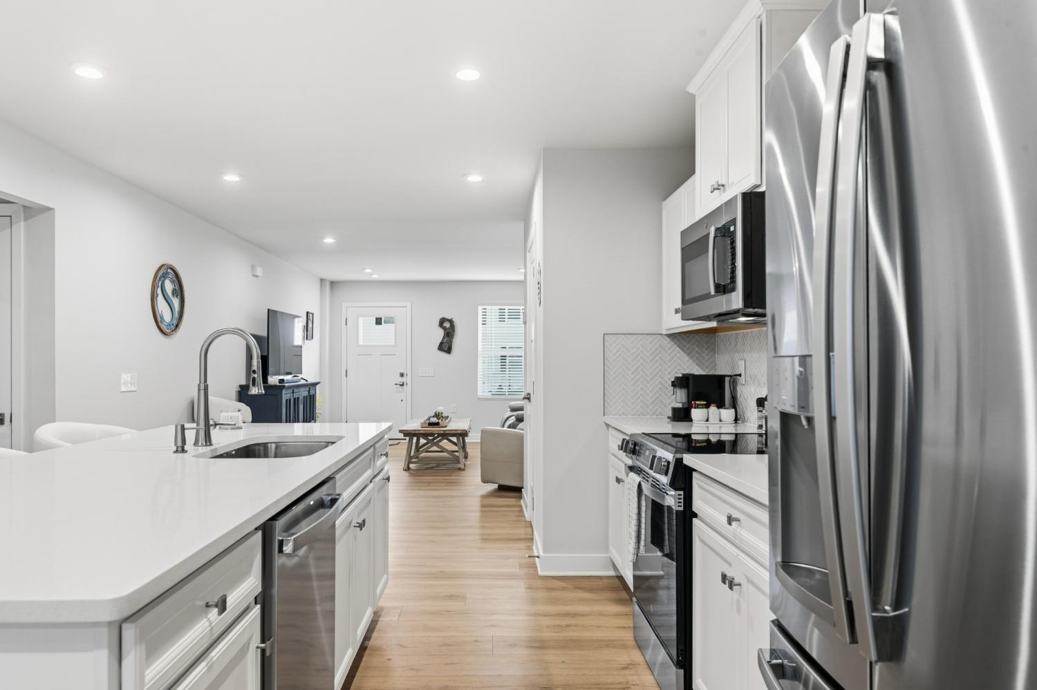 Welcome home to easy living in this beautifully designed townhome featuring a bright, open floor plan that makes everyday life and entertaining effortless. The main living area flows seamlessly into the kitchen, where you’ll find granite countertops, recessed lighting, ample cabinetry, and a pantry for extra storage. The layout feels open yet functional perfect for gathering with family or hosting friends. With your primary bedroom, full bath with double vanity and walk in closet and laundry ALL conveniently located on the main level life is good! Just off the living space, enjoy your covered, screened-in back porch a private spot to relax with your morning coffee or unwind in the evenings.. Also on the main level is a one-car garage, providing both convenience and additional storage. Upstairs, you’ll find two generously sized bedrooms and a full bathroom, offering flexibility for guests, a home office, or additional living space. Luxury vinyl plank flooring adds durability and style. This townhome offers low-maintenance living without sacrificing comfort or functionality — a smart choice for anyone looking for convenience and modern finishes in one beautiful package.