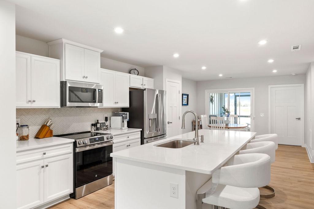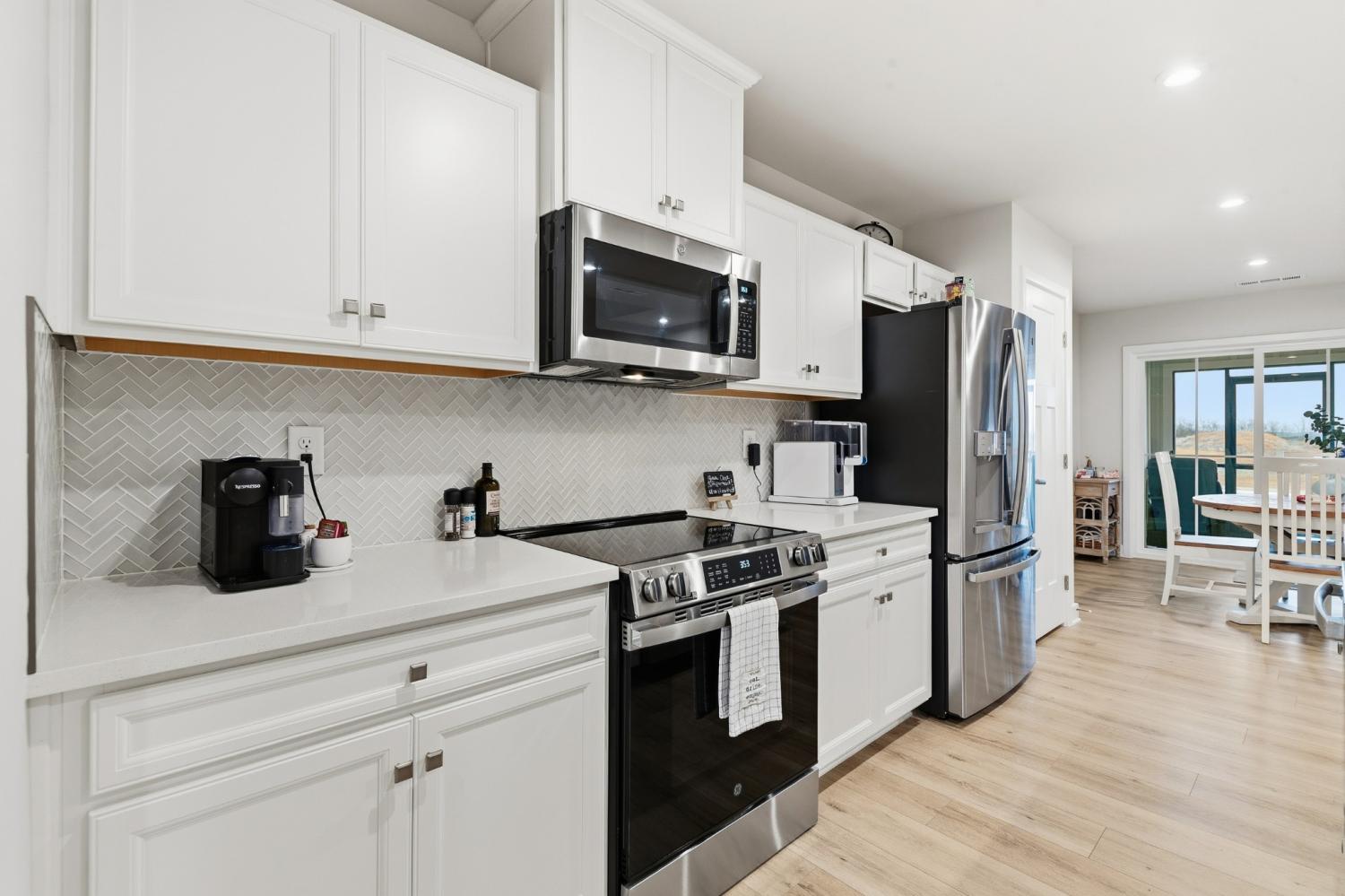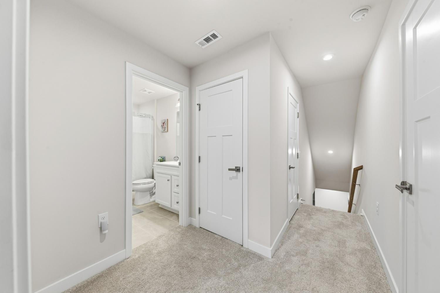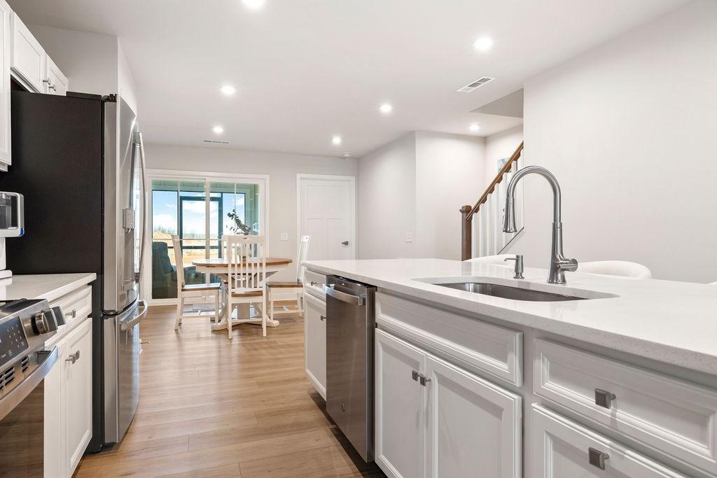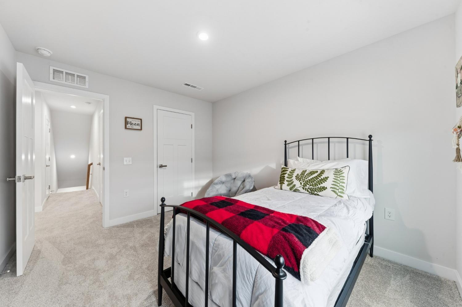Welcome home to easy living in this beautifully designed townhome featuring a bright, open floor plan that makes everyday life and entertaining effortless. The main living area flows seamlessly into the kitchen, where you’ll find granite countertops, recessed lighting, ample cabinetry, and a pantry for extra storage. The layout feels open yet functional perfect for gathering with family or hosting friends. With your primary bedroom, full bath with double vanity and walk in closet and laundry ALL conveniently located on the main level life is good! Just off the living space, enjoy your covered, screened-in back porch a private spot to relax with your morning coffee or unwind in the evenings.. Also on the main level is a one-car garage, providing both convenience and additional storage. Upstairs, you’ll find two generously sized bedrooms and a full bathroom, offering flexibility for guests, a home office, or additional living space. Luxury vinyl plank flooring adds durability and style. This townhome offers low-maintenance living without sacrificing comfort or functionality — a smart choice for anyone looking for convenience and modern finishes in one beautiful package.