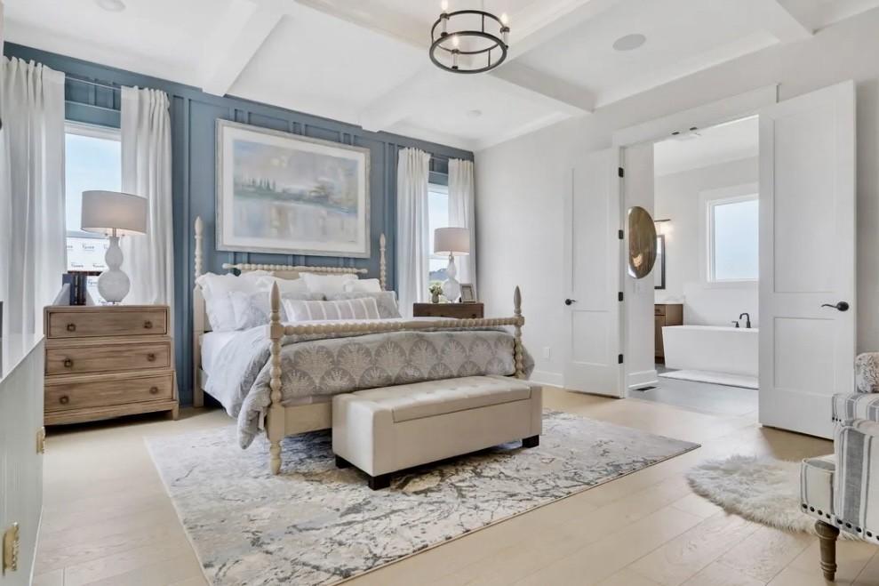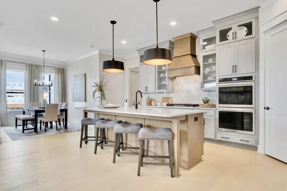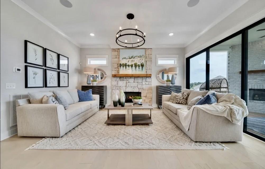 MODEL HOME FOR SALE! Enjoy the over 1/2 acre home site with full irrigation in front and back. Professionally landscaped and lit at night. Sonos sound system, video cameras, and security system. 3 car garage, can keep separate 3rd car as a shop or office. It is heated and cooled but not shown in the square footage listed. Stone fireplace inside and brick fireplace outside on the covered patio. 3 panel glass slider door leads to the patio. White facade and black windows, soffit and gutters. Upgraded lighting and cabinets to the top of the 10 ft ceilings, crown molding, coffered primary BR ceiling, teen or in-law suite upstairs with private bath. Large freestanding tub in primary, upgraded tile, upgraded trim throughout and multiple trim wall accents. Drapes and blinds remain, furniture is negotiable. Leaseback available and is based on our new model home being ready to move into.