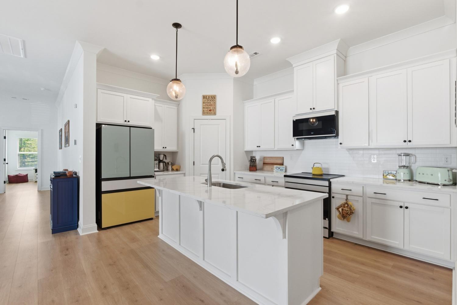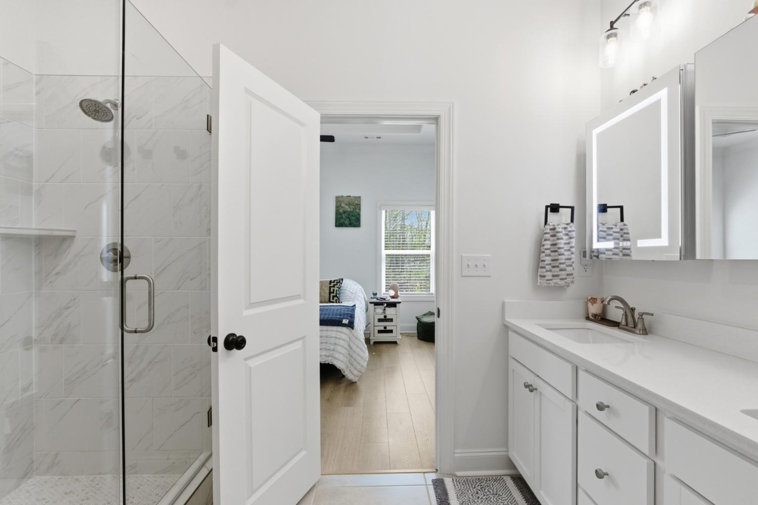 Better than new and fully dialed in, 3072 Wiltshire is where thoughtful design, modern comfort, & effortless living come together. Tucked within the cul-de-sac of the boutique Wiltshire Park community, this 2024 build has been elevated beyond what you’ll find in new construction. From the finished two-car garage with paneled glass doors to the alluring double door entry - the attention to detail is undeniable. Inside, a dramatic two-story foyer opens to a light-filled, open-concept layout designed for both everyday living & effortless entertaining. Wide plank LVP flooring, 10’ ceilings, and crown moulding create a clean, curated feel throughout. Two main-level bedrooms offer flexibility for guests or a home office without sacrificing flow. The kitchen is the true centerpiece - equal parts functional and striking: white shaker cabinetry, quartz countertops, upgraded Bespoke appliances, & an oversized island that naturally draws people in. It opens seamlessly to the expansive living area, where a shiplapped gas fireplace adds warmth and a refined focal point. Privately positioned at the rear of the home, the primary suite is a true retreat. Trey ceilings add dimension, while the spa-like ensuite features a large tiled shower with frameless glass, dual vanities with LED mirrors, & a walk-in closet designed for two. Just beyond, the covered, east-facing patio with fully automated screens creates a space that lives beautifully from morning coffee to late-night unwinding. Upstairs, hardwood stairs lead to a spacious bonus room, a private guest suite with full bath, & two walk-in attic spaces offering exceptional storage. From the integrated smart home features to the HOA-maintained lawn care, landscaping, and irrigation, you get effortless, low-maintenance living without sacrificing outdoor space. Located just minutes from I-40 and Percy Priest Lake, this home offers a rare balance of privacy, accessibility, and enriched everyday living.