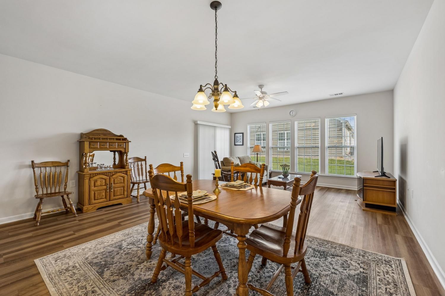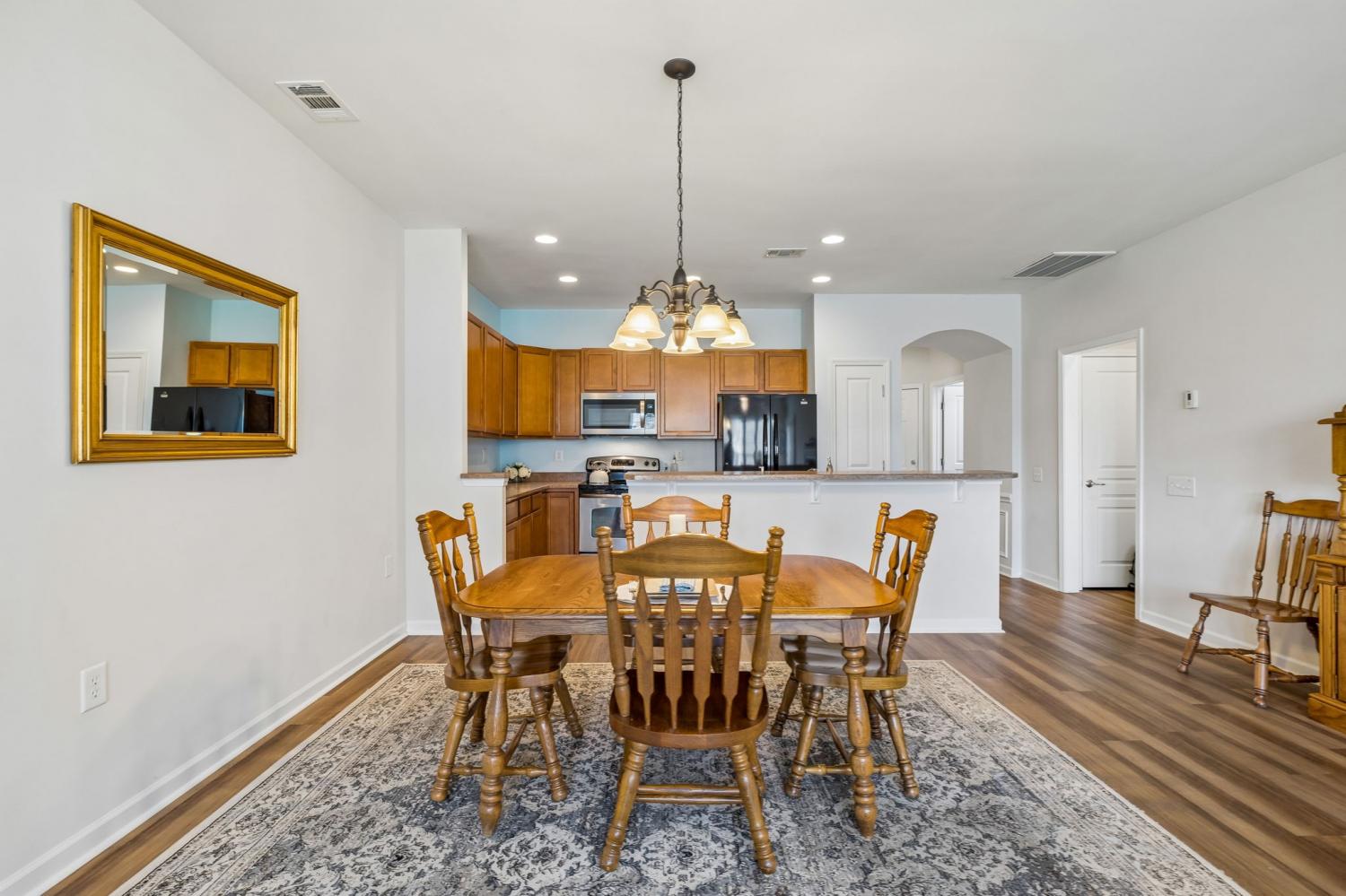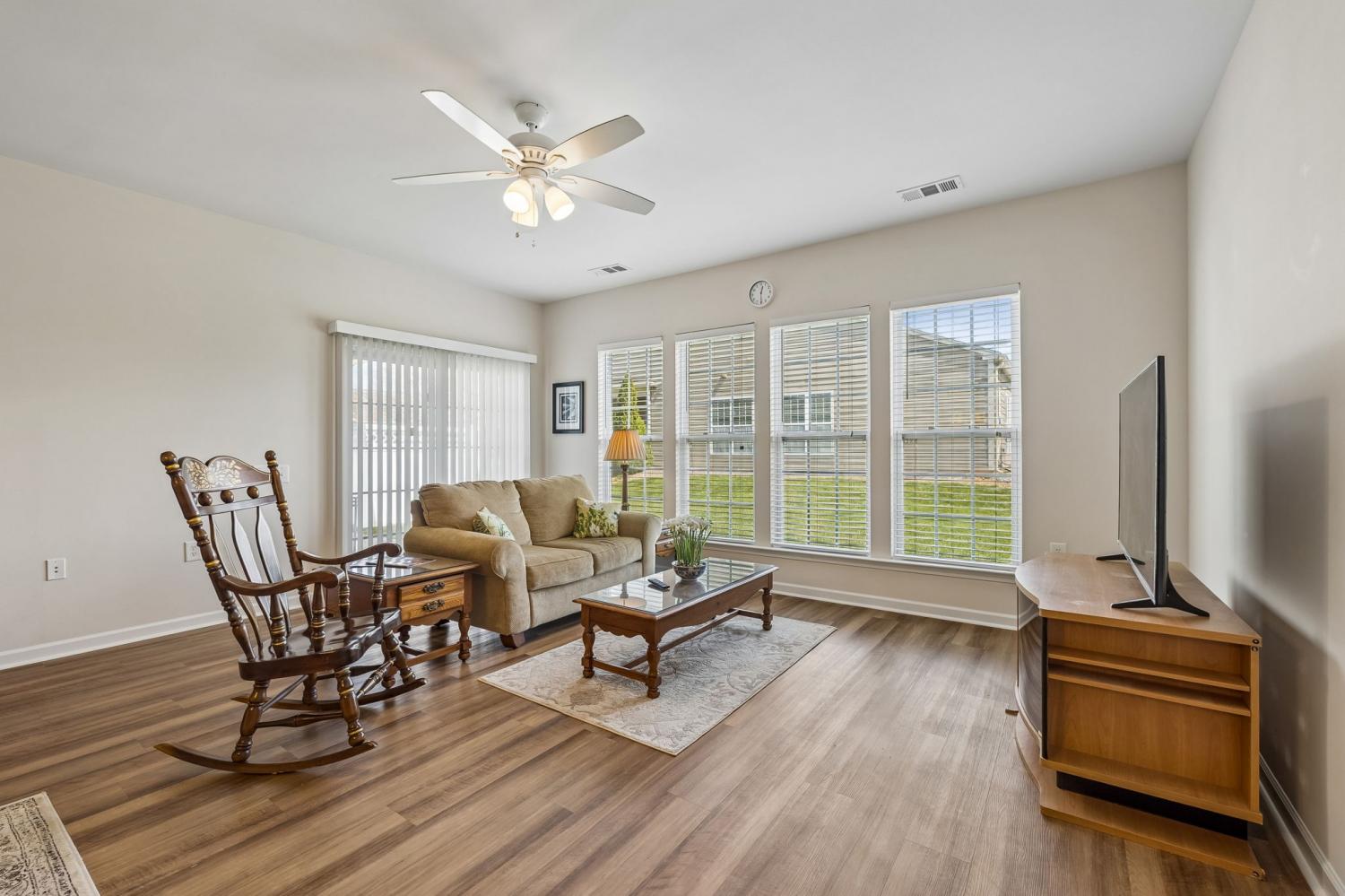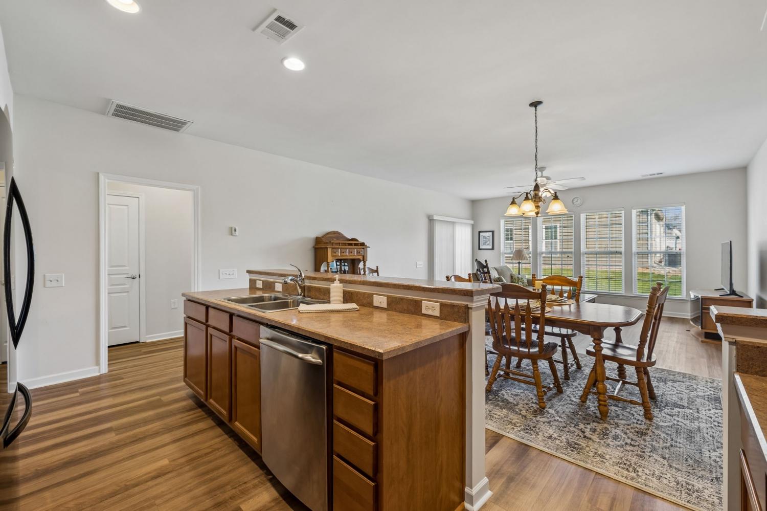 Welcome to easy, maintenance-free living in the highly sought-after Del Webb Lake Providence 55+ community! This lovely 2 bedroom, 2 bathroom villa offers true low-maintenance convenience, with the HOA covering the exterior of the building—making it one of the easiest living options in the neighborhood.Inside, you’ll find durable and stylish LVP flooring throughout the main living areas, creating a warm and cohesive feel. The spacious kitchen features a large island, perfect for entertaining or casual dining, and flows seamlessly into the open living and dining spaces. The Lakeshore floorplan also includes a walk-in laundry room, adding everyday functionality and storage.The primary suite offers comfort and ease, highlighted by a walk-in shower with a cultured marble surround—designed for both style and easy maintenance. A second bedroom and full bath provide flexibility for guests or a home office.Step outside to your covered patio, ideal for relaxing with your morning coffee or enjoying quiet evenings. Plus, you’re just a short walk to the community’s scenic lake, stocked with bass—perfect for fishing or simply enjoying the peaceful setting.Del Webb Lake Providence is known for its resort-style amenities, including a state-of-the-art fitness center, indoor and outdoor pools, hot tubs, walking trails, and a full-time lifestyle director coordinating clubs, events, and activities year-round.If you’ve been searching for a lock-and-leave lifestyle without sacrificing comfort or community, this is the one!