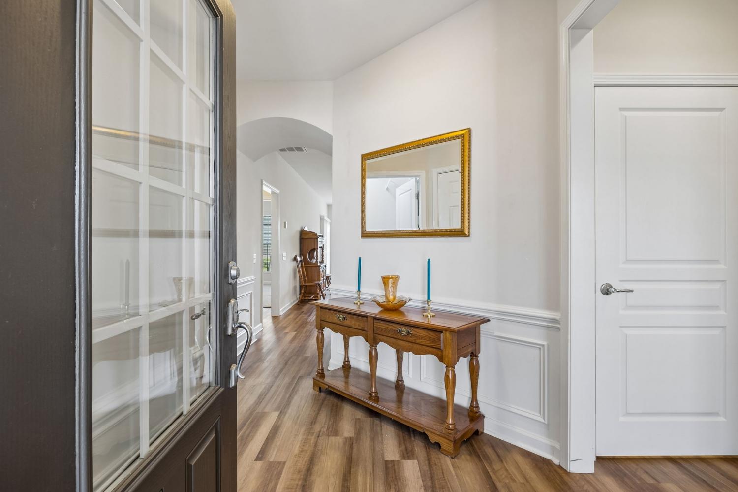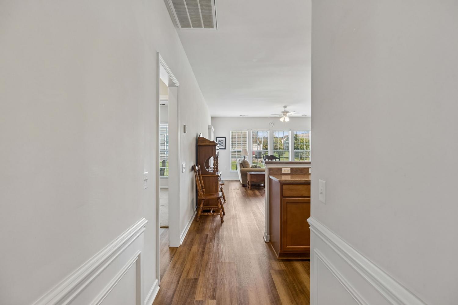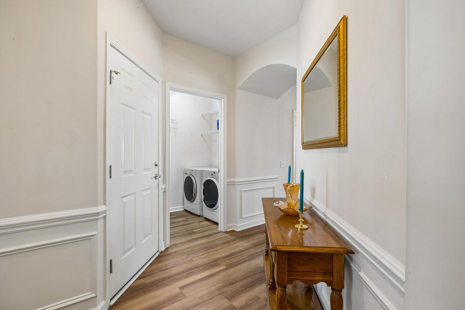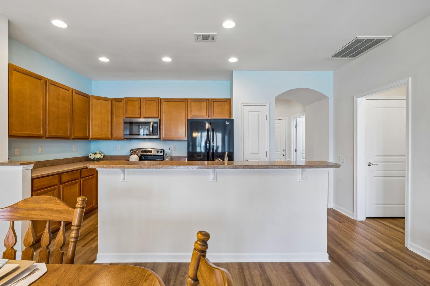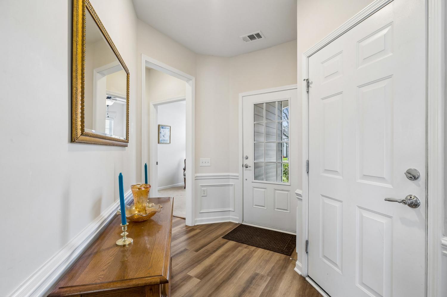 Welcome to easy, maintenance-free living in the highly sought-after Del Webb Lake Providence 55+ community! This lovely 2 bedroom, 2 bathroom villa offers true low-maintenance convenience, with the HOA covering the exterior of the building—making it one of the easiest living options in the neighborhood.Inside, you’ll find durable and stylish LVP flooring throughout the main living areas, creating a warm and cohesive feel. The spacious kitchen features a large island, perfect for entertaining or casual dining, and flows seamlessly into the open living and dining spaces. The Lakeshore floorplan also includes a walk-in laundry room, adding everyday functionality and storage.The primary suite offers comfort and ease, highlighted by a walk-in shower with a cultured marble surround—designed for both style and easy maintenance. A second bedroom and full bath provide flexibility for guests or a home office.Step outside to your covered patio, ideal for relaxing with your morning coffee or enjoying quiet evenings. Plus, you’re just a short walk to the community’s scenic lake, stocked with bass—perfect for fishing or simply enjoying the peaceful setting.Del Webb Lake Providence is known for its resort-style amenities, including a state-of-the-art fitness center, indoor and outdoor pools, hot tubs, walking trails, and a full-time lifestyle director coordinating clubs, events, and activities year-round.If you’ve been searching for a lock-and-leave lifestyle without sacrificing comfort or community, this is the one!
