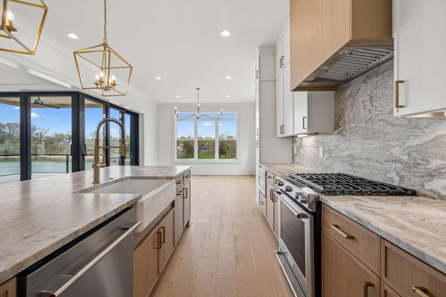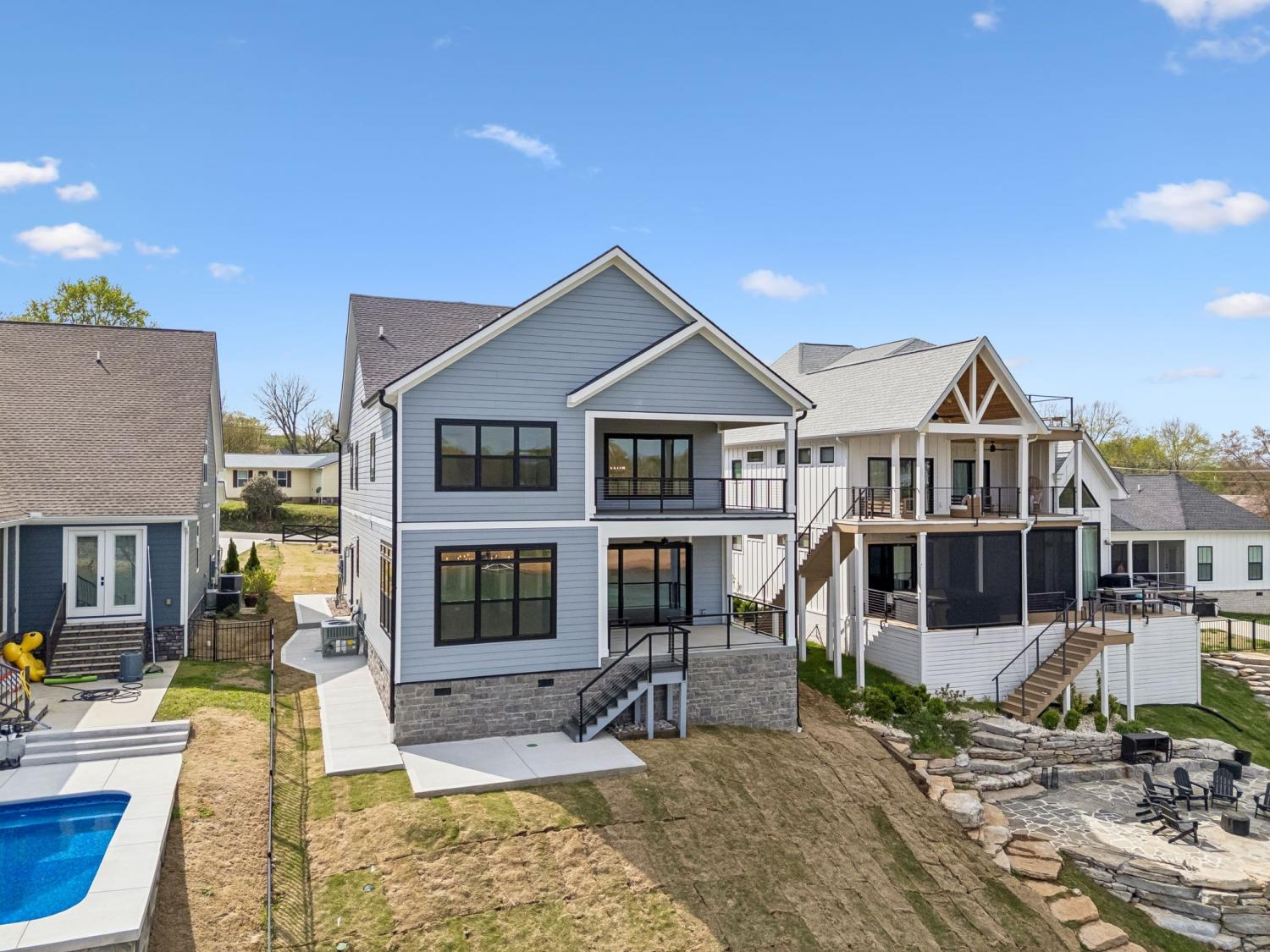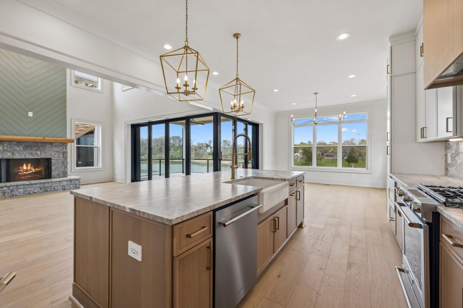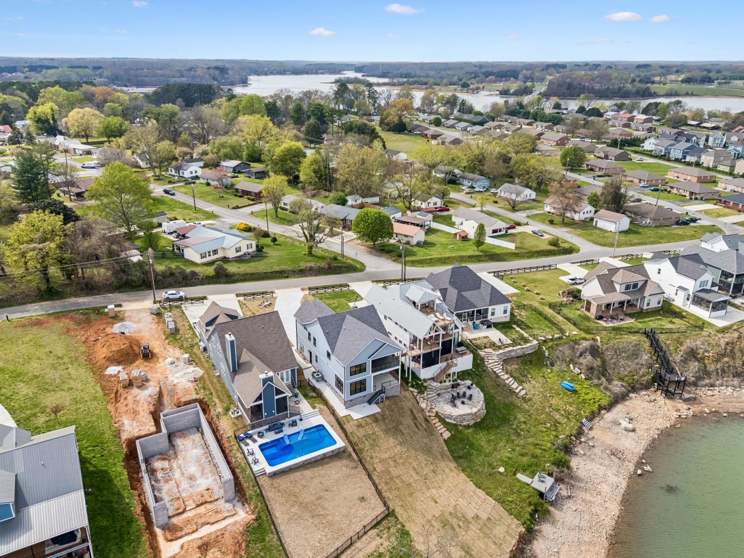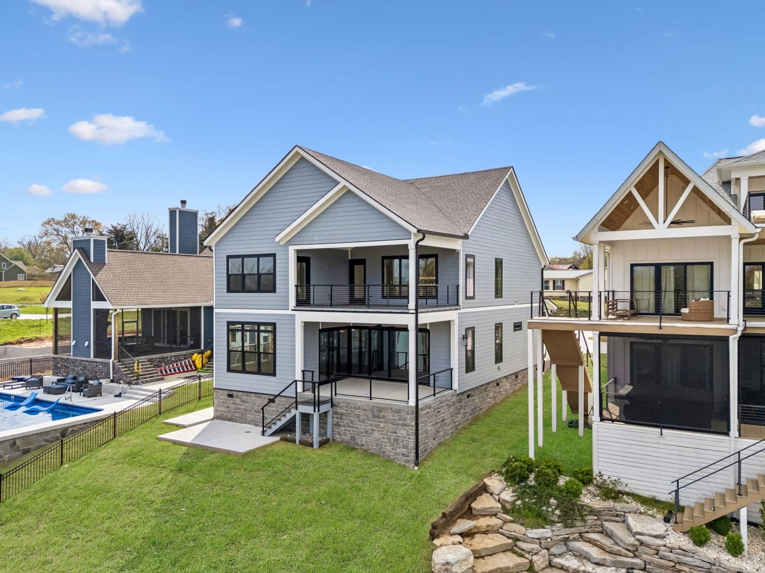 Welcome to 914 N Jefferson Street, a custom-built lakefront home in the desirable Barefoot Bay community on Tim’s Ford Lake. Located just 0.7 miles from the historic Winchester Square with dining, boutique shops, and cafés, and only 1.9 miles to Twin Creeks Marina & Resort, this property offers an ideal blend of convenience and lake living. Barefoot Bay features a lakeside community pool, and short-term rentals are allowed—perfect for a primary residence, vacation home, or investment opportunity. This home offers 2,714 sq ft with 4 bedrooms, 3 baths, plus a spacious bunk room featuring two custom full-over-full bunk sets—ideal for hosting guests. Enjoy 180-degree lake views and an oversized 1-car garage (12x25) with a 9’ insulated door and commercial-grade epoxy flooring, providing excellent space for boat or gear storage. The main level features 10’ ceilings, 8’ solid-core doors, and a dramatic 21’ vaulted family room with a floor-to-ceiling natural stone fireplace. Pocketing glass sliders open to a covered porch with stunning lake views. The kitchen includes custom Tiger cabinetry to the ceiling with soft-close doors and drawers, pull-out shelving, and KitchenAid Professional appliances. Wide-plank white oak hardwood flooring runs throughout. A spacious mudroom offers additional cabinetry, countertop workspace, washer/dryer, extra refrigerator, and custom drop zone. A main-level bedroom with attached bath adds flexibility. Upstairs includes the primary suite with spa-style bath and private covered balcony overlooking the lake, along with two additional bedrooms, a full bath, bunk room, and second laundry. Built above industry standards, the home features a fully core-filled foundation (4,000 PSI concrete) and a rear piling system driven to bedrock for enhanced stability. Exterior includes fiber cement siding and natural stone skirting. Rare opportunity to own a custom lake home in one of Tim’s Ford’s most sought-after communities. Schedule your showing today.