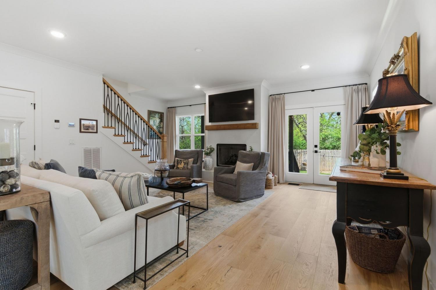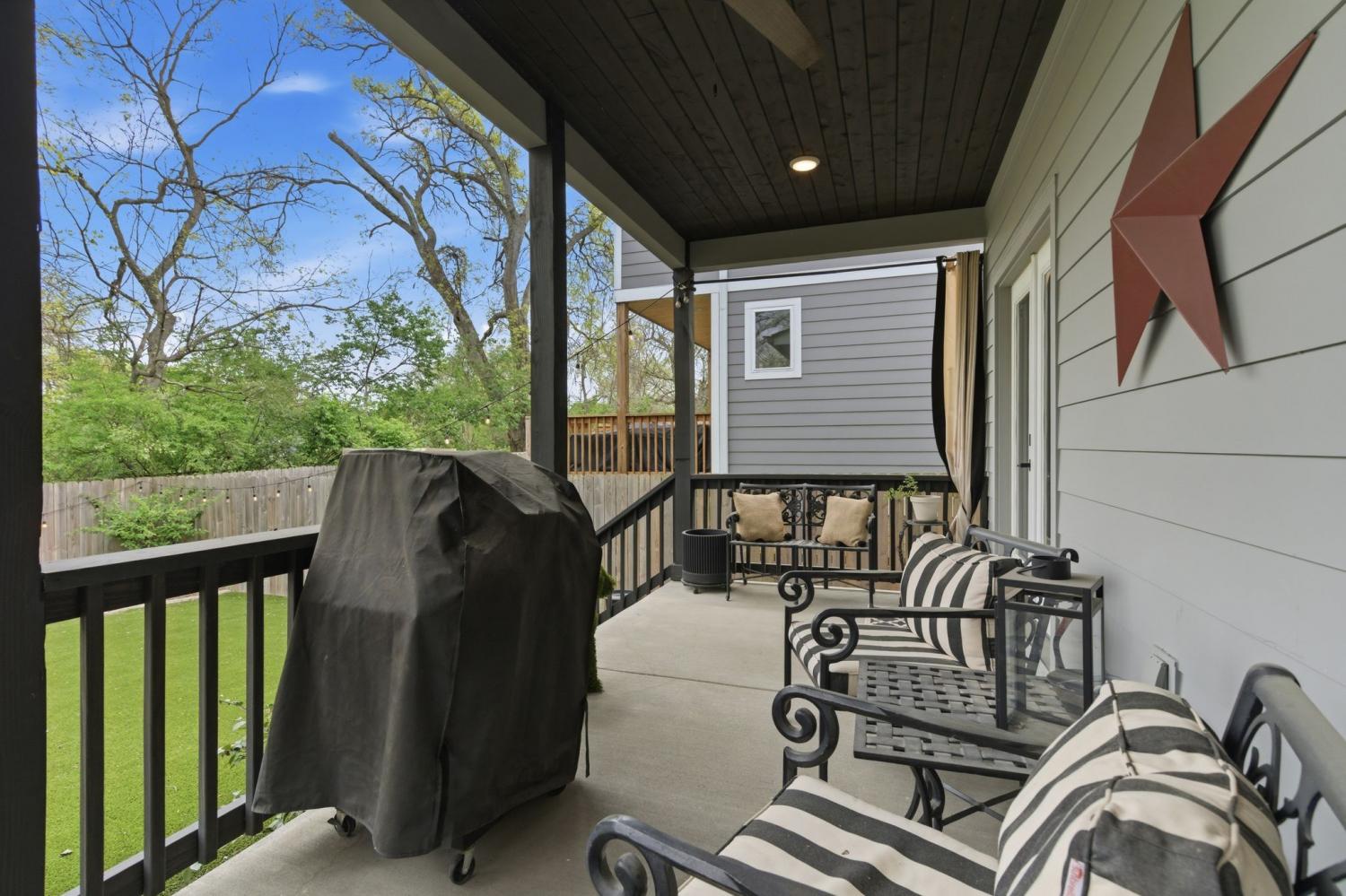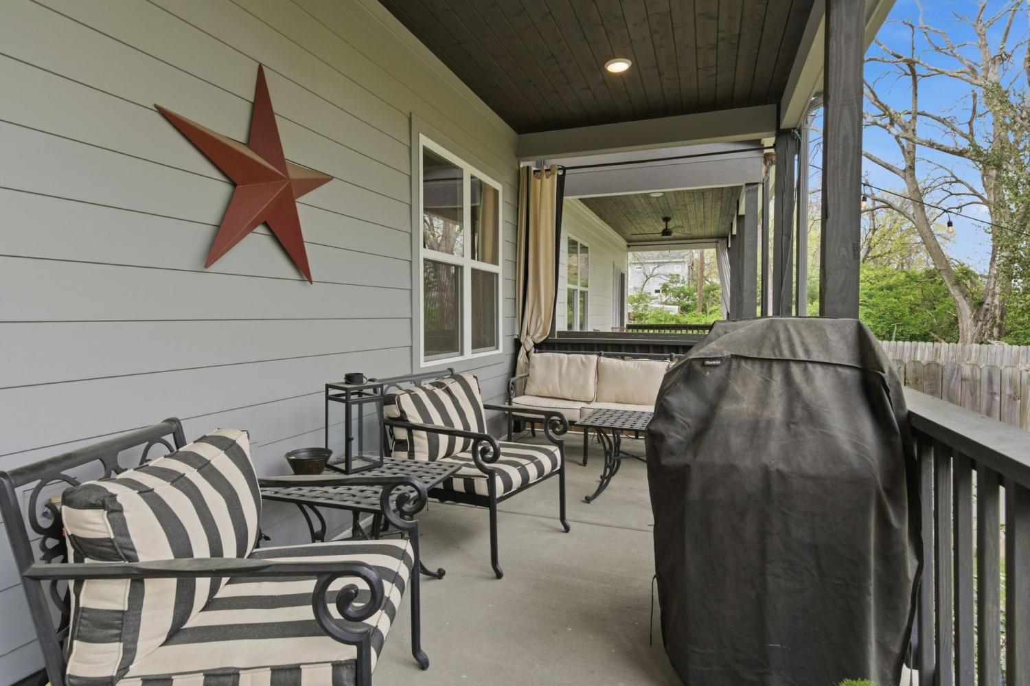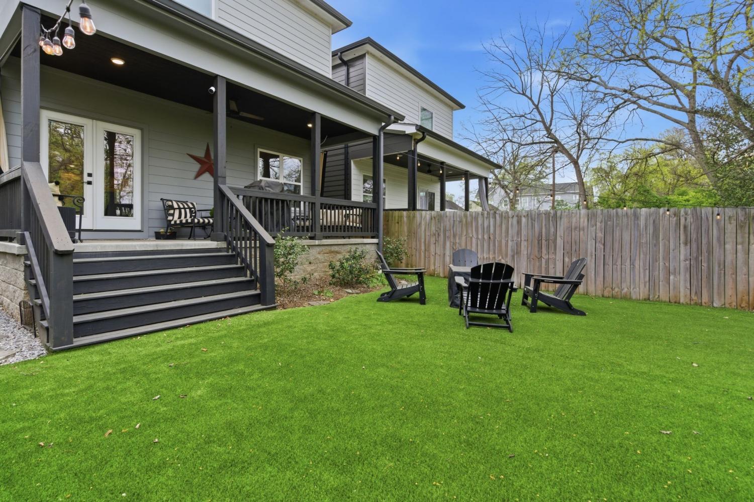 Charlotte Park Gem. This home offers an exceptional blend of sophistication and comfortable living, with elevated finishes typically found in multi-million-dollar West Nashville properties. Features include 7-inch-wide hardwood floors throughout (excluding bathrooms), extensive crown molding, and soaring 10-foot ceilings, commercial KitchenAid appliances (range is a smart range) and archistone range hood and fireplace. Upgraded plumbing fixtures. . The spacious primary suite showcases a beamed, vaulted ceiling and a luxurious en-suite bath filled with natural light, complete with a double vanity, oversized shower, and a generous walk-in closet. Two additional bedrooms share a thoughtfully designed layout with separate vanities and a shared bath area, providing both functionality and privacy. This versatile floor plan is complemented by tasteful window treatments throughout, including draperies, blinds, and plantation shutters. The desk and bookshelf unit in the third bedroom will convey with the sale. Enjoy outdoor living on the covered back porch overlooking a beautifully landscaped, fenced backyard featuring low-maintenance artificial turf—no mowing required and greenery year-round. The property backs directly to Charlotte Park, with a convenient park entrance just a few doors down the street. This powerful location places you within 5 minutes of shopping at Costco, Publix,Target, etc... approximately seven miles from downtown (15 minutes) and is approximately 13 minutes to Vanderbilt University. Whether you’re a first-time buyer, down-sizer, or investor, this move-in-ready home offers exceptional value, lifestyle, and convenience in one of Nashville’s most desirable areas.