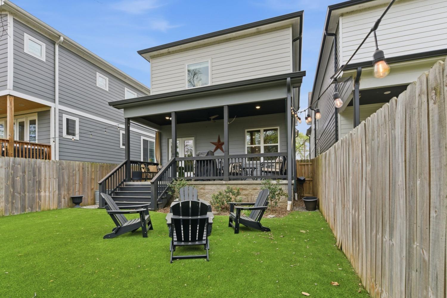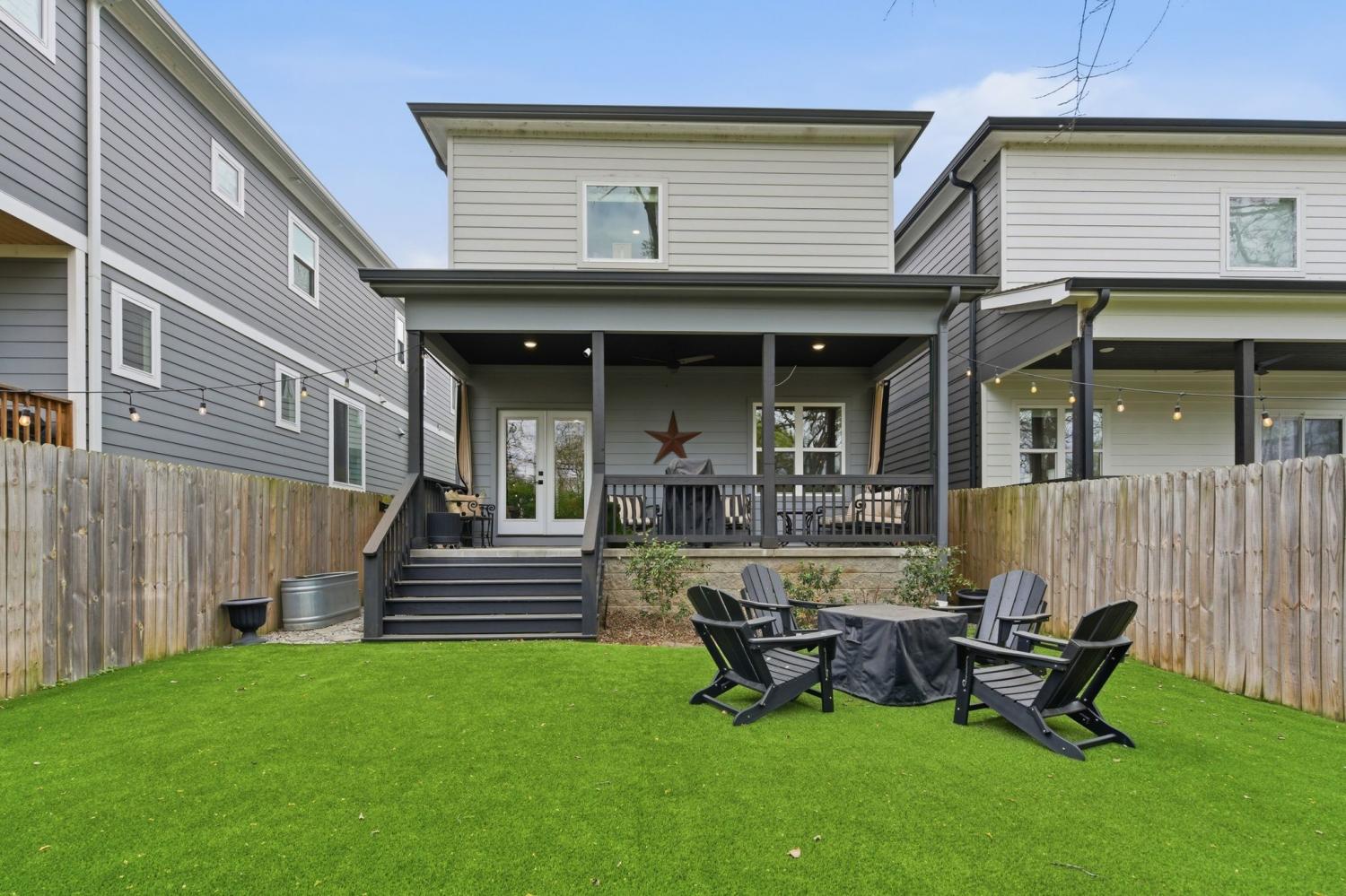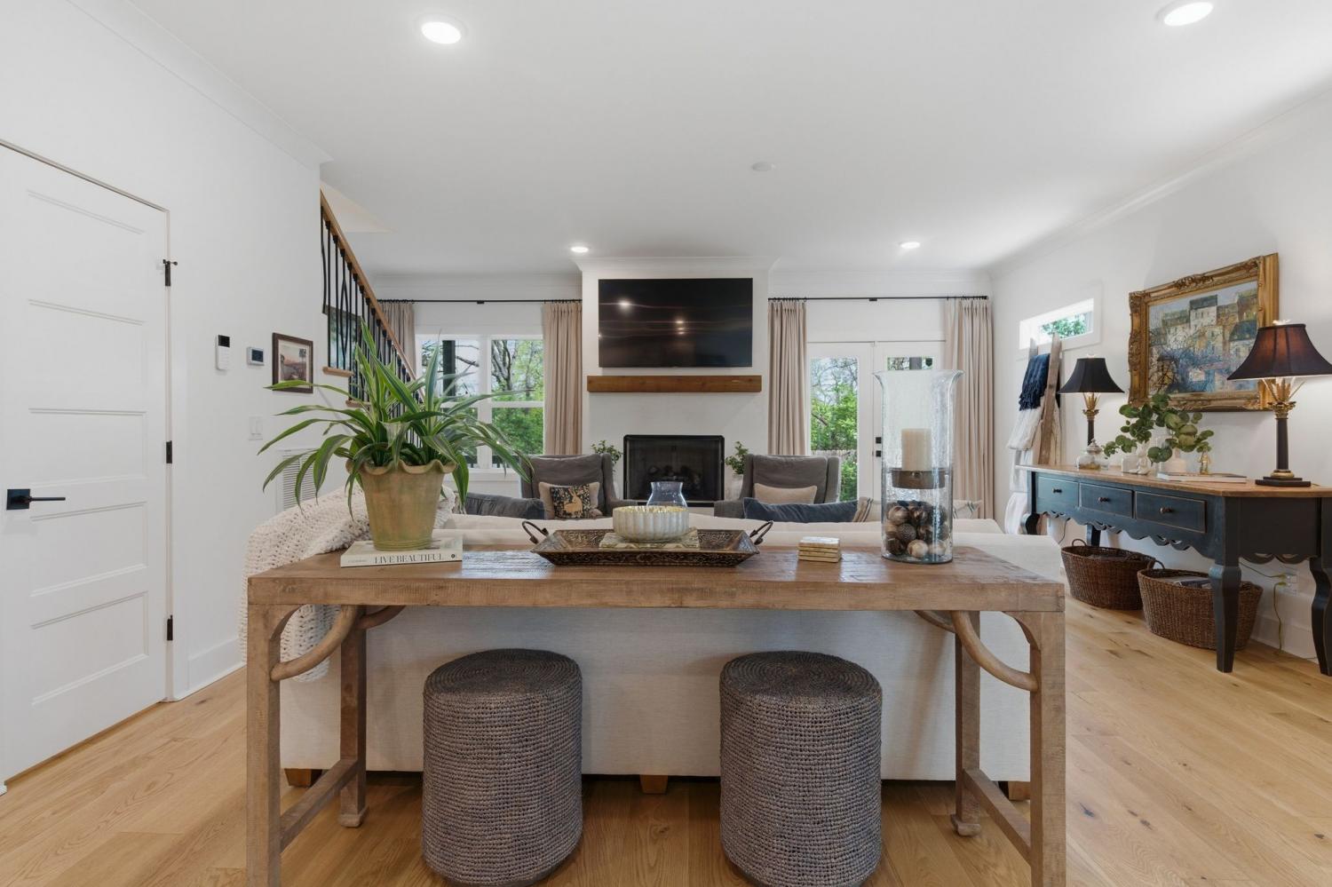 Charlotte Park Gem. This home offers an exceptional blend of sophistication and comfortable living, with elevated finishes typically found in multi-million-dollar West Nashville properties. Features include 7-inch-wide hardwood floors throughout (excluding bathrooms), extensive crown molding, and soaring 10-foot ceilings, commercial KitchenAid appliances (range is a smart range) and archistone range hood and fireplace. Upgraded plumbing fixtures. . The spacious primary suite showcases a beamed, vaulted ceiling and a luxurious en-suite bath filled with natural light, complete with a double vanity, oversized shower, and a generous walk-in closet. Two additional bedrooms share a thoughtfully designed layout with separate vanities and a shared bath area, providing both functionality and privacy. This versatile floor plan is complemented by tasteful window treatments throughout, including draperies, blinds, and plantation shutters. The desk and bookshelf unit in the third bedroom will convey with the sale. Enjoy outdoor living on the covered back porch overlooking a beautifully landscaped, fenced backyard featuring low-maintenance artificial turf—no mowing required and greenery year-round. The property backs directly to Charlotte Park, with a convenient park entrance just a few doors down the street. This powerful location places you within 5 minutes of shopping at Costco, Publix,Target, etc... approximately seven miles from downtown (15 minutes) and is approximately 13 minutes to Vanderbilt University. Whether you’re a first-time buyer, down-sizer, or investor, this move-in-ready home offers exceptional value, lifestyle, and convenience in one of Nashville’s most desirable areas.