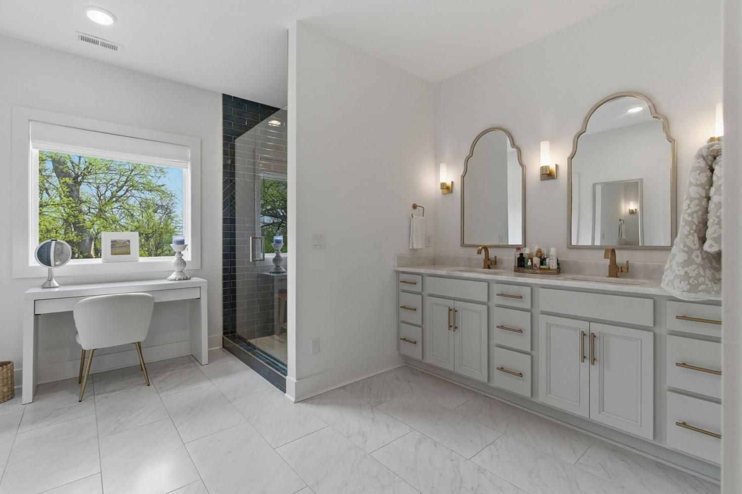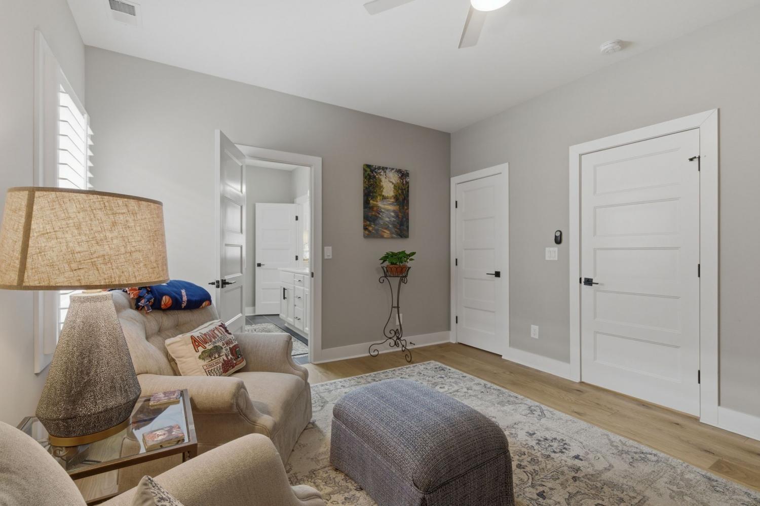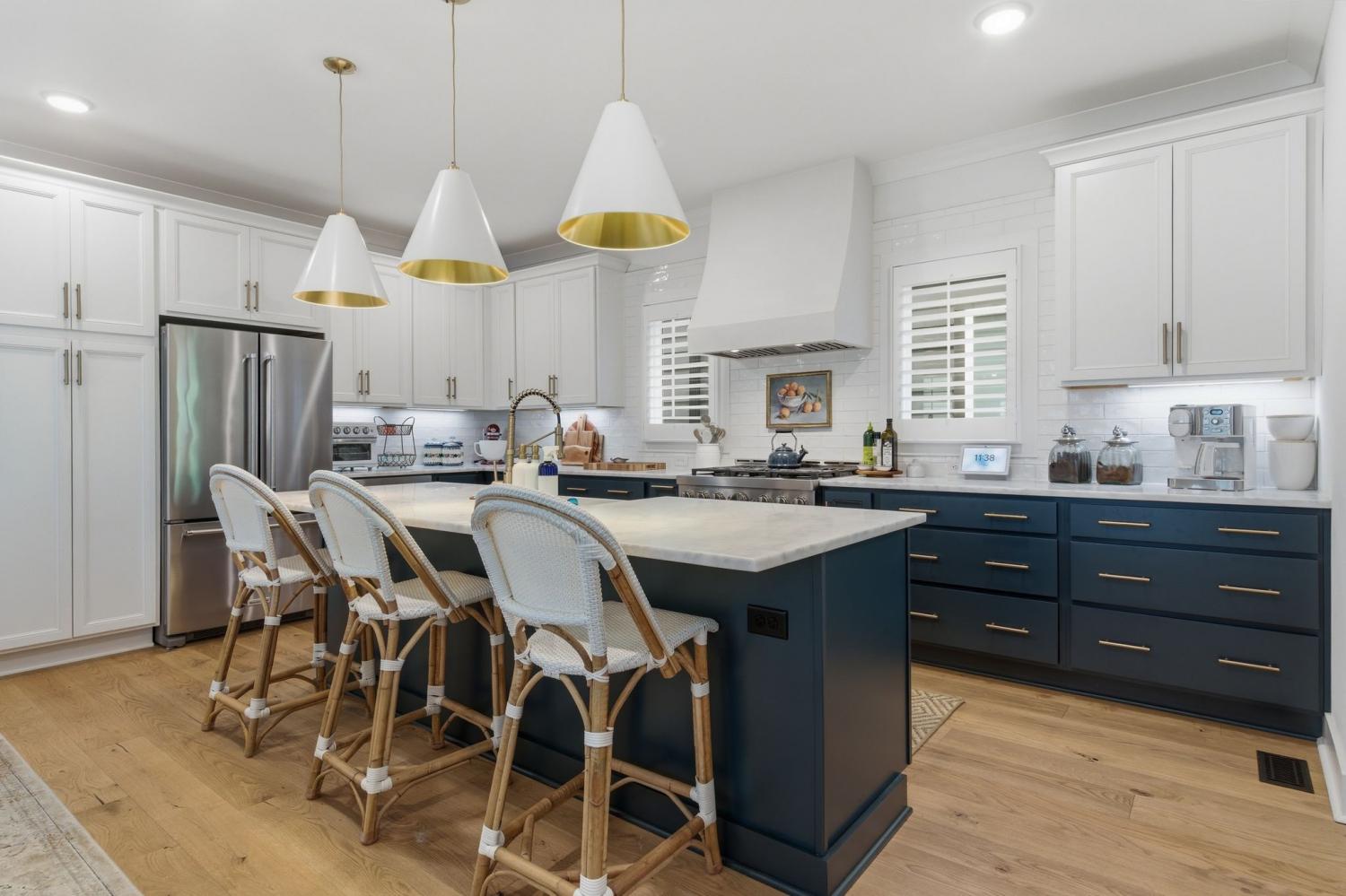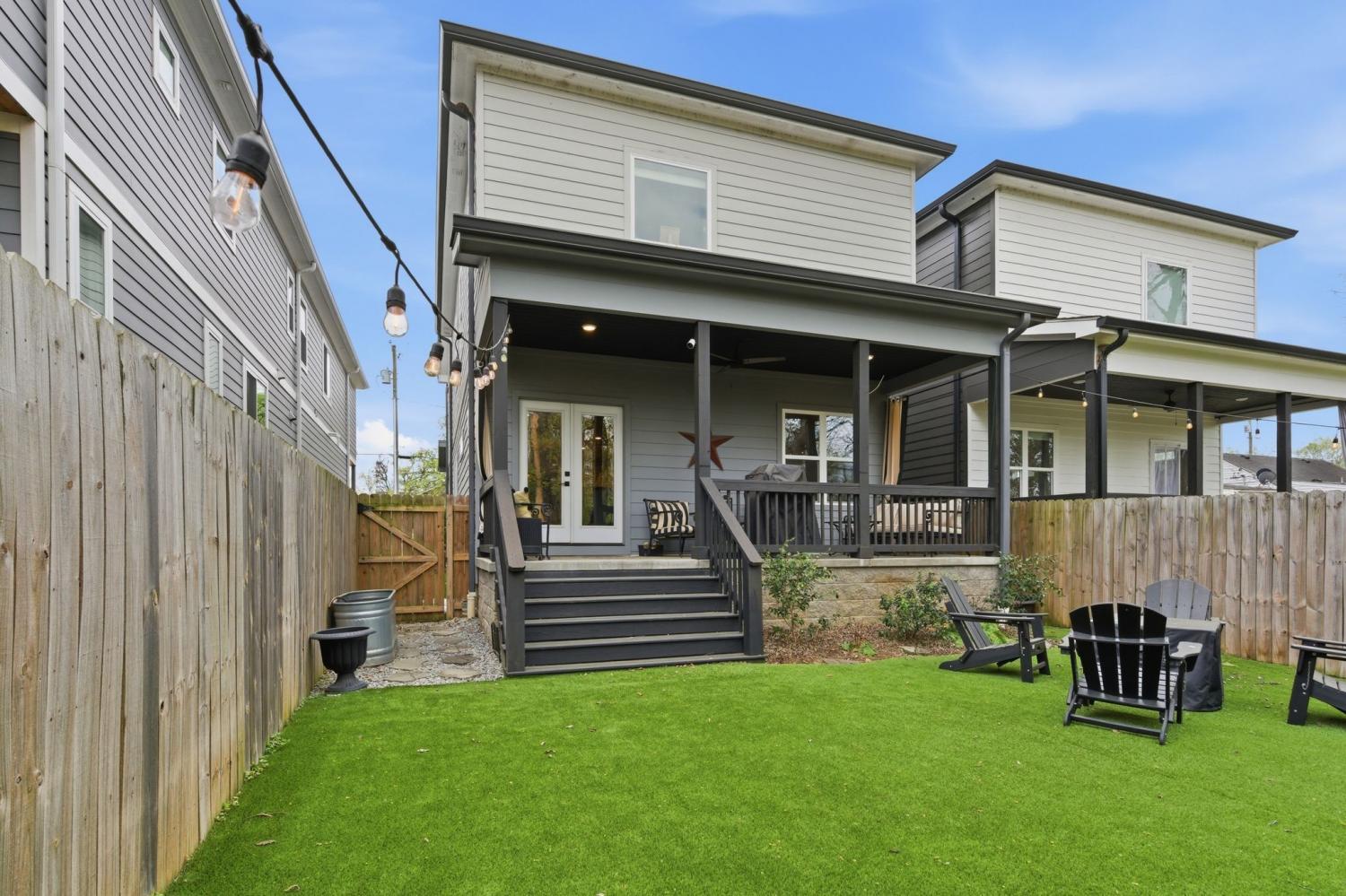 Charlotte Park Gem. This home offers an exceptional blend of sophistication and comfortable living, with elevated finishes typically found in multi-million-dollar West Nashville properties. Features include 7-inch-wide hardwood floors throughout (excluding bathrooms), extensive crown molding, and soaring 10-foot ceilings, commercial KitchenAid appliances (range is a smart range) and archistone range hood and fireplace. Upgraded plumbing fixtures. . The spacious primary suite showcases a beamed, vaulted ceiling and a luxurious en-suite bath filled with natural light, complete with a double vanity, oversized shower, and a generous walk-in closet. Two additional bedrooms share a thoughtfully designed layout with separate vanities and a shared bath area, providing both functionality and privacy. This versatile floor plan is complemented by tasteful window treatments throughout, including draperies, blinds, and plantation shutters. The desk and bookshelf unit in the third bedroom will convey with the sale. Enjoy outdoor living on the covered back porch overlooking a beautifully landscaped, fenced backyard featuring low-maintenance artificial turf—no mowing required and greenery year-round. The property backs directly to Charlotte Park, with a convenient park entrance just a few doors down the street. This powerful location places you within 5 minutes of shopping at Costco, Publix,Target, etc... approximately seven miles from downtown (15 minutes) and is approximately 13 minutes to Vanderbilt University. Whether you’re a first-time buyer, down-sizer, or investor, this move-in-ready home offers exceptional value, lifestyle, and convenience in one of Nashville’s most desirable areas.
