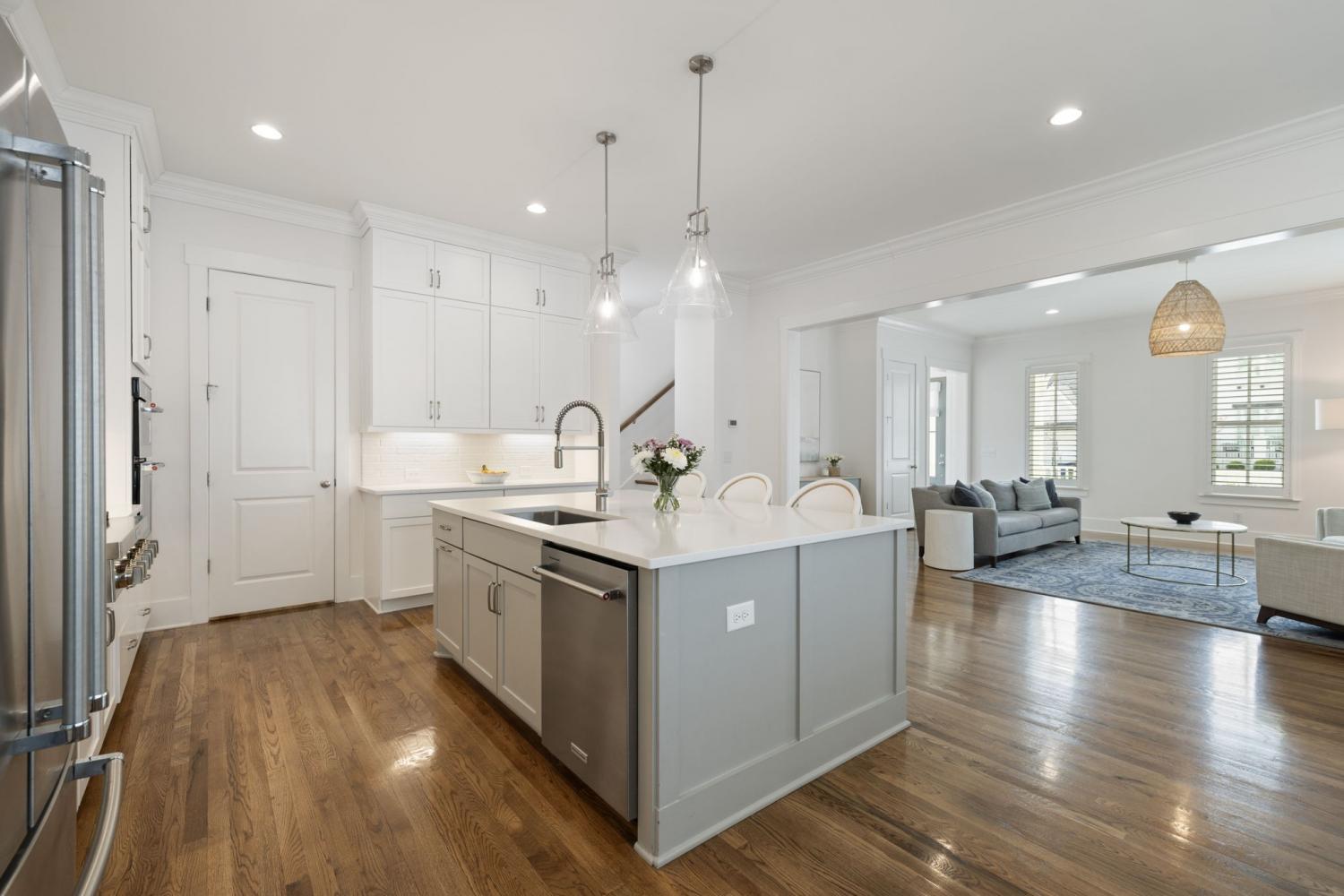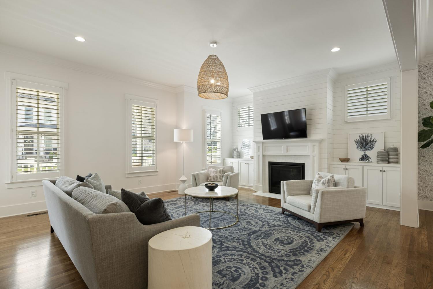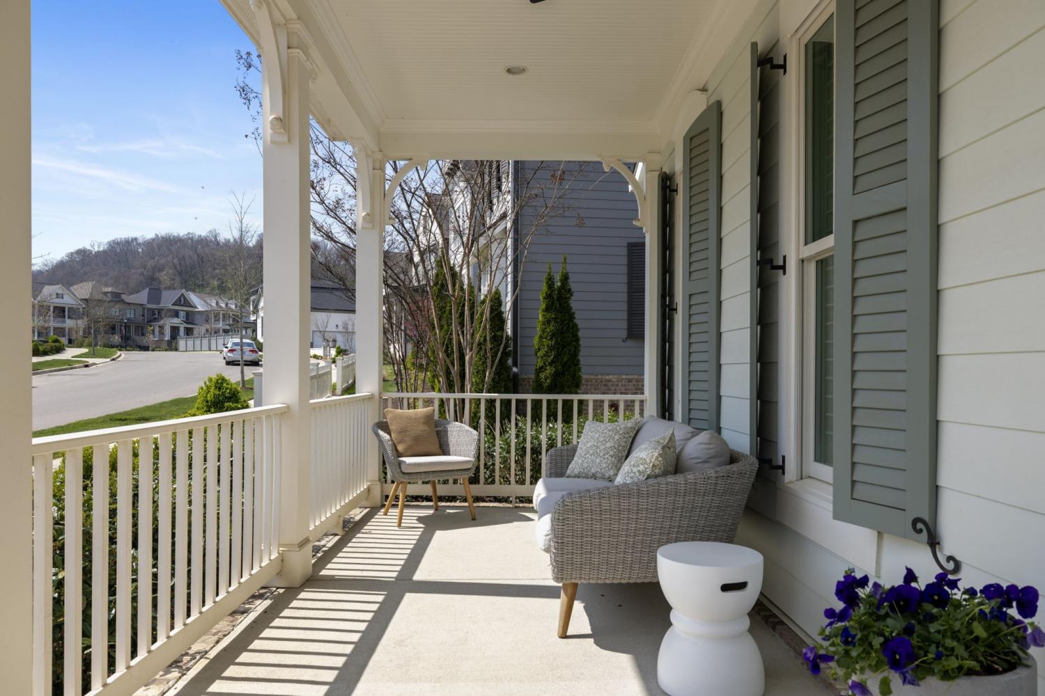 Welcome Home to this Timeless Westhaven Beauty! Watch both the sunrise and the sunset from the Double Story Covered Front Porch. Impeccable, clean and feels like a brand new home! Perfectly positioned on a charming side street, the oversized pie-shaped lot creates a larger courtyard to play or relax. The light, airy open floor plan is designed for both entertaining and everyday comfort. You will find Sand-and-finished hardwood floors throughout the home (only 2 upstairs bedrooms have carpet), shiplap accent walls, Plantation Shutters and built-ins flanking the fireplace. The Kitchen shines with quartz countertops, stacked-to-ceiling white cabinets, large walk-in pantry, and Stainless Steel KitchenAid appliances, including a 6 burner professional cooktop and refrigerator, which will remain with home. The Main Level Primary Suite offers hardwood floors and a spa-like bath with quartz vanities and huge walk-in shower with 3 shower heads...a rain, handheld and regular wall mounted! Every Bedroom features an En Suite Bath and walk in closet. Over the True 3 Car Garage, there is a Separate Entrance to a Private Guest/In-Law Suite/Home Office/Exercise Room + Living Room with Hardwood floors, full bath and walk in closet. The Laundry Room is a dream with built-in desk, sink and a ton of cabinets. The Dining Nook has a soft pop of color from Serena & Lily wallpaper overlooking the Courtyard, Kitchen and Family Room. Live an unmatched lifestyle with the convenience of Westhaven Town Center's Shopping, Dining and Grocery, sidewalks throughout, walking, biking and hiking trails, multiple fitness centers, multiple pools, tennis and pickleball courts, Private Championship Golf Club, and Pearre Creek Elementary School. Thoughtfully designed and beautifully finished, this home blends timeless charm with modern comfort. Come fall in love with this stunner in one of Franklin's favorite neighborhoods! *3rd floor sq. ft. listed is the suite over the garage.