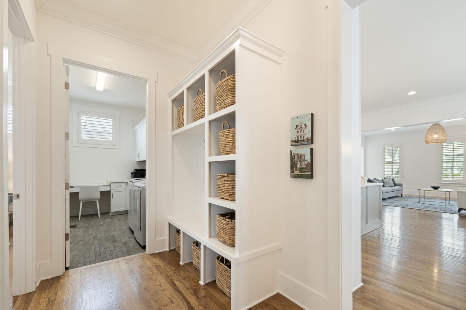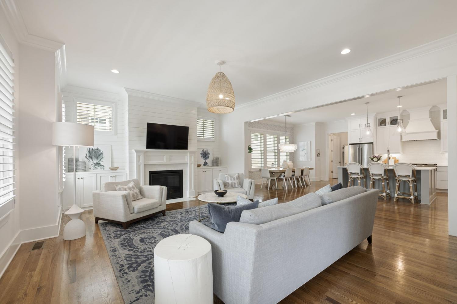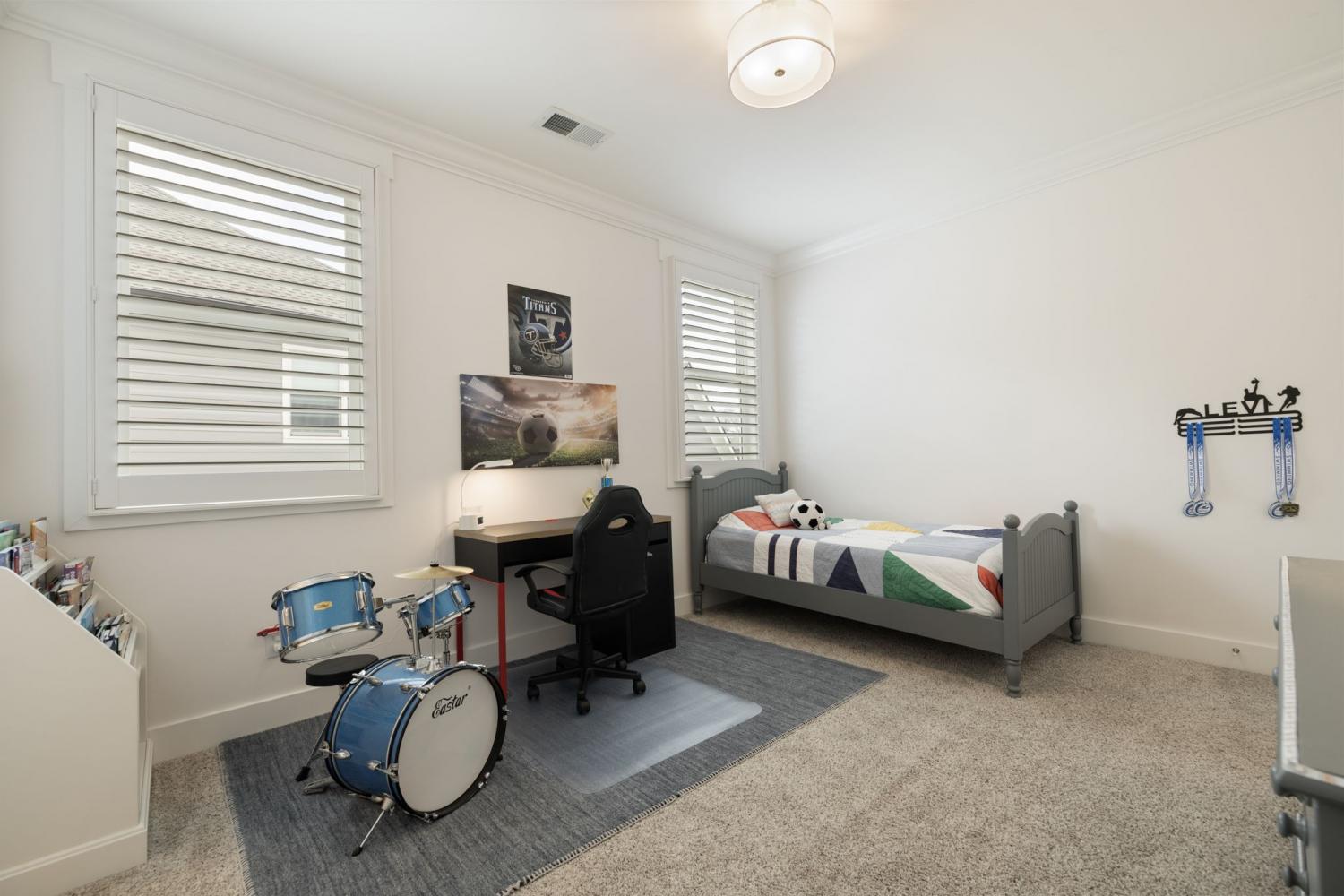 Welcome Home to this Timeless Westhaven Beauty! Watch both the sunrise and the sunset from the Double Story Covered Front Porch. Impeccable, clean and feels like a brand new home! Perfectly positioned on a charming side street, the oversized pie-shaped lot creates a larger courtyard to play or relax. The light, airy open floor plan is designed for both entertaining and everyday comfort. You will find Sand-and-finished hardwood floors throughout the home (only 2 upstairs bedrooms have carpet), shiplap accent walls, Plantation Shutters and built-ins flanking the fireplace. The Kitchen shines with quartz countertops, stacked-to-ceiling white cabinets, large walk-in pantry, and Stainless Steel KitchenAid appliances, including a 6 burner professional cooktop and refrigerator, which will remain with home. The Main Level Primary Suite offers hardwood floors and a spa-like bath with quartz vanities and huge walk-in shower with 3 shower heads...a rain, handheld and regular wall mounted! Every Bedroom features an En Suite Bath and walk in closet. Over the True 3 Car Garage, there is a Separate Entrance to a Private Guest/In-Law Suite/Home Office/Exercise Room + Living Room with Hardwood floors, full bath and walk in closet. The Laundry Room is a dream with built-in desk, sink and a ton of cabinets. The Dining Nook has a soft pop of color from Serena & Lily wallpaper overlooking the Courtyard, Kitchen and Family Room. Live an unmatched lifestyle with the convenience of Westhaven Town Center's Shopping, Dining and Grocery, sidewalks throughout, walking, biking and hiking trails, multiple fitness centers, multiple pools, tennis and pickleball courts, Private Championship Golf Club, and Pearre Creek Elementary School. Thoughtfully designed and beautifully finished, this home blends timeless charm with modern comfort. Come fall in love with this stunner in one of Franklin's favorite neighborhoods! *3rd floor sq. ft. listed is the suite over the garage.