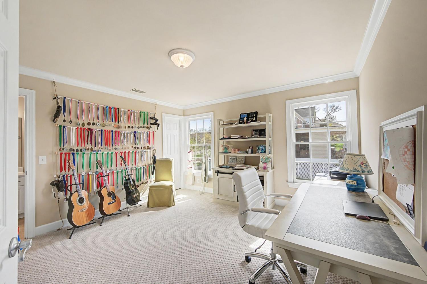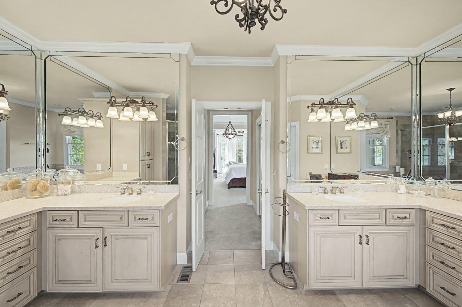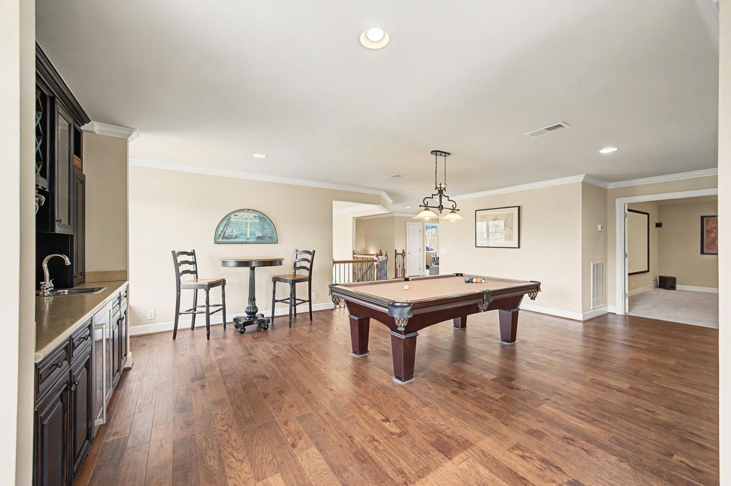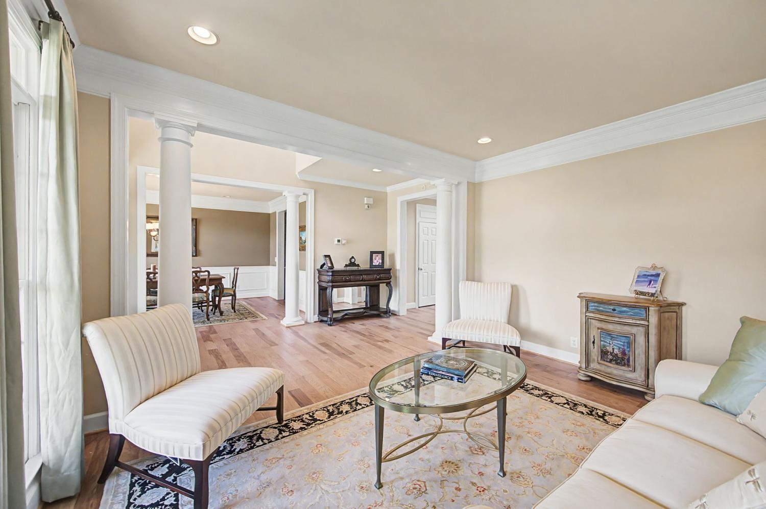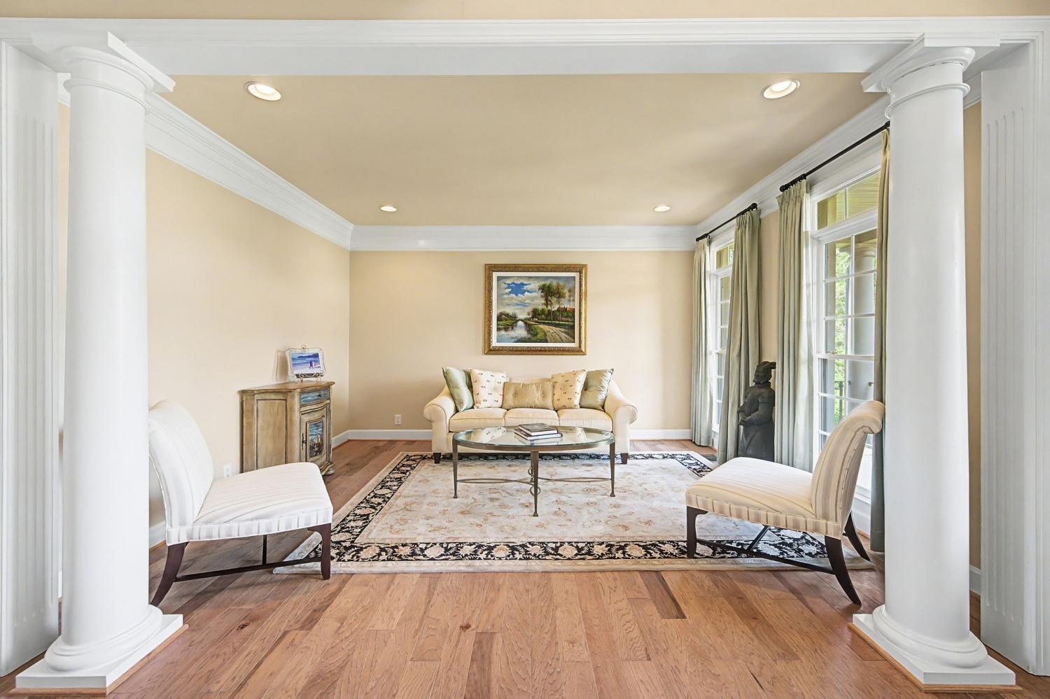 Open House Sunday 5/3 2-4 pm! Welcome to this stunning 5 bedroom/5.5 bath home located in the highly sought after Inglehame Farms neighborhood. Thoughtfully designed for both comfort and functionality, this spacious residence features two bedrooms on the main level, perfect for guests or multi-generational living. The primary bedroom is a spa-like retreat complete with a charming sitting area and fireplace. Upstairs you will find 3 additional guest bedrooms along with a versatile bonus room and a dedicated media/theater room - ideal for entertainment and relaxation. All bedrooms are ensuite and feature spacious walk-in closets providing ample space for family and/or guests to enjoy. The home boasts of beautiful hardwood floors, soaring high ceilings, elegant marble countertops in the gourmet kitchen, and newer appliances throughout. Step outside to enjoy an inviting covered porch complete with a cozy fireplace and beautiful views of the private backyard. Overlooking the .65-acre, manicured backyard and backing up to a protected 4 acre historic site, this home offers endless possibilities for outdoor entertaining with privacy and serenity. With upscale finishes and exceptional living space, this home truly has it all. Conveniently located minutes from nearby parks and miles of paved walking and biking trails, schools, shopping, and restaurants, this fabulously maintained home is a rare buying opportunity. Zoned for Kenrose Elementary, Woodland Middle, and Ravenwood High.