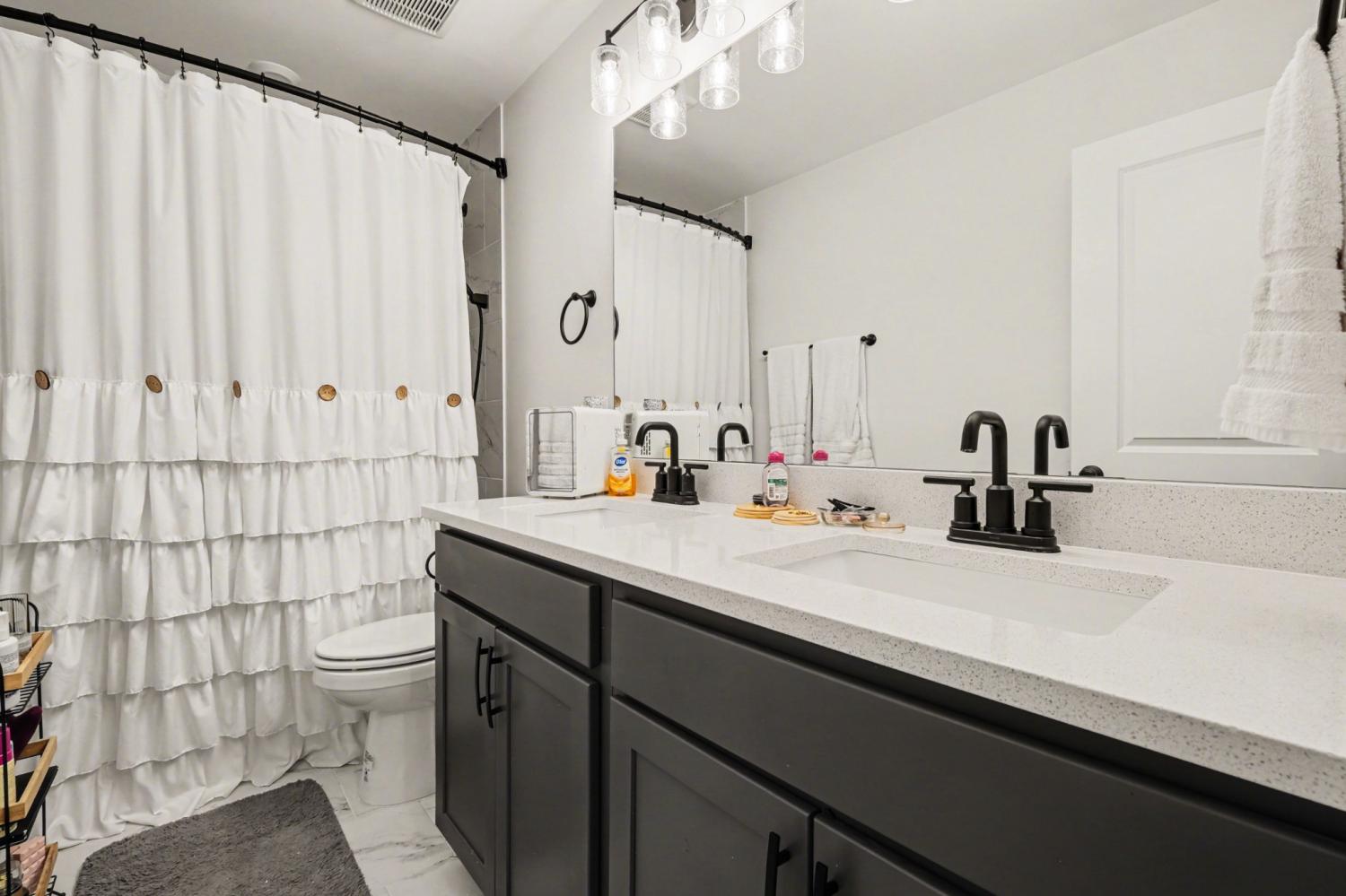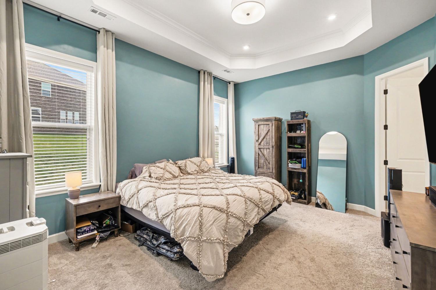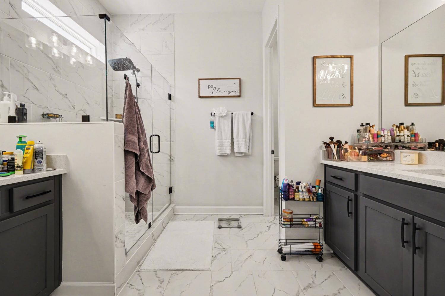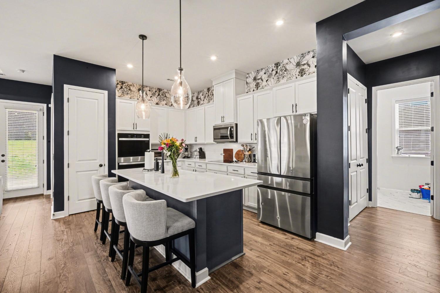 Welcome to modern luxury in Columbia’s sought-after Bear Creek Overlook! Built in 2023, this pristine, energy-efficient new construction home offers 3,521 sq. ft. of thoughtfully designed living space featuring 4 bedrooms and 3 full baths. The main level greets you with an inviting entrance foyer leading to a spacious 16x18 living room that is equipped with built-in sound and anchored by a sleek electric fireplace. The chef-inspired kitchen is a true standout, boasting ENERGY STAR qualified appliances, double ovens, a pantry, and a generous 14x18 layout that flows seamlessly into the dining area. Rare and highly functional, the primary suite and a second bedroom are both located on the main floor, providing maximum convenience. Upstairs, you'll find two additional bedrooms—each with spacious walk-in closet, a bonus room and media room complete with surround sound! This smart home is equipped with professional air-sealed ducts, high-efficiency HVAC and smart lighting. The alarm, lighting, thermostats and audio are able to be controlled with your smartphone! Step outside to your covered patio that is already prewired for sound and an outdoor television.While outside, you can take advantage of the nice level lot or the premium community amenities, including a clubhouse, pool, playground, and park. With brick and fiber cement siding, a 2-car front-entry garage, and a location that blends quiet suburban life with easy access to everything, this home is move-in ready.