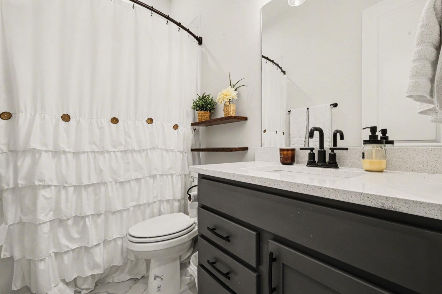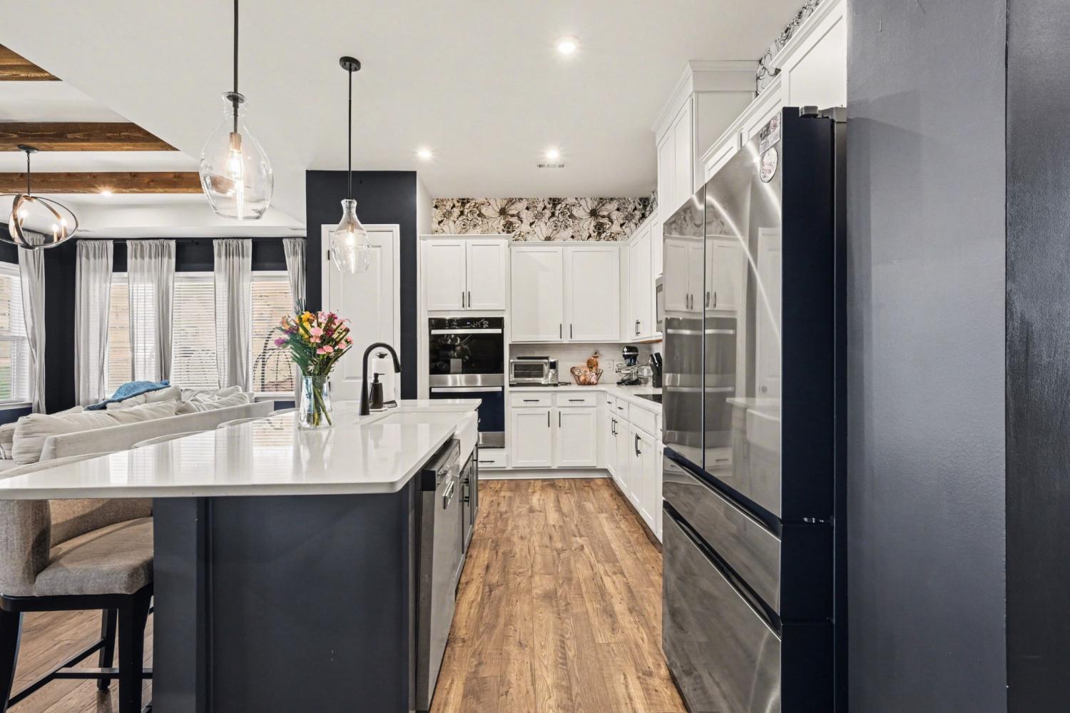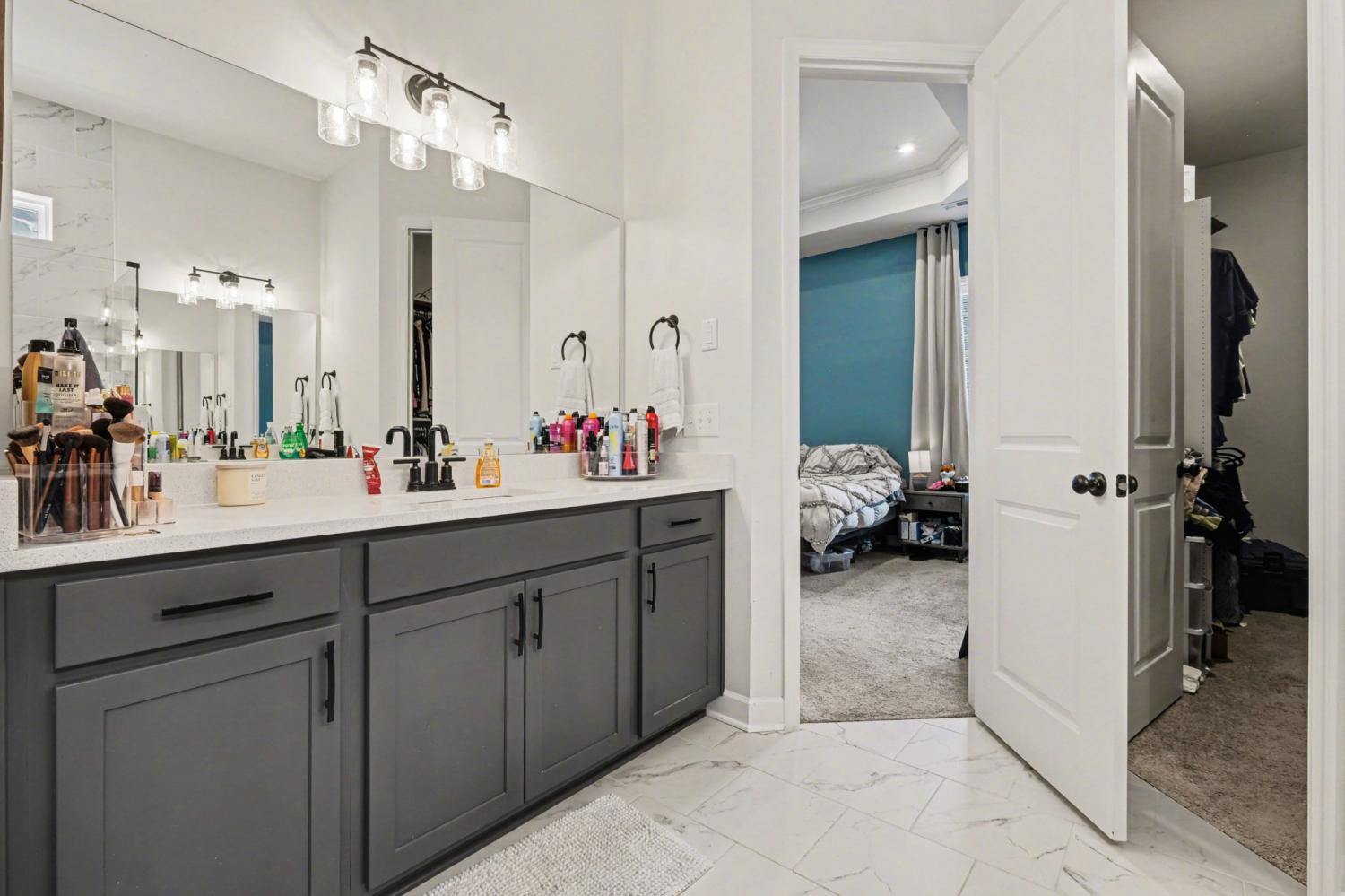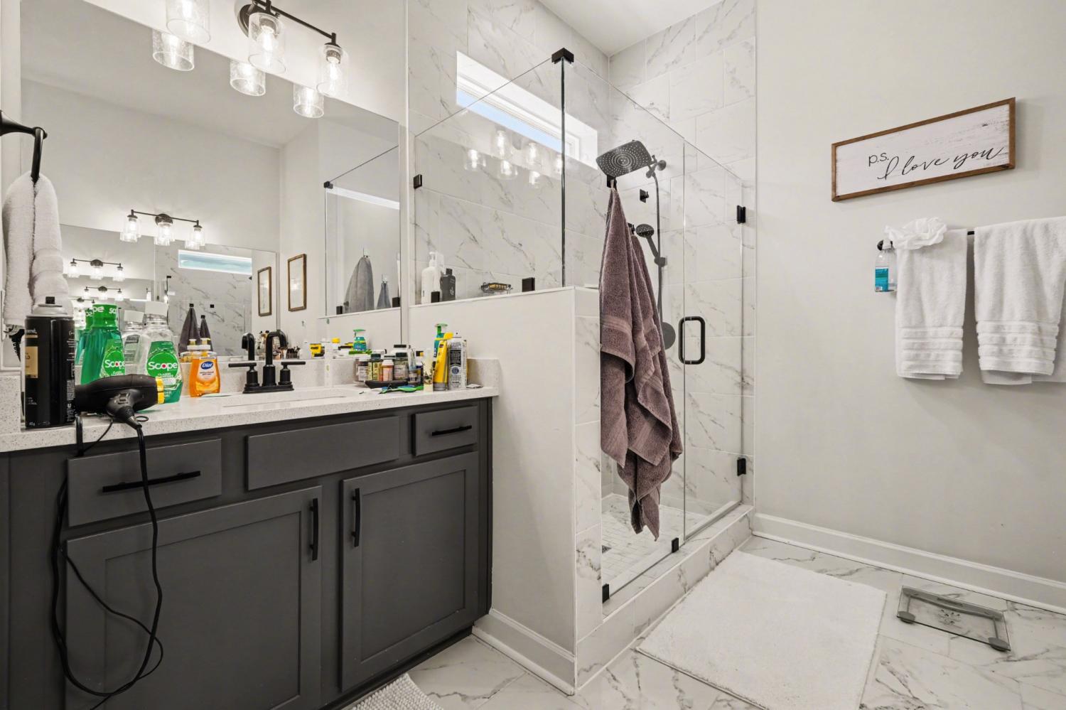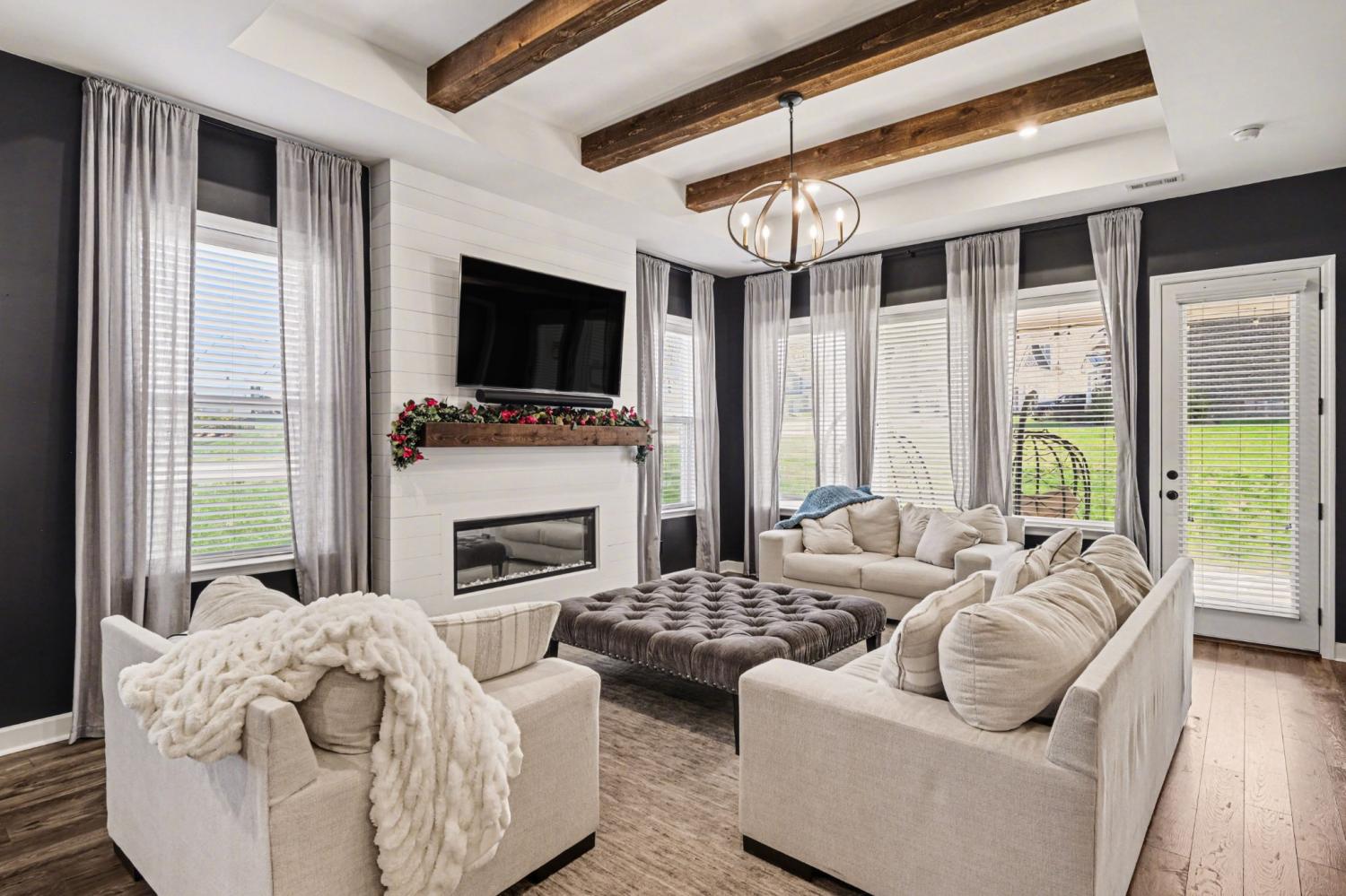 Welcome to modern luxury in Columbia’s sought-after Bear Creek Overlook! Built in 2023, this pristine, energy-efficient new construction home offers 3,521 sq. ft. of thoughtfully designed living space featuring 4 bedrooms and 3 full baths. The main level greets you with an inviting entrance foyer leading to a spacious 16x18 living room that is equipped with built-in sound and anchored by a sleek electric fireplace. The chef-inspired kitchen is a true standout, boasting ENERGY STAR qualified appliances, double ovens, a pantry, and a generous 14x18 layout that flows seamlessly into the dining area. Rare and highly functional, the primary suite and a second bedroom are both located on the main floor, providing maximum convenience. Upstairs, you'll find two additional bedrooms—each with spacious walk-in closet, a bonus room and media room complete with surround sound! This smart home is equipped with professional air-sealed ducts, high-efficiency HVAC and smart lighting. The alarm, lighting, thermostats and audio are able to be controlled with your smartphone! Step outside to your covered patio that is already prewired for sound and an outdoor television.While outside, you can take advantage of the nice level lot or the premium community amenities, including a clubhouse, pool, playground, and park. With brick and fiber cement siding, a 2-car front-entry garage, and a location that blends quiet suburban life with easy access to everything, this home is move-in ready.