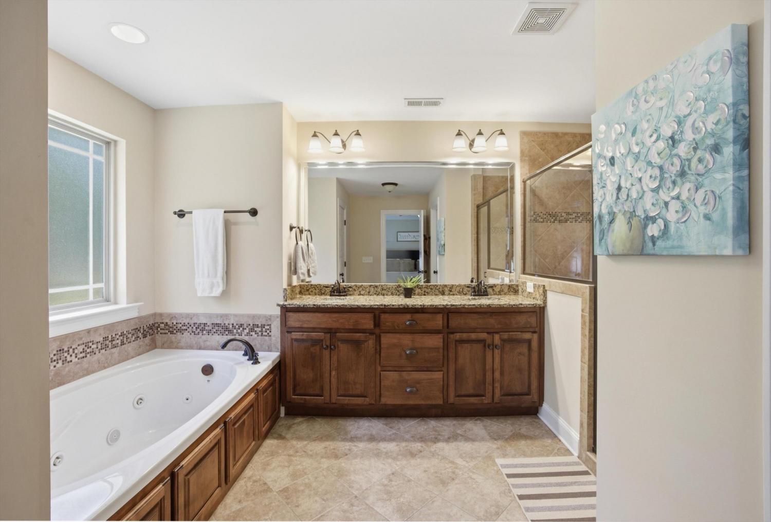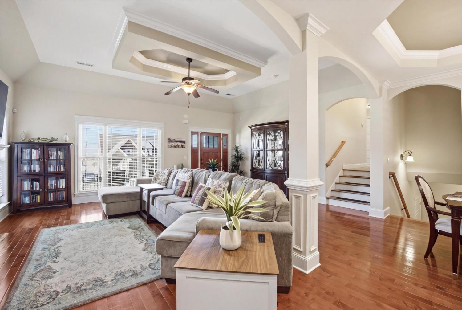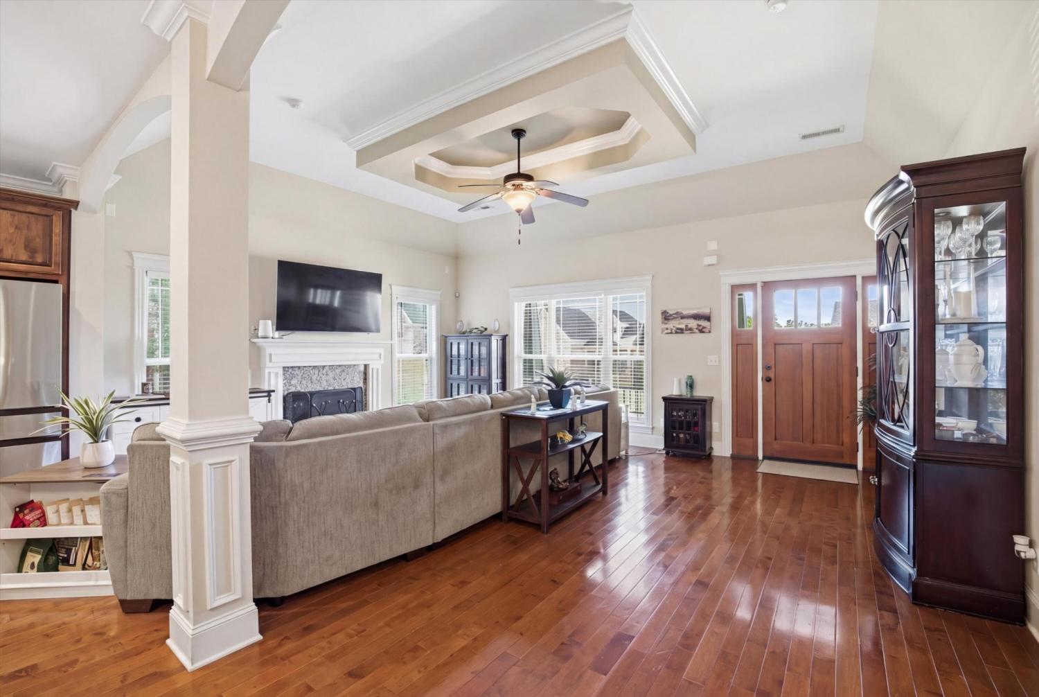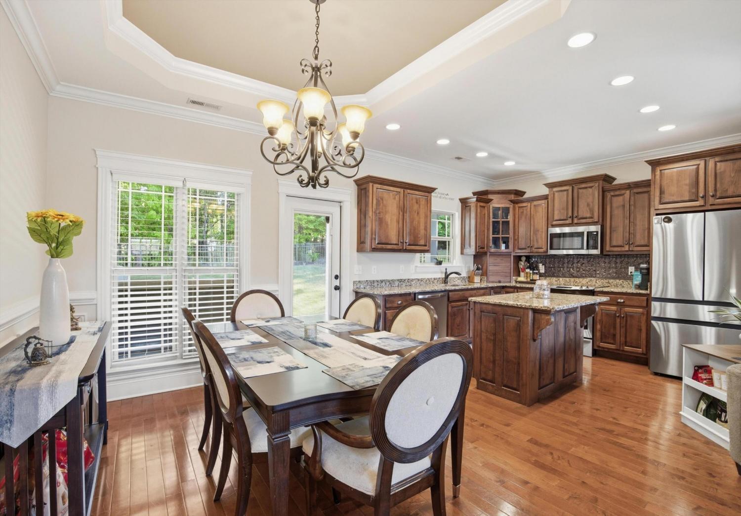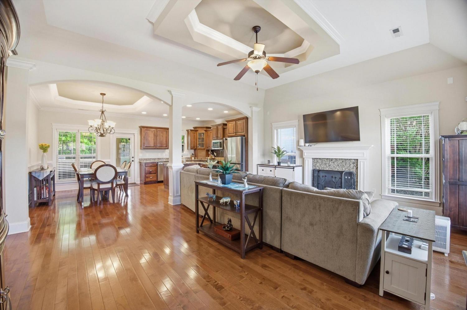 Welcome to 8153 Perfect View in the highly desirable Seven Lakes community where style comfort and location come together in one stunning home. From the moment you step inside you are greeted with rich hardwood floors elegant crown molding and eye catching tray ceilings that elevate the living room dining room and spacious primary suite. The living room offers a warm and inviting atmosphere centered around a cozy gas log fireplace perfect for relaxing evenings or gathering with friends and family. The kitchen is both beautiful and functional featuring granite countertops plenty of cabinet space and an easy flow for everyday living and entertaining. A full laundry room adds convenience and extra storage. The primary suite is a true retreat with impressive tray ceilings and a large ensuite bath designed to impress complete with a whirlpool tub double vanity and a generous walk in closet. Two additional bedrooms and a full bath provide flexibility for guests family or a home office setup. Step outside to a large fenced in backyard offering the perfect space for pets play or outdoor entertaining. Whether you are hosting a weekend get together or enjoying a quiet evening this backyard delivers the space and privacy you have been looking for. Located in the sought after Seven Lakes neighborhood this home offers a lifestyle you will love with beautiful surroundings and a convenient Ooltewah location close to shopping dining and more. Do not miss your chance to make this one yours!