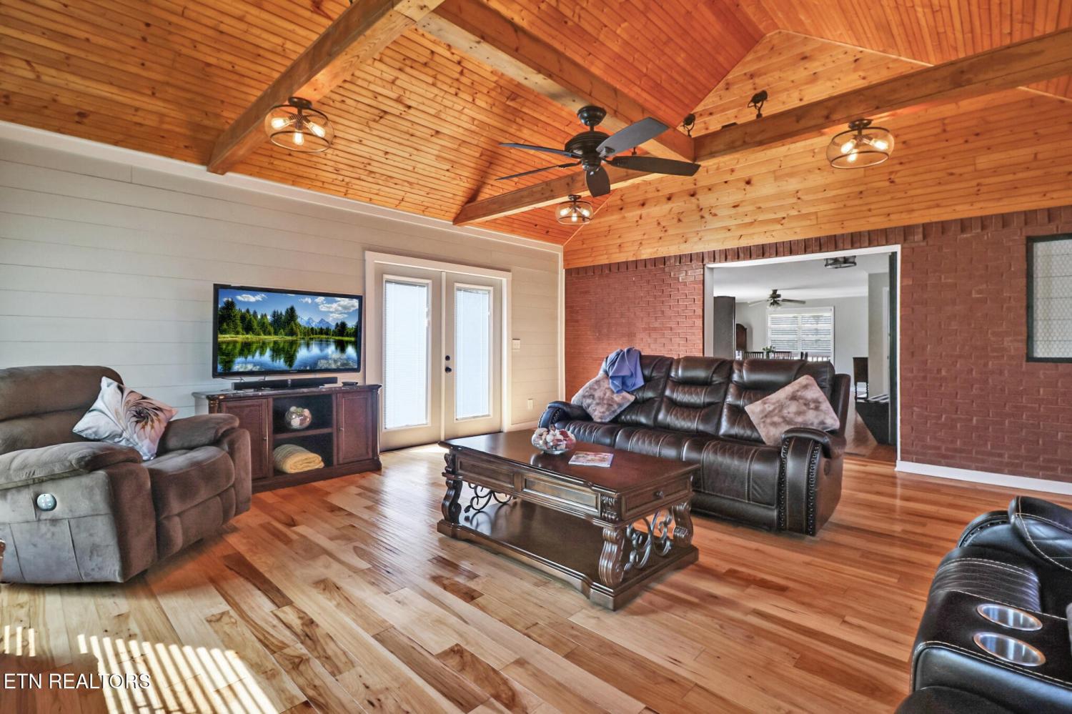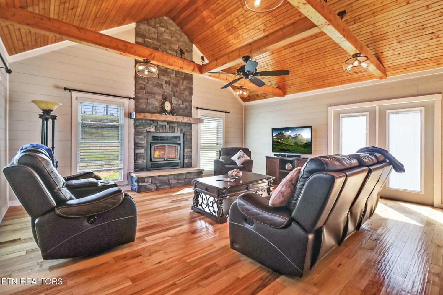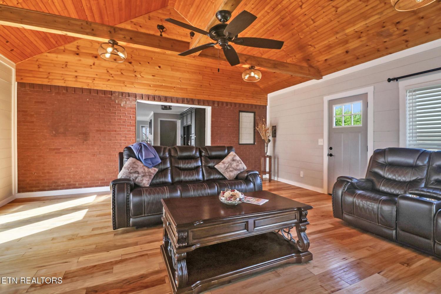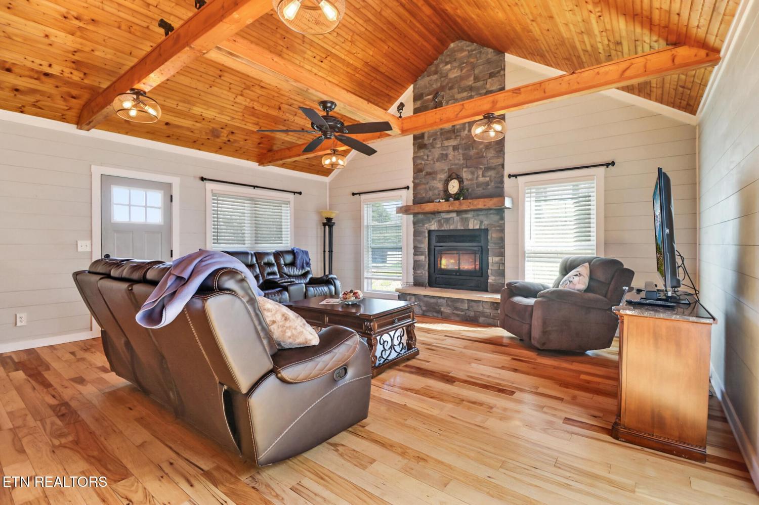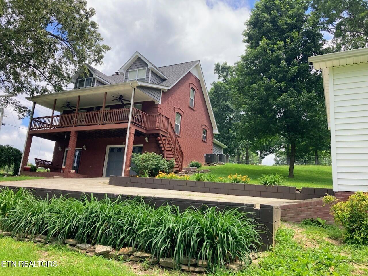 Stunning Home with Breathtaking Mountain Views! This beautiful multi-level brick home offers 3 bedrooms and 3 full bathrooms, perfectly designed for comfort and enjoying the outdoors. Step out onto the spacious main-level deck and take in unforgettable sunset views over the mountains. Inside, the main level welcomes you with a warm and inviting living room featuring a cathedral wood ceiling and a cozy wood-burning fireplace. The open-concept kitchen and dining area provide the ideal space for entertaining and gathering with family and friends. Convenience meets functionality with a well-equipped utility room that includes cabinetry, a sink, and even a laundry chute--all located on the main level, along with a guest bedroom and full bath. Upstairs, retreat to the spacious primary suite complete with a double vanity, luxurious soaking tub, and a walk-in shower. An additional bedroom is located just across the hall. The lower level offers a versatile bonus room or office space, a full bathroom, and a second wood-burning fireplace--perfect for a private workspace, guest suite, or recreation area. There is an updated attached garage and also a detached garage/workshop, two driveways entrance. The property comes with an adjoining lot making it 2.19 acres in total. Located 7 minutes from downtown Livingston, 20 minutes from Cookeville and 25 minutes from Dale Hollow Lake - Sunset Marina! This home truly combines comfort, character, and incredible views--don't miss your chance to make it yours! (Buyer to verify all information prior to making an informed offer.)