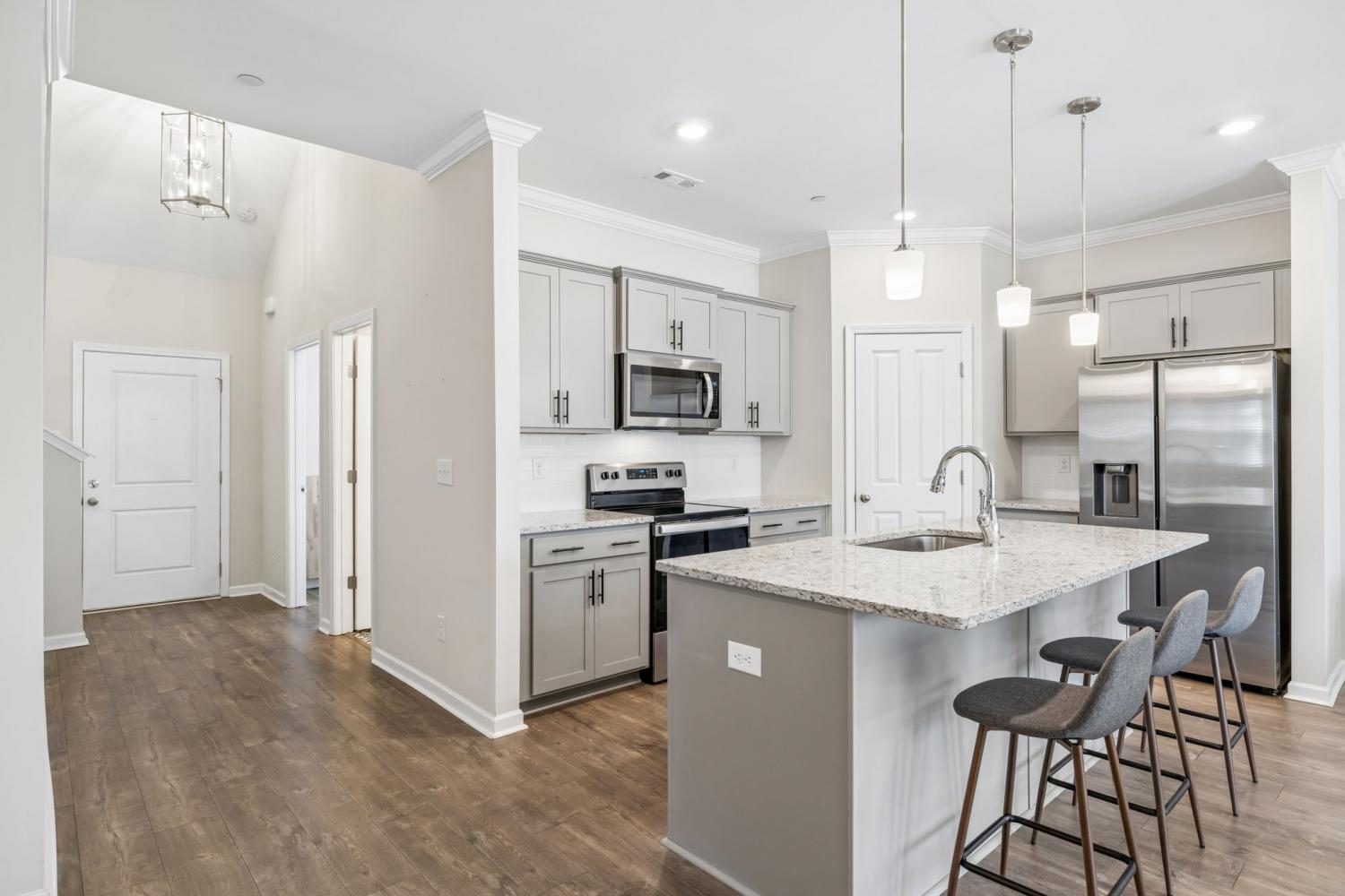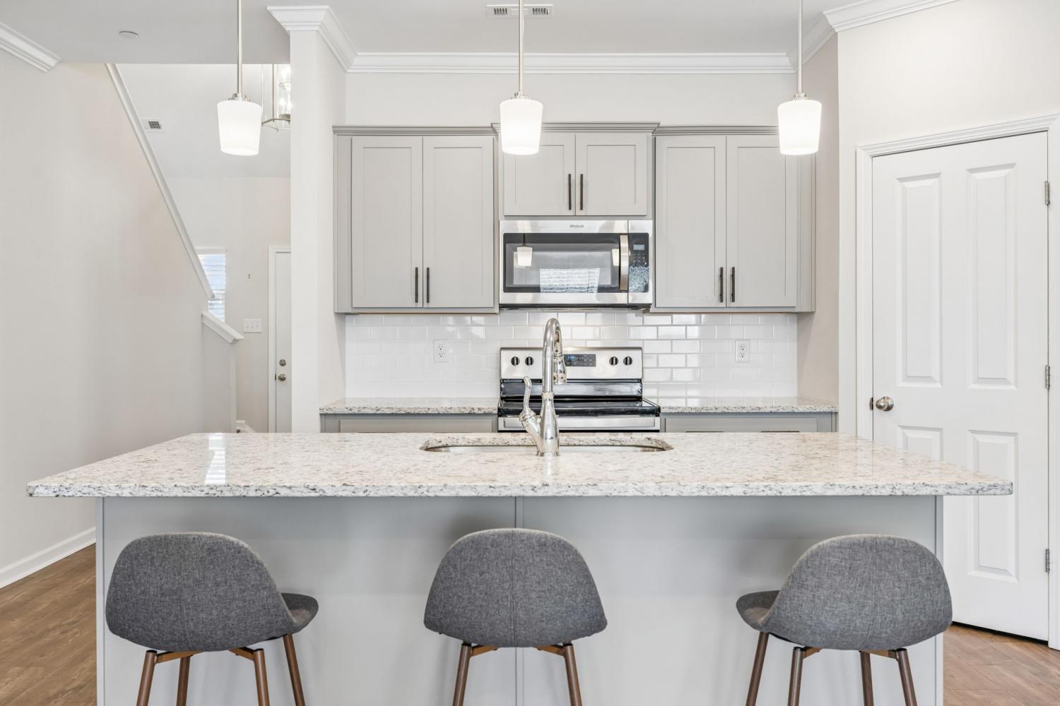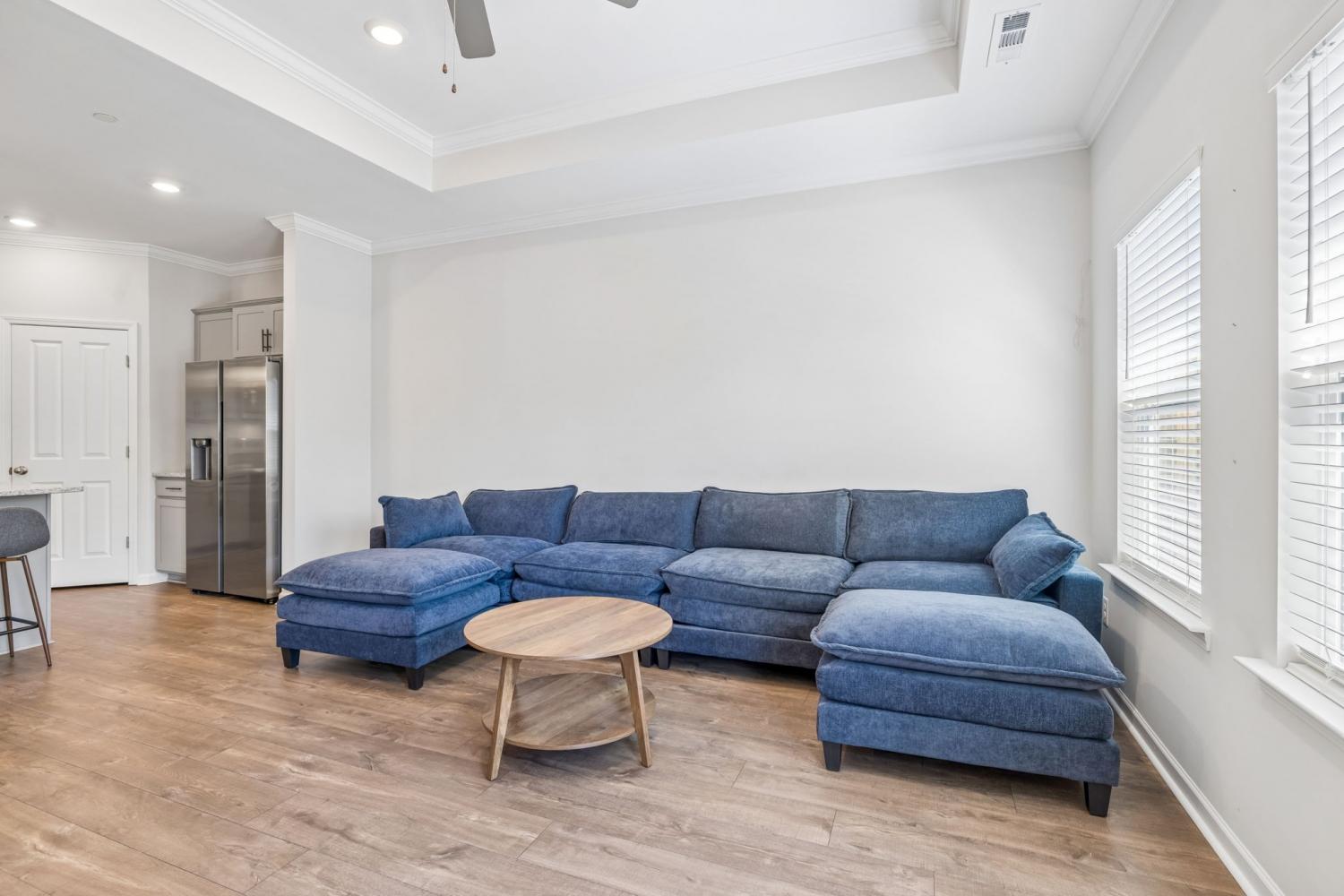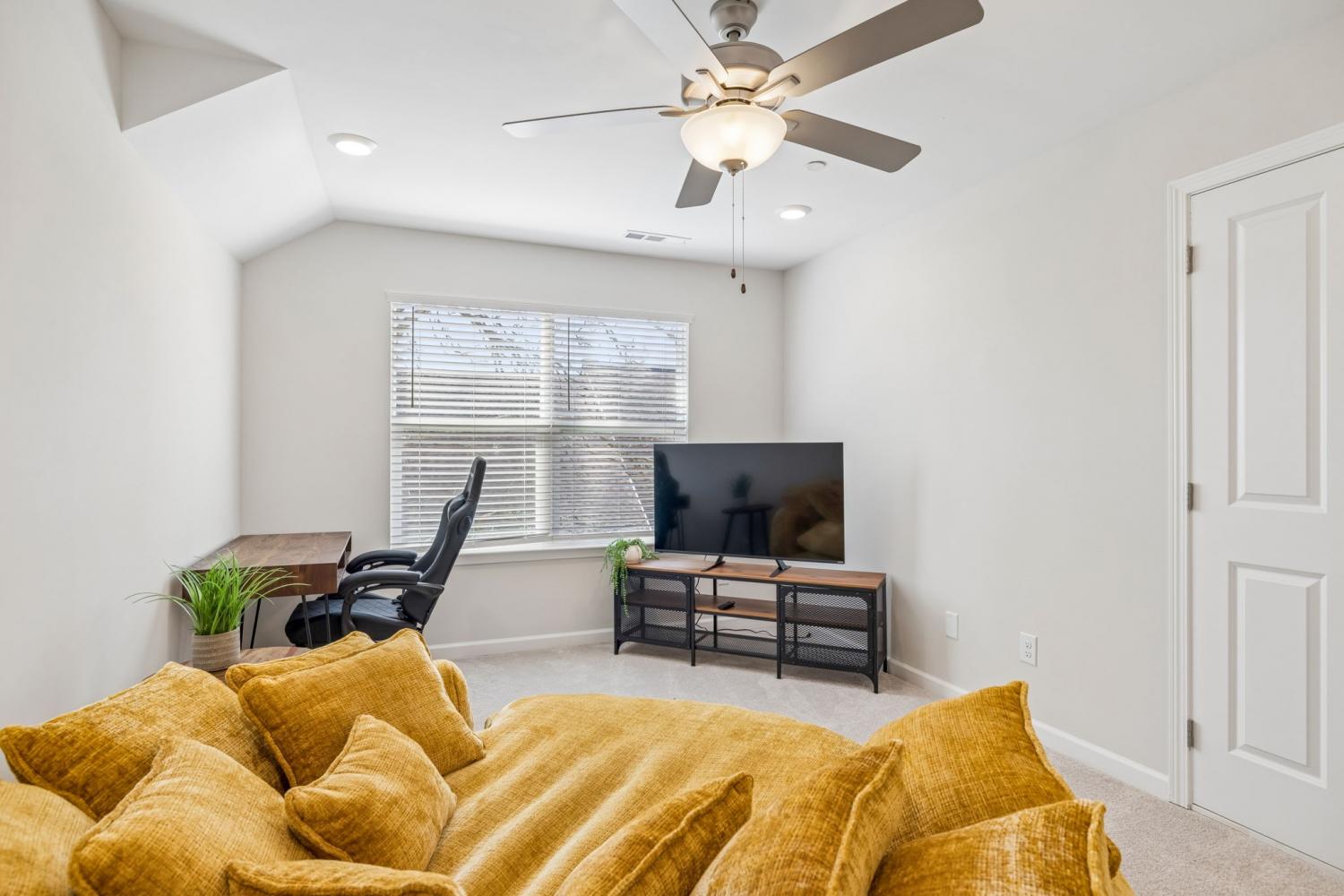 Set in a quiet end-unit location with peaceful views of the woods and pond, this townhome offers a comfortable lifestyle with the right balance of space and privacy. The open main level feels bright and connected, creating an easy flow for everyday living, relaxed evenings at home, or gathering with friends around the kitchen and living area. The kitchen blends style and function with granite countertops, stainless steel appliances, a farm sink, a generous island, and pantry storage, all opening seamlessly to the main living spaces. Durable LVP flooring adds a clean, elevated look while keeping maintenance simple. The main-level primary suite offers comfort and convenience, complete with a large walk-in closet and an oversized tiled shower that gives the space a relaxed, retreat-like feel. With three bedrooms total, each paired with its own full bath, the layout offers a level of privacy that is hard to find. Upstairs, a spacious rec room adds flexibility for a media space, home office, workout area, or second living room, while two large floored unfinished storage rooms provide exceptional extra space. Out back, the private 34' x 10' deck extends the living space outdoors and creates a quiet place to enjoy morning coffee or unwind at the end of the day. The backyard feels like a bird sanctuary, offering a peaceful natural backdrop with the kind of setting that makes it easy to slow down and enjoy the outdoors. With easy access to Nashville, Franklin, and the Natchez Trace Parkway, this home offers a peaceful setting without giving up everyday convenience.