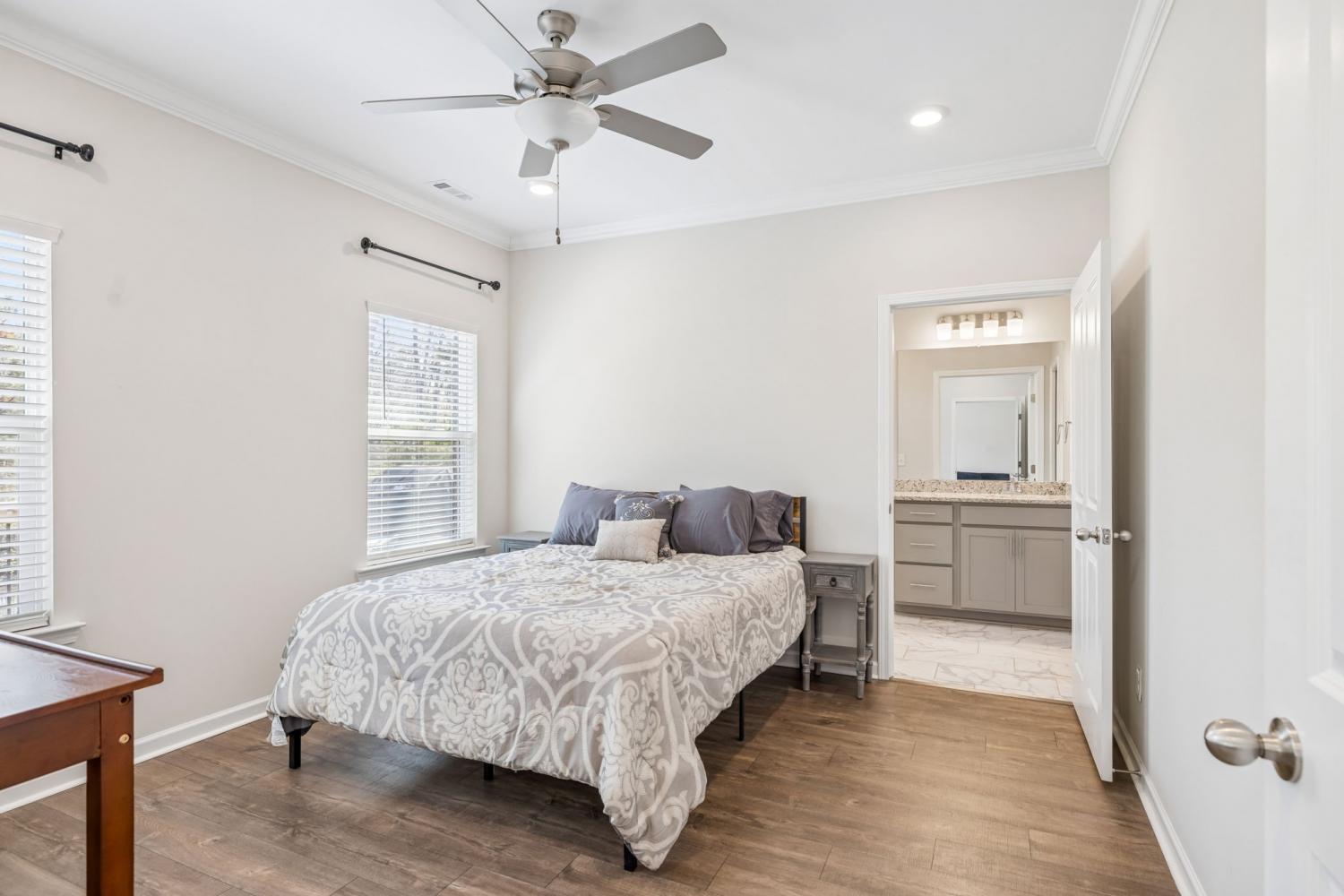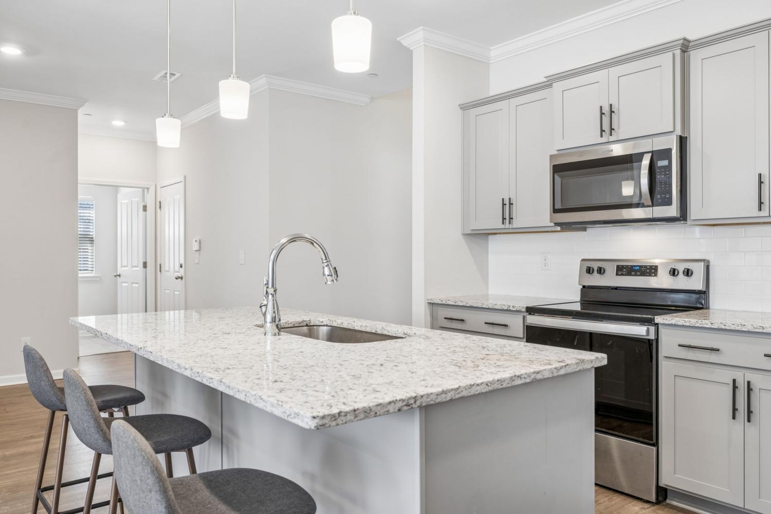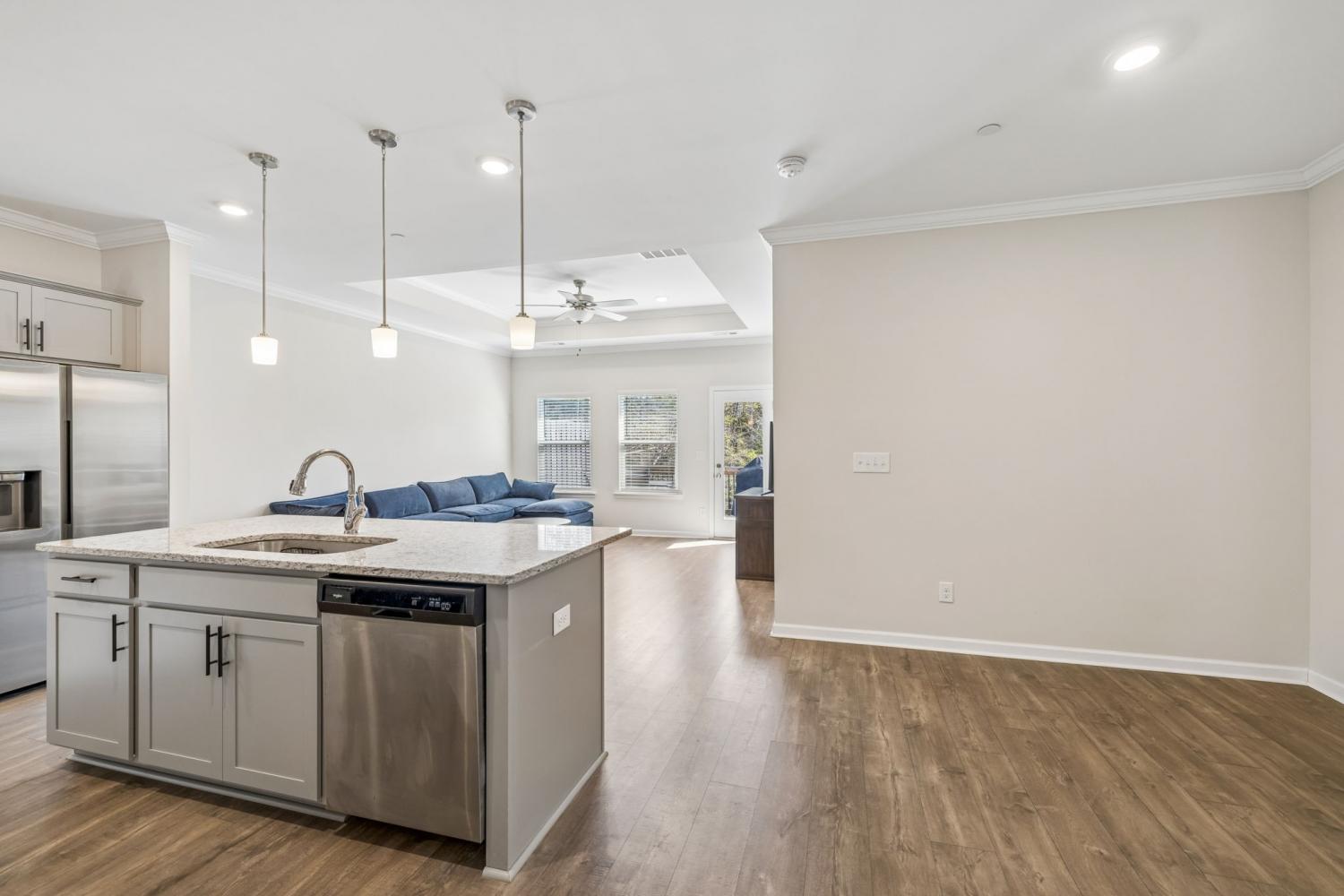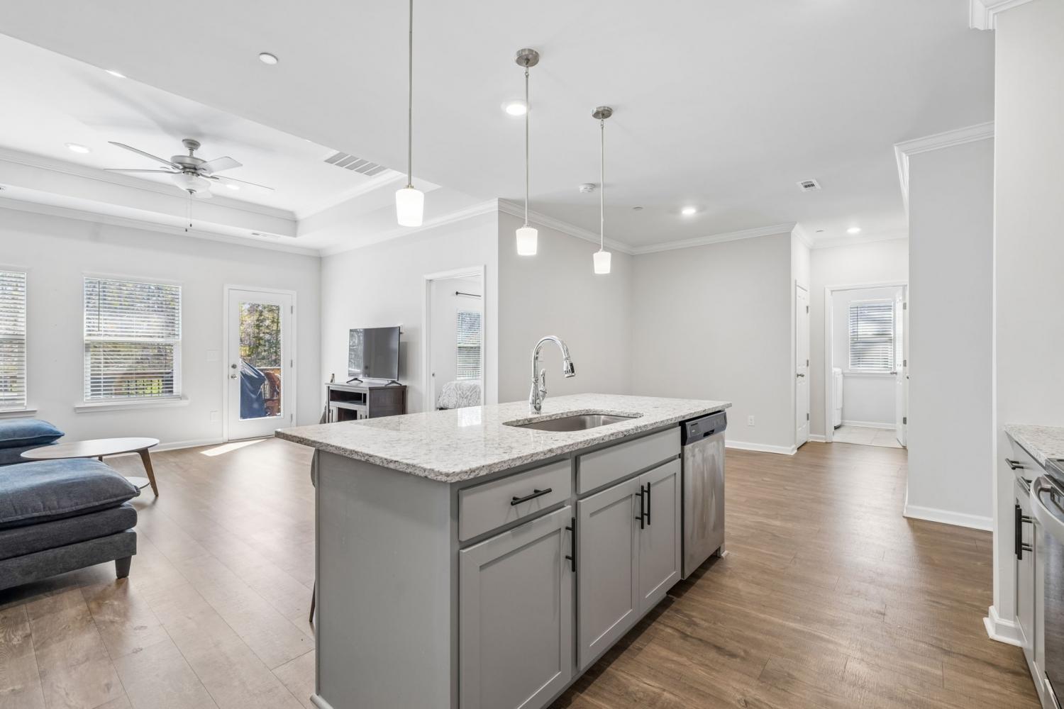 Set in a quiet end-unit location with peaceful views of the woods and pond, this townhome offers a comfortable lifestyle with the right balance of space and privacy. The open main level feels bright and connected, creating an easy flow for everyday living, relaxed evenings at home, or gathering with friends around the kitchen and living area. The kitchen blends style and function with granite countertops, stainless steel appliances, a farm sink, a generous island, and pantry storage, all opening seamlessly to the main living spaces. Durable LVP flooring adds a clean, elevated look while keeping maintenance simple. The main-level primary suite offers comfort and convenience, complete with a large walk-in closet and an oversized tiled shower that gives the space a relaxed, retreat-like feel. With three bedrooms total, each paired with its own full bath, the layout offers a level of privacy that is hard to find. Upstairs, a spacious rec room adds flexibility for a media space, home office, workout area, or second living room, while two large floored unfinished storage rooms provide exceptional extra space. Out back, the private 34' x 10' deck extends the living space outdoors and creates a quiet place to enjoy morning coffee or unwind at the end of the day. The backyard feels like a bird sanctuary, offering a peaceful natural backdrop with the kind of setting that makes it easy to slow down and enjoy the outdoors. With easy access to Nashville, Franklin, and the Natchez Trace Parkway, this home offers a peaceful setting without giving up everyday convenience.
