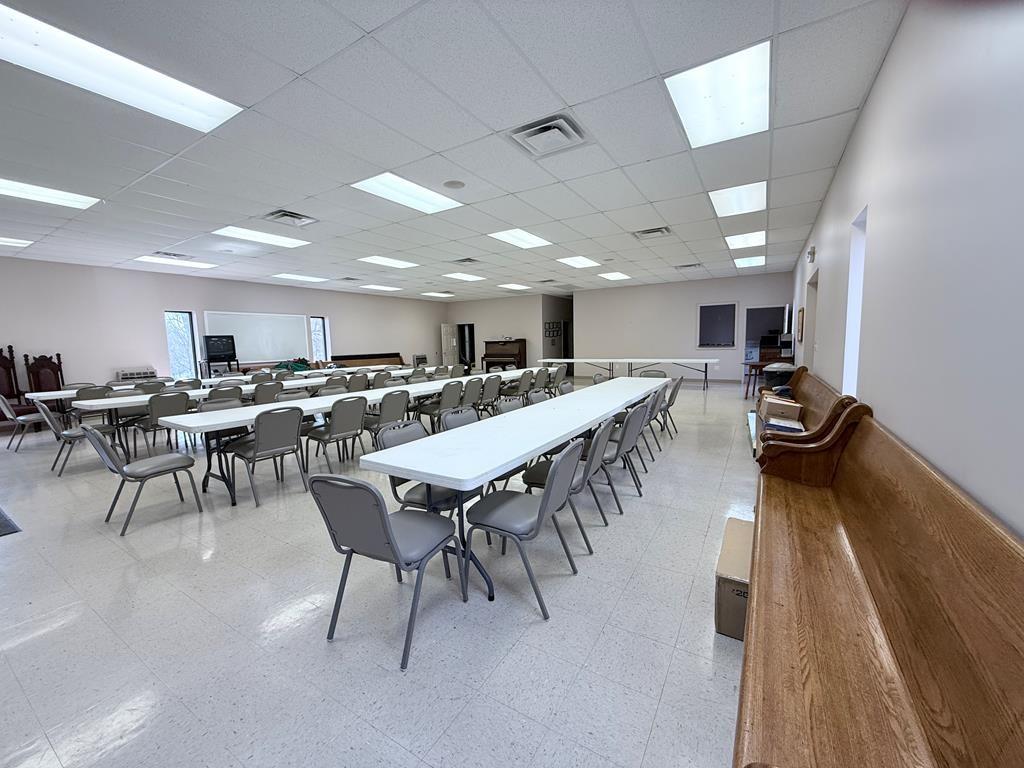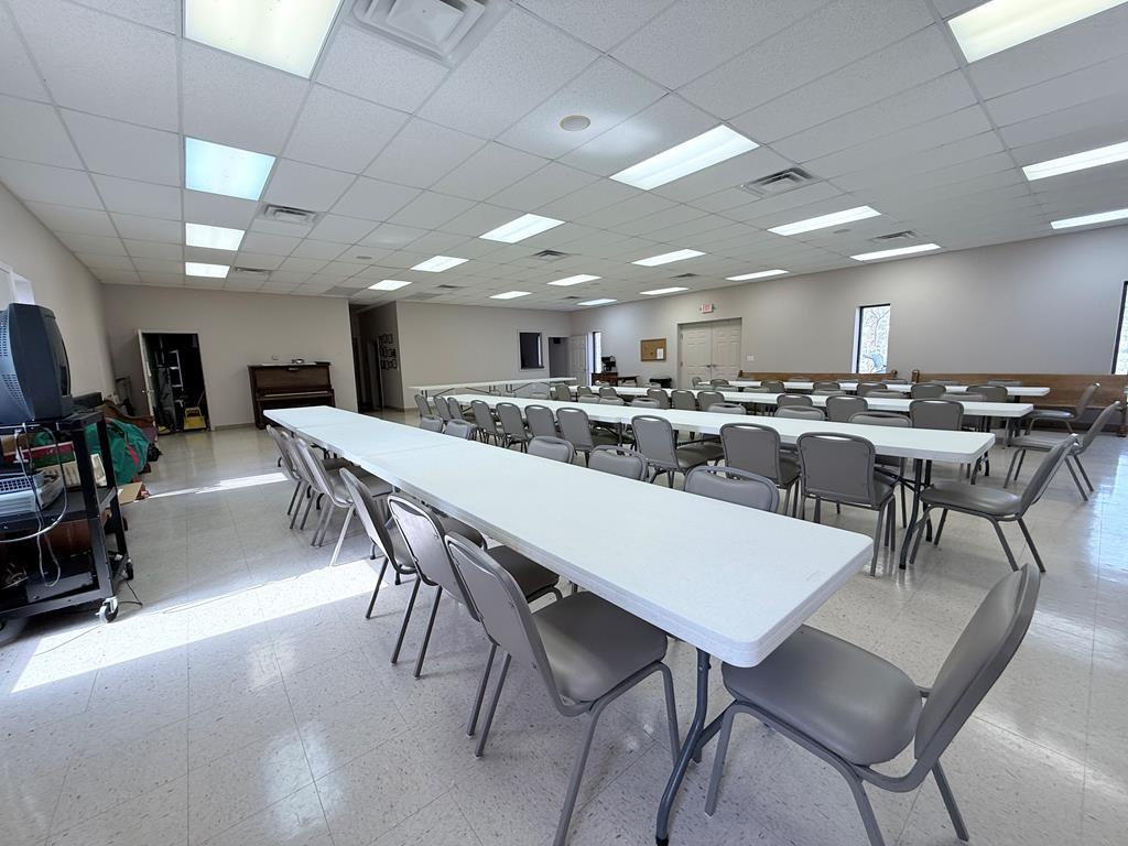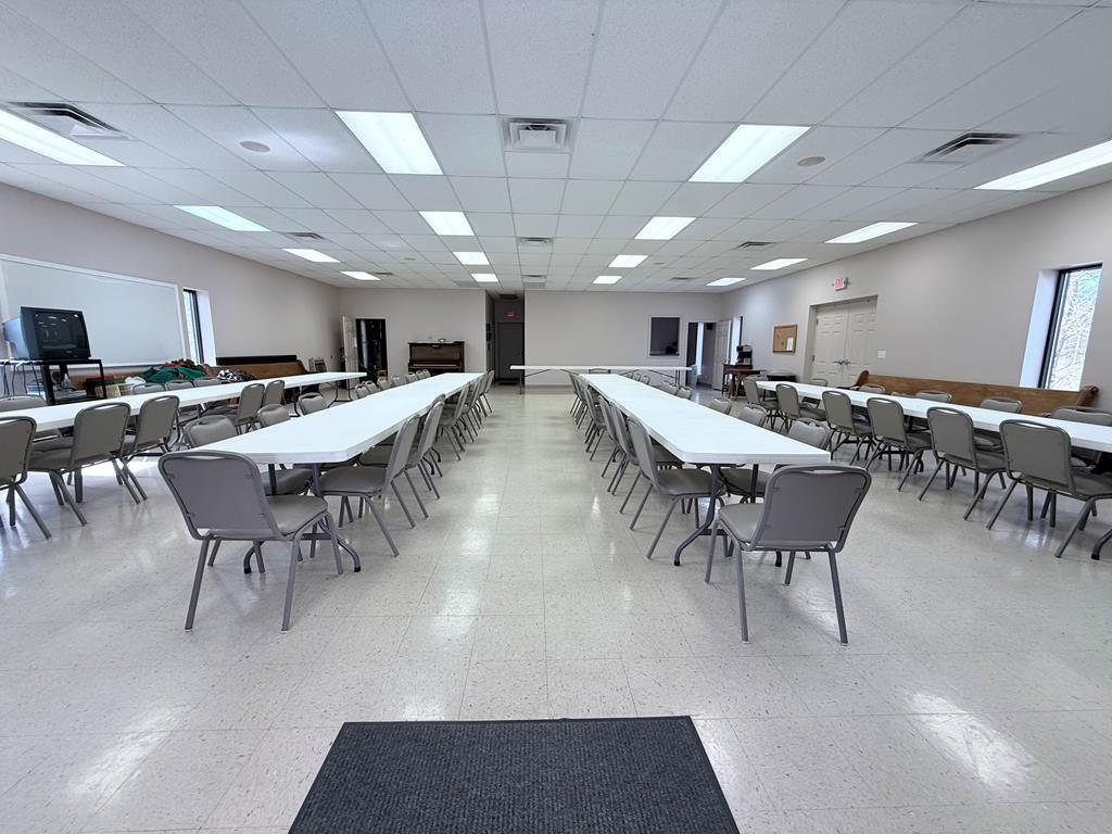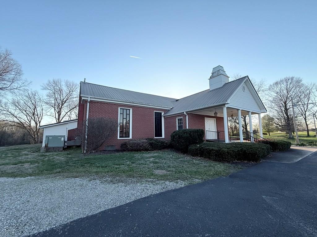 Well-maintained building could be converted into a home situated on 2.5 acres with excellent visibility in the heart of Herndon, KY & ample parking. The main level offers approximately 1,518 SF & includes a spacious sanctuary with seating for around 150, a stage, foyer, & two restrooms. Double-pane windows throughout enhance the property’s character. The 1,300 SF basement provides multiple rooms suitable for bedrooms, meetings, or flexible use, along with a kitchen area. Exterior features include a large paved parking lot, prominent signage, attractive landscaping, & open green space ideal for outdoor activities. The building is equipped with a durable metal roof and three exterior entrances. Additionally, a newer 2,400 SF metal building on the property offers a large open area for events, a storage/utility space, two restrooms, and a fully functional kitchen, along with 3 exterior entry points. This versatile property is well-suited for a VRBO or community organization.
