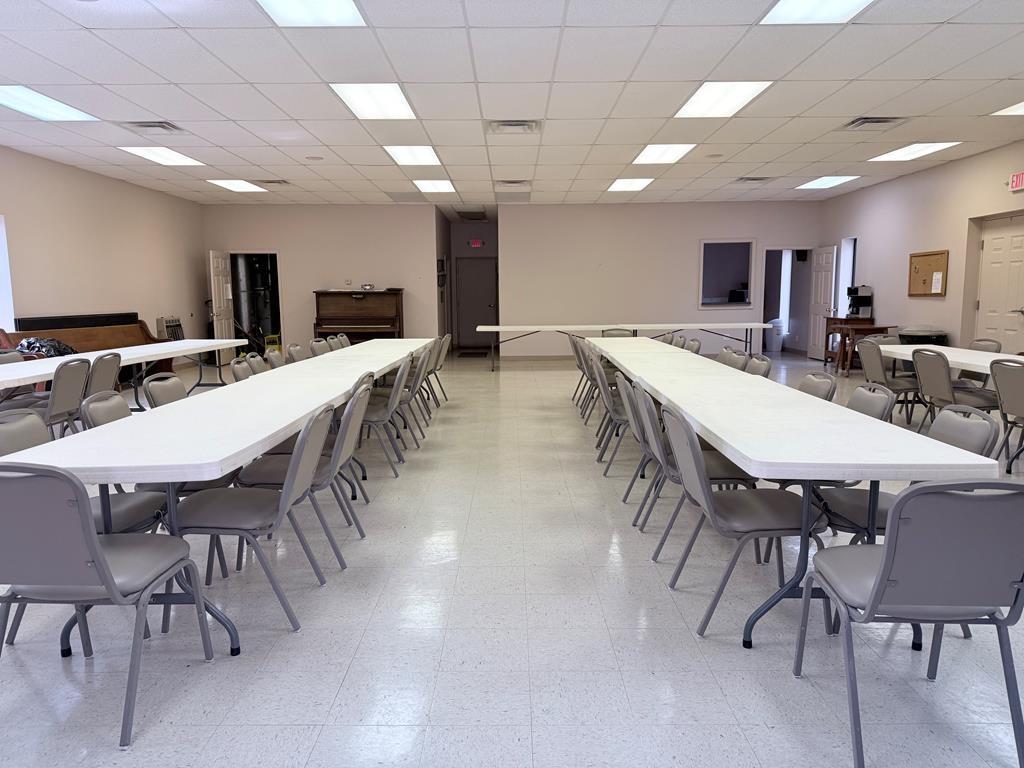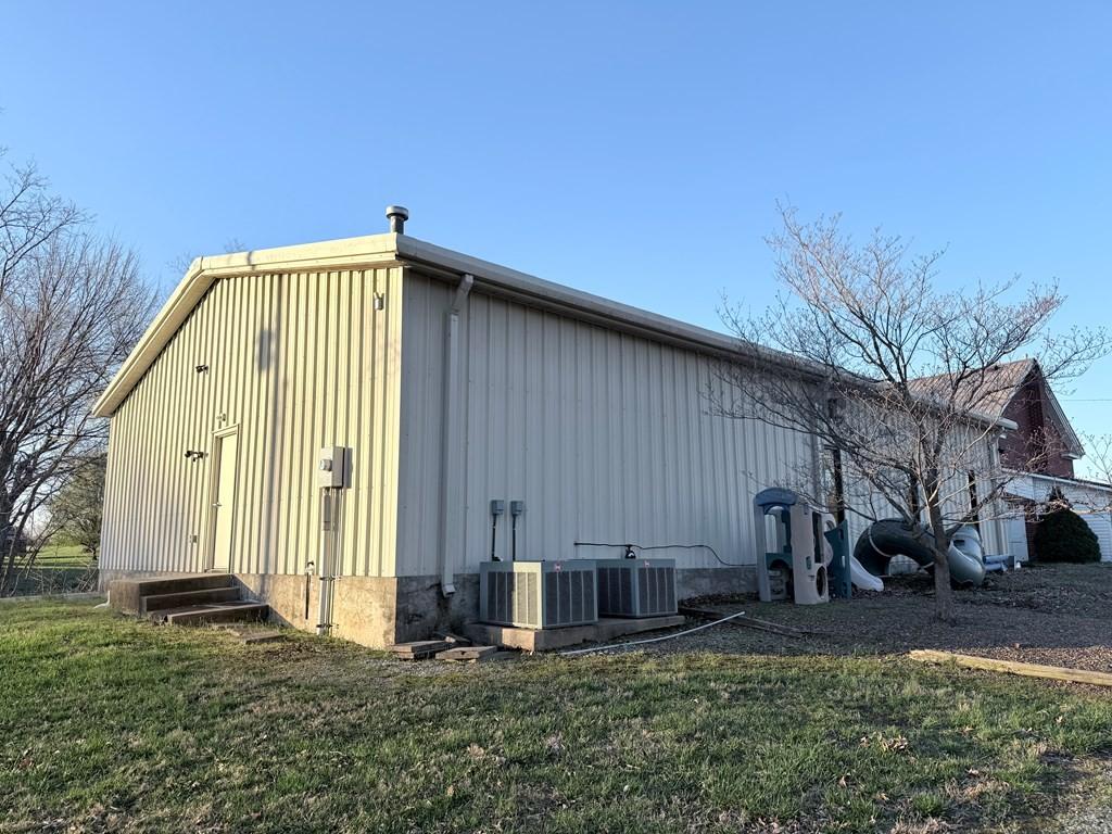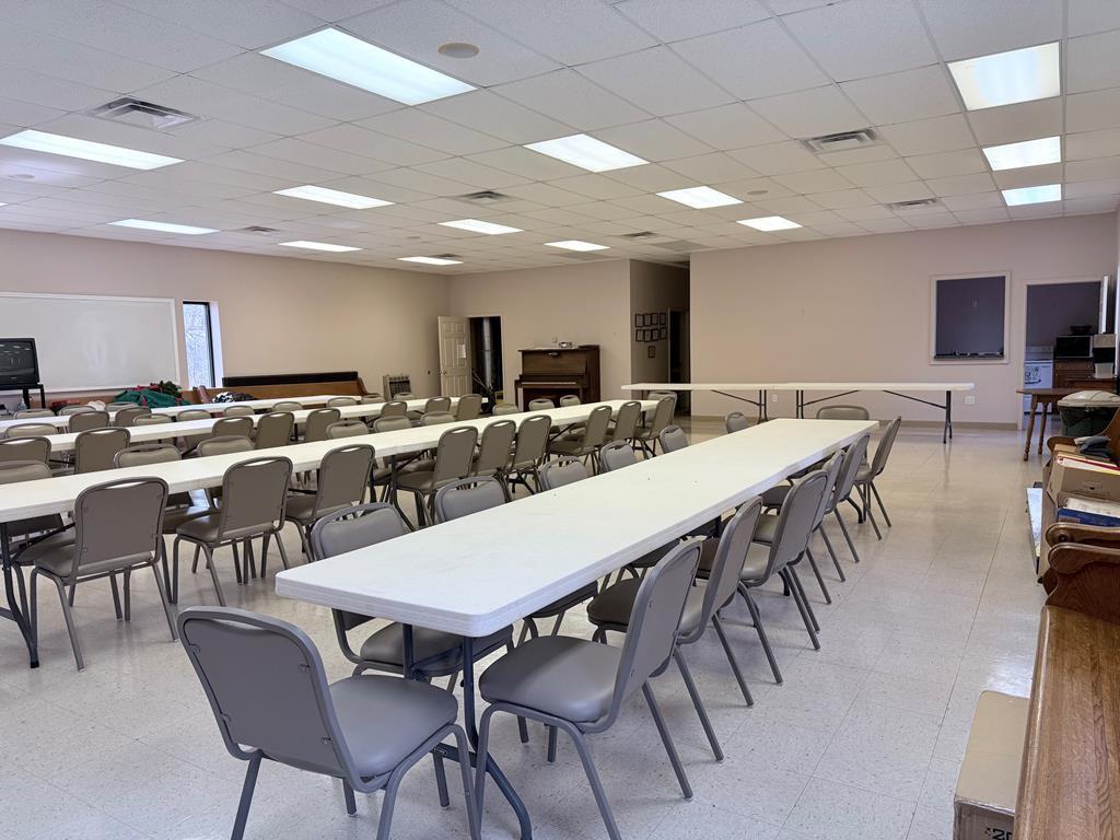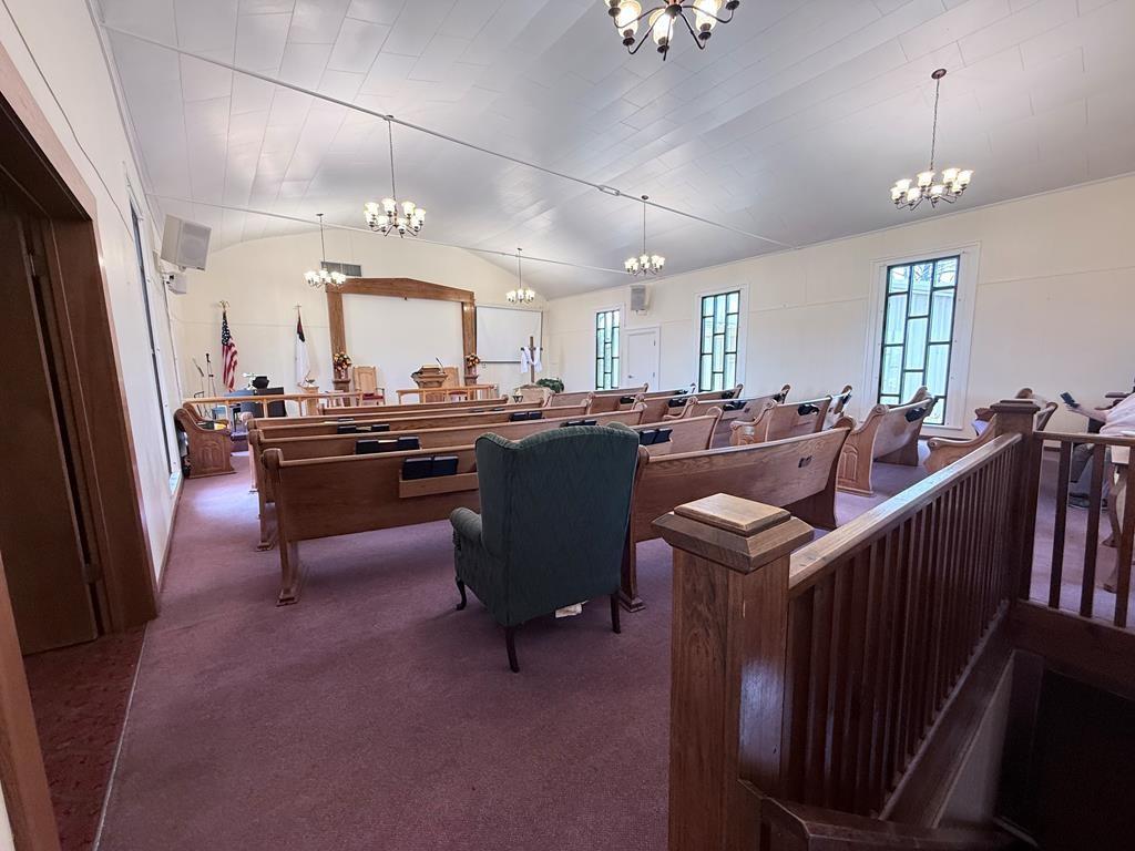 Well-maintained building could be converted into a home situated on 2.5 acres with excellent visibility in the heart of Herndon, KY & ample parking. The main level offers approximately 1,518 SF & includes a spacious sanctuary with seating for around 150, a stage, foyer, & two restrooms. Double-pane windows throughout enhance the property’s character. The 1,300 SF basement provides multiple rooms suitable for bedrooms, meetings, or flexible use, along with a kitchen area. Exterior features include a large paved parking lot, prominent signage, attractive landscaping, & open green space ideal for outdoor activities. The building is equipped with a durable metal roof and three exterior entrances. Additionally, a newer 2,400 SF metal building on the property offers a large open area for events, a storage/utility space, two restrooms, and a fully functional kitchen, along with 3 exterior entry points. This versatile property is well-suited for a VRBO or community organization.
