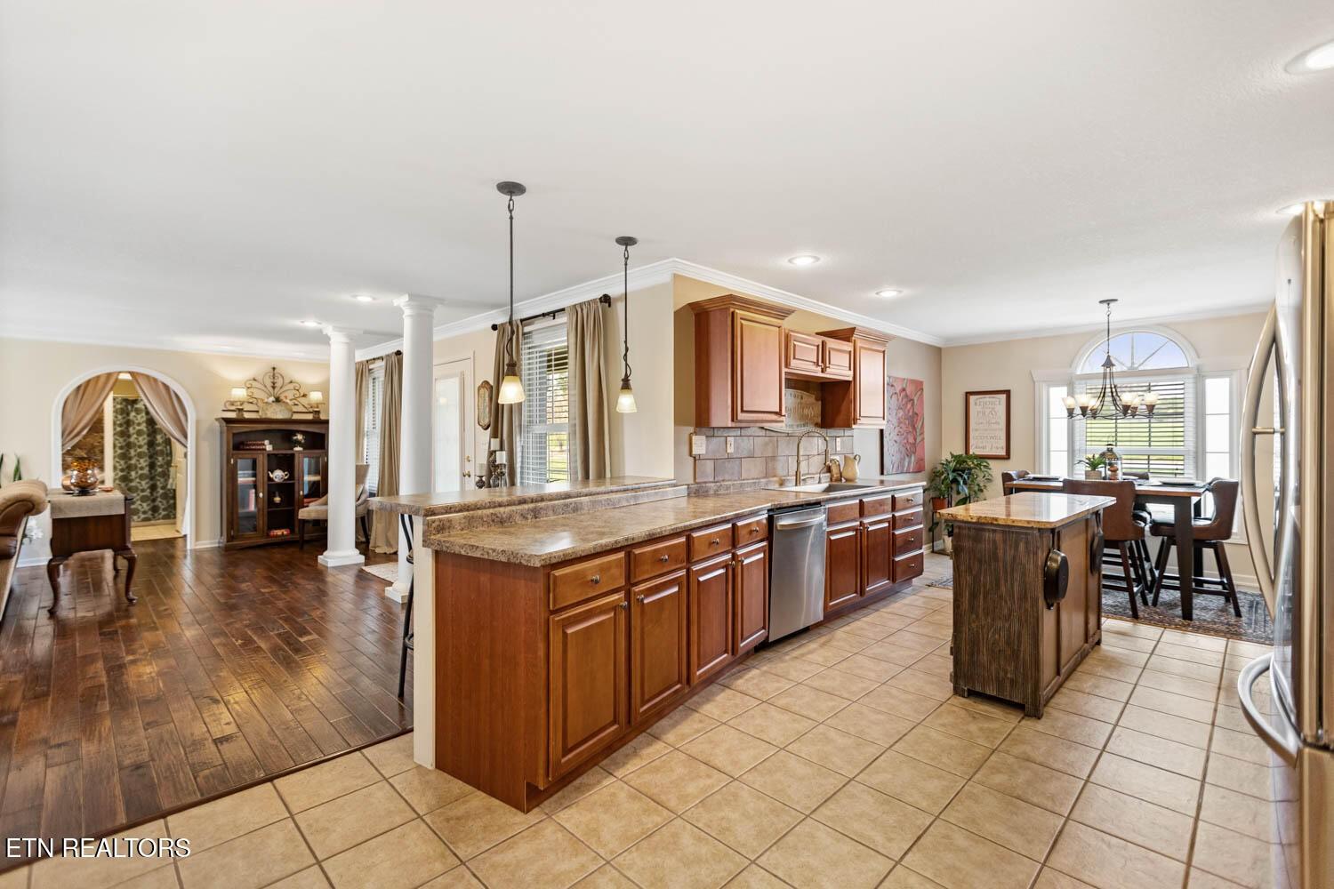 ALL BRICK, BASEMENT RANCHER IN THE HALLS COMMUNITY!!! This Home Features 4 Bedrooms, 3 Full Bathrooms, Split Bedroom Plan, Spacious Master Suite W/Spa-Like Bathroom, and Custom Tile Shower, Walk-in Closet, Large Eat-In Kitchen w/Moveable Bar including Granite Top, Pantry with sink, Genuine Hardwood Floors, Finished Basement including a 2nd Kitchen, 2nd Laundry Room, Recreation Room, 4th Bedroom, Large Workshop, 2 Car Garage, Covered Back Porch, Storage Shed, Updated Landscaping (Front Yard) and a Fenced-In Back Yard. There is also a separate, outside entrance to the downstairs level. This Home is conveniently located to I-75, Downtown Knoxville, Schools, Dining, Shopping and So Much More!!! It is a must see!