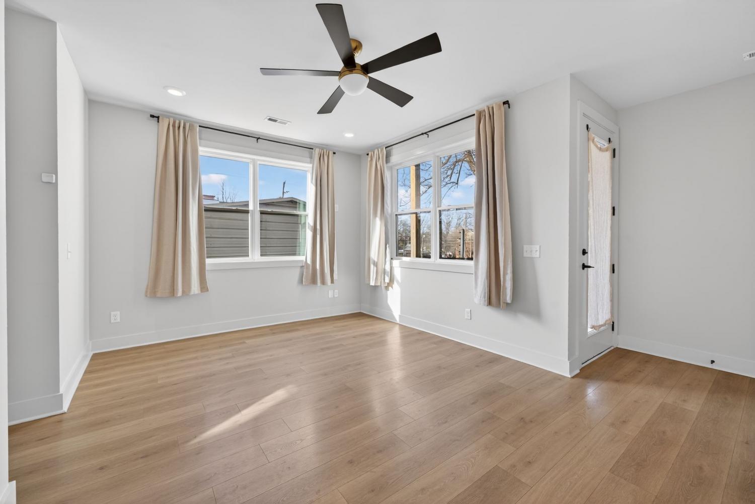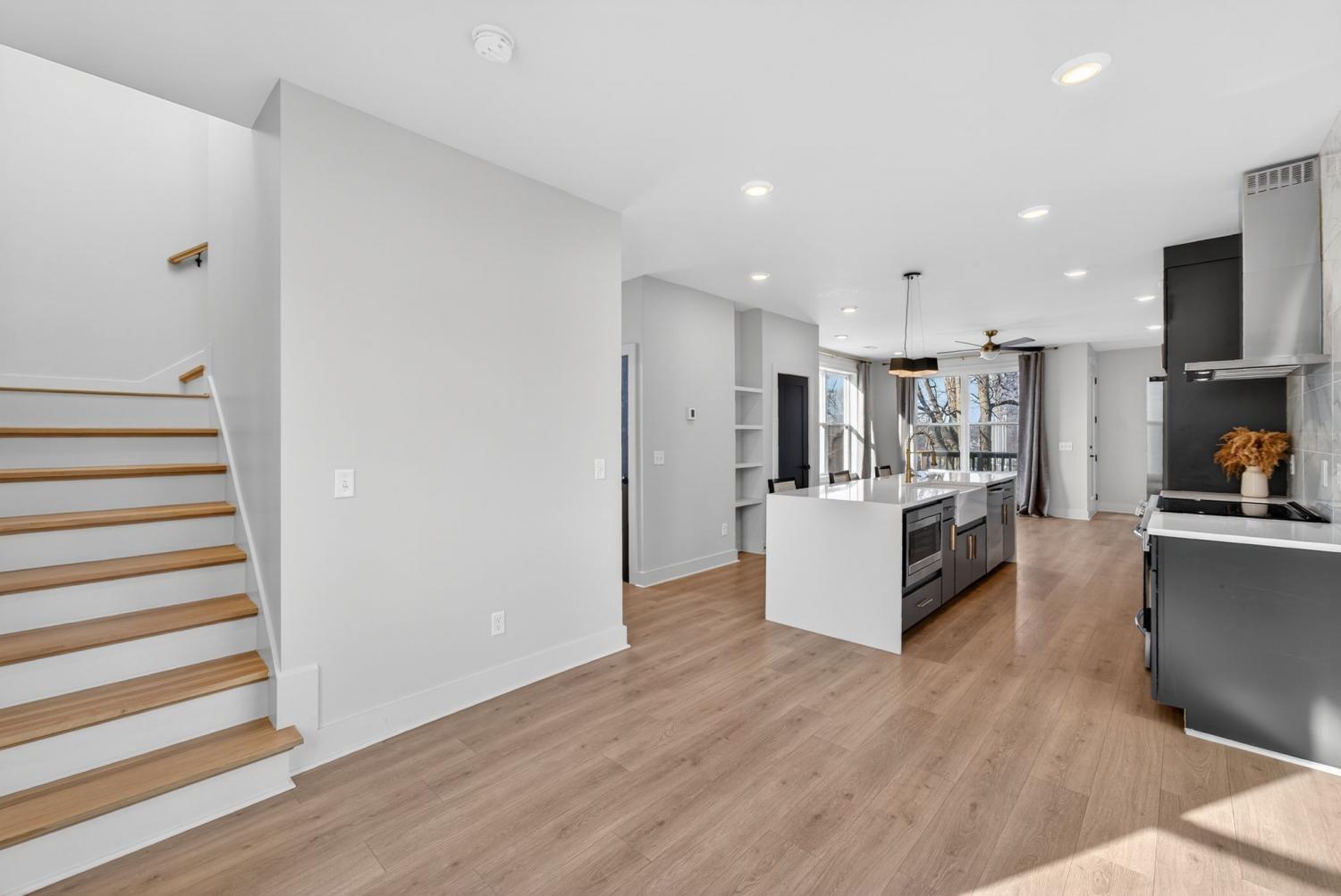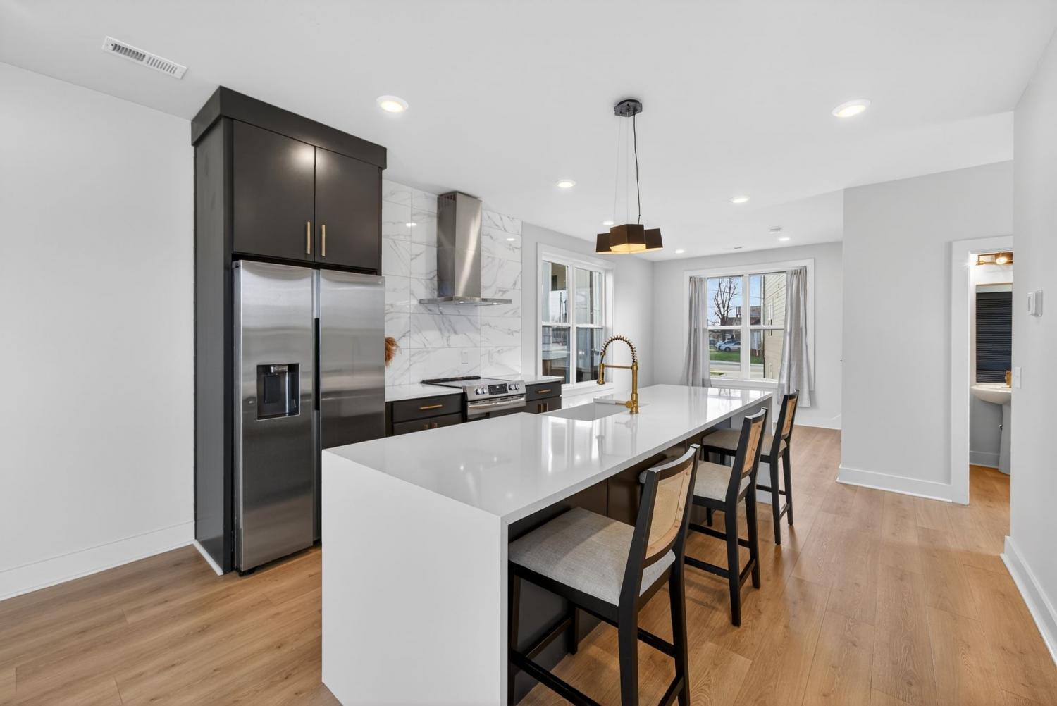 Welcome to this beautiful, like-new home tucked within a private four-home enclave—right in the heart of one of Nashville’s most vibrant and evolving areas. Just minutes from Germantown, the Buchanan Arts District, and less than 4 miles to Downtown, you’re surrounded by local flavor, creativity, and nonstop energy. Inside, the open-concept layout is built for connection and entertaining. The stunning kitchen steals the show with a massive waterfall island, upgraded fixtures, and plenty of space to cook, gather, and host. The living and dining areas flow effortlessly to a spacious deck—perfect for morning coffee, evening unwinding, or weekend get-togethers. The main-level owner’s suite is a true retreat, featuring a large walk-in closet and a spa-like bathroom with upscale finishes and a sleek separate shower. A flexible sitting area on the main floor adds even more versatility—ideal for a home office, lounge space, or creative corner. Upstairs, two spacious bedrooms with a shared bath offer comfortable, well-designed living space with room to spread out. Step outside and enjoy your own fenced-in outdoor space—perfect for relaxing, entertaining, or simply enjoying a little extra breathing room in the city. With ample parking and no HOA, convenience is built right in. Set in the heart of the Buchanan Arts District, this home places you steps from local eats, art, and culture, while keeping you just minutes from the Nashville Farmers Market and the excitement of downtown