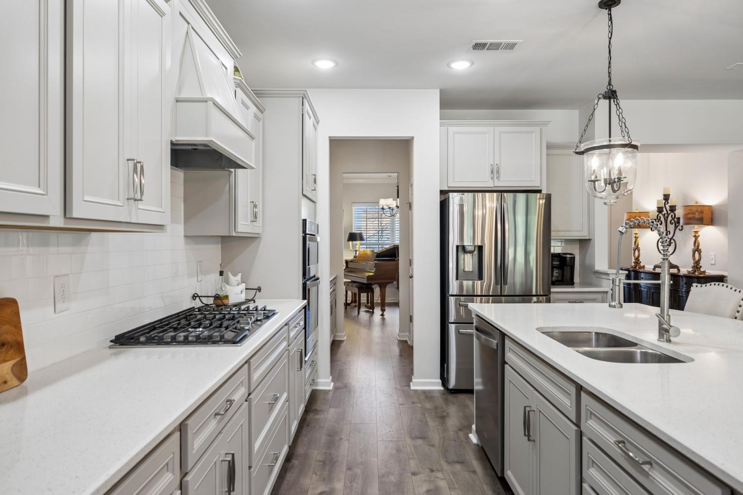 Welcome home to the perfect blend of luxury, comfort, and everyday ease—nestled in a highly desirable Williamson County neighborhood and zoned to Independence High School. From the moment you arrive, this light-filled, move-in ready, well-maintained home stands out with timeless design, thoughtful upgrades, and the lifestyle today’s buyers are searching for. The main floor primary suite offers the ease of single-level living, complete with a trey ceiling, abundant natural light, and a spa-like bath with separate shower and tub, and dual granite vanity that feels like a private retreat. Entertain with confidence in the formal dining room or enjoy the flexibility of a dedicated office (potential for 5th bedroom) and planning station designed for modern living. At the heart of the home, the chef’s kitchen impresses with quartz countertops, stainless steel appliances, a 5-burner cooktop, butler's pantry, and an oversized island opening seamlessly to a warm and inviting living room with a cozy gas fireplace. Whether hosting or enjoying a quiet evening in, this space truly delivers. Upstairs, spacious gameroom, and generously sized bedrooms each feature walk-in closets, two full baths with granite counters and dual sinks, offering the space and storage buyers expect at this price point, plus a large decked walk-in attic for even more storage. Step outside to your elevated, tree-lined backyard, perfect for relaxing or entertaining around the stone firepit. Major updates include a new roof, gutters, and downspouts (2021), and an irrigation system front and sides, add peace of mind and everyday convenience. Homes that offer main floor living, updated finishes, functional space, and a prime location at this price point are hard to find—and highly sought after. Don't miss the opportunity to make this home yours! 3 car tandem garage.