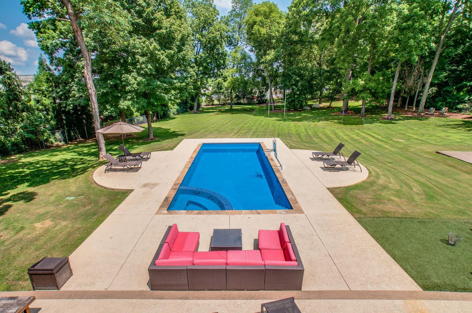 Experience the grandeur of a bygone era with this stately 1922 Colonial estate, perfectly situated on a sprawling 1.88-acre level lot in the heart of Oak Hill. The exterior is a masterclass in classic architecture, featuring a grand pillared facade and an expansive, manicured front lawn. With over 5,700 square feet of living space, the residence retains its original soul with soaring ceilings, intricate crown molding, and formal rooms that provide a magnificent canvas for a luxury restoration. The home offers generous proportions throughout, headlined by a massive primary suite that includes a separate sitting area and an incredible, oversized walk-in closet with custom built-in shelving. This is a rare opportunity to restore a historic landmark on one of Nashville’s most prestigious corridors. The truly exceptional feature of this property is the spectacular backyard oasis. Step out onto an incredible, deep covered back porch that spans the length of the home, creating the ultimate setting for outdoor living. This space is beautifully finished with white tongue-and-groove ceilings and dual cooling fans, all accessible through multiple sets of classic French doors. The porch overlooks a massive, tree-lined level yard and a pristine in ground swimming pool, complete with a broad sun shelf and a wide concrete surround perfect for lounging and poolside dining. This property also includes a detached two car garage and a finished basement, offering the space and character required for a premier legacy renovation.